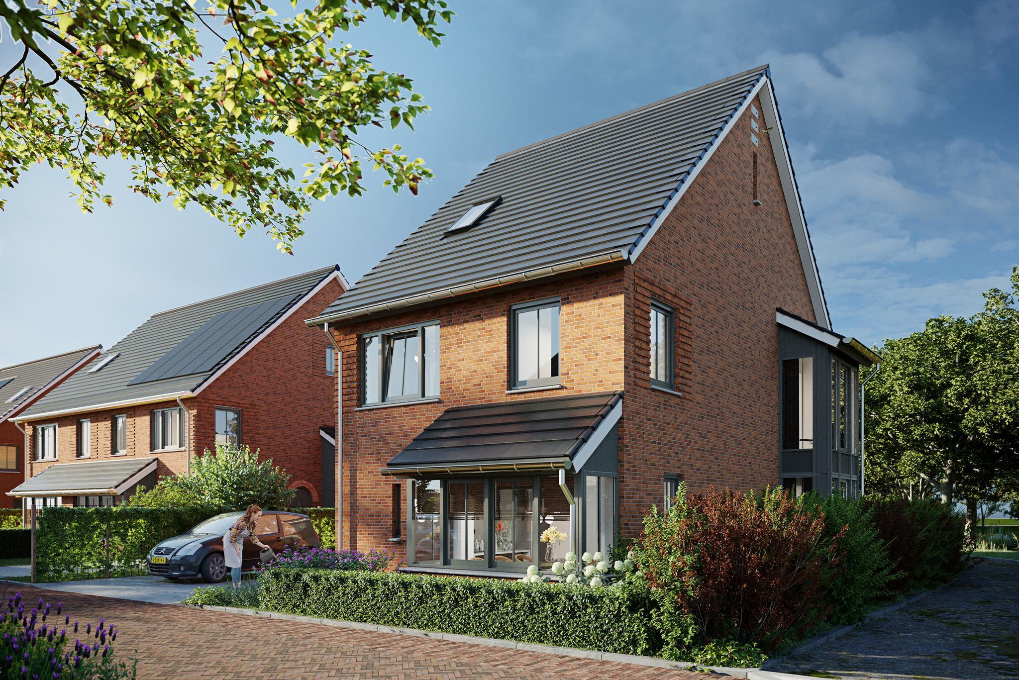 *Energiezuinige woningen (BENG) met zonnepanelen en een water-water warmtepomp voor vloerverwarming en -koeling.
