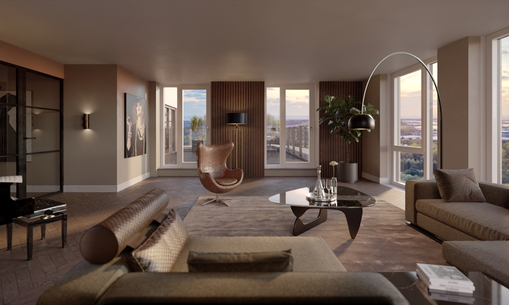 Stap binnen in de royale woonkamer met kamerhoge glaspartijen, waar licht, lucht en een panoramisch uitzicht centraal staan. De open keuken wordt voorzien van inbouwapparatuur en is volledig uitgerust voor culinaire avonturen.