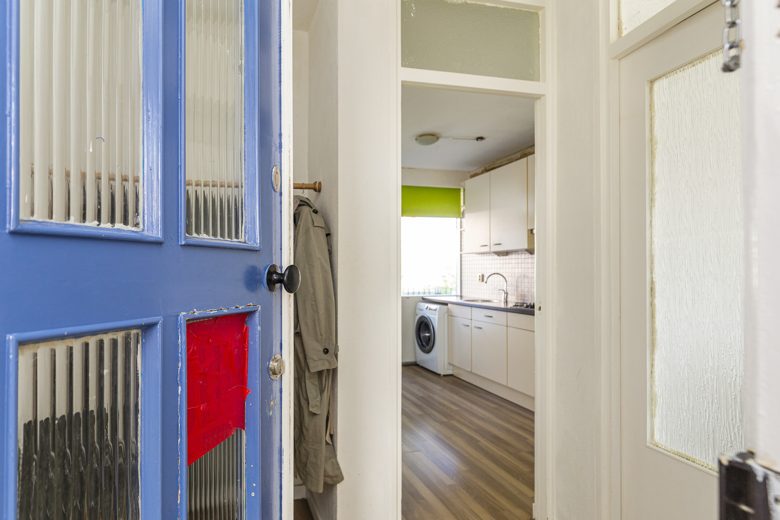 Entree appartement, hal met garderobekast, meterkast en toegang tot de woonkamer en keuken.
