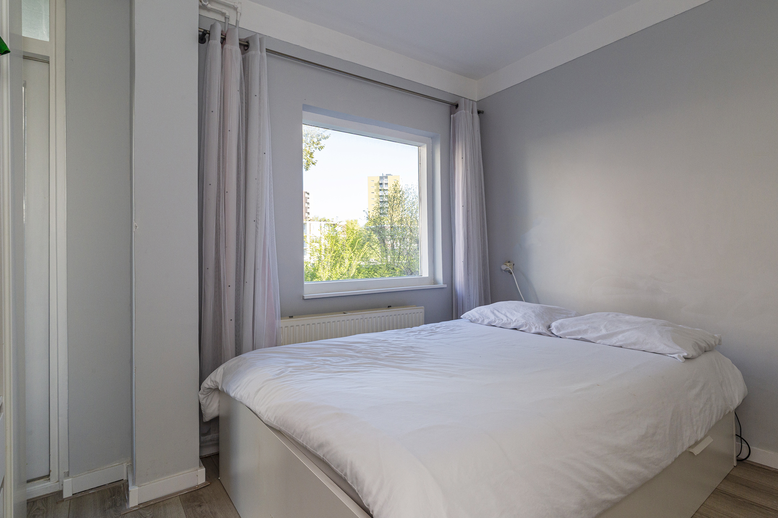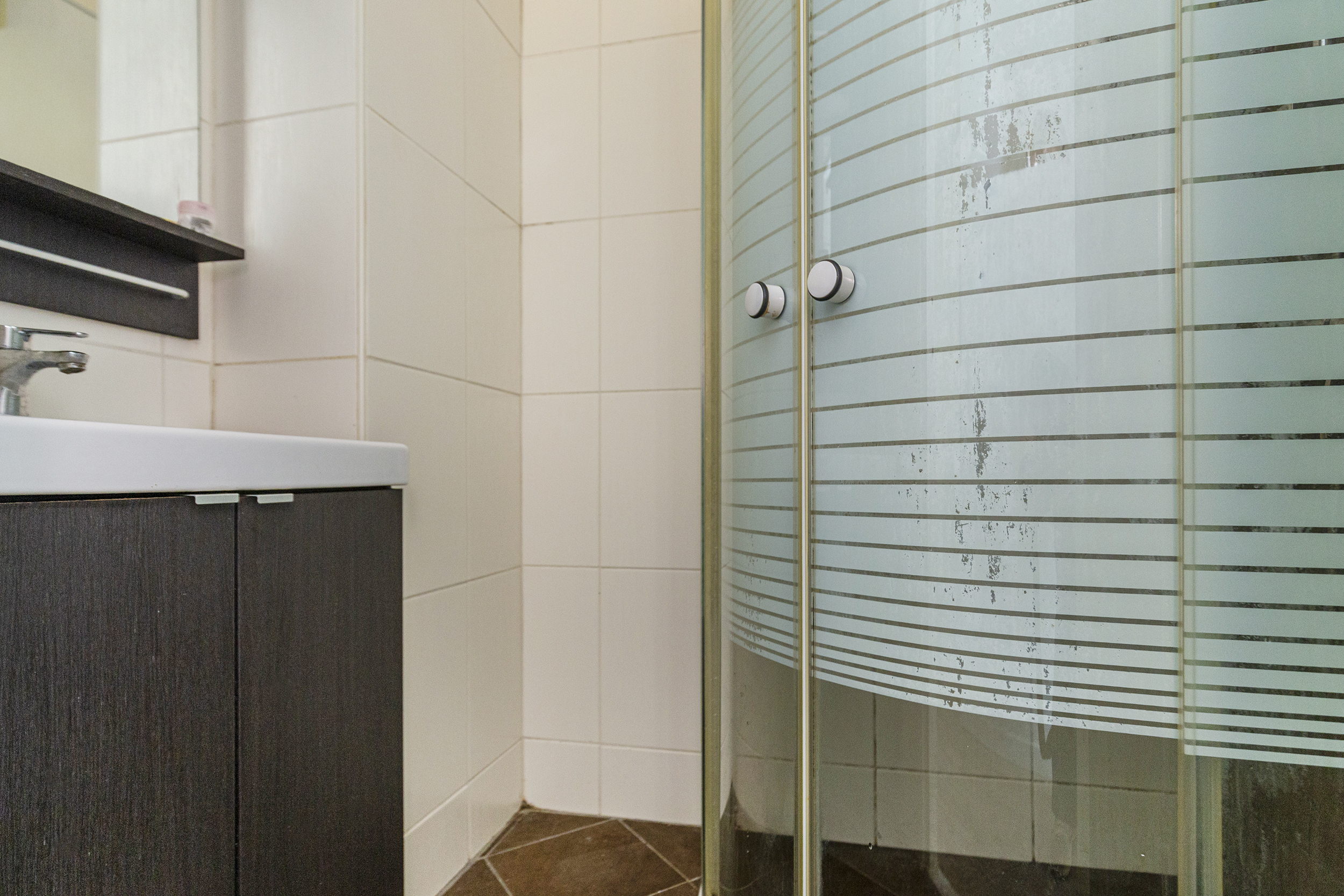 Vanuit de woonkamer bereik je de tussenhal. Vanuit hier zijn de overige vertrekken bereikbaar. Er zijn in totaal twee goed ingedeelde slaapkamers, aan zowel de voor- als achterzijde van het appartement. Beide kamers hebben toegang tot een balkon, wat zorgt voor een fijne verbinding met buiten. Eén van de balkons is bovendien voorzien van een handige balkonkast. De badkamer is volledig betegeld en ingericht met een douche en wastafel. Daarnaast is er een separaat toilet, wat praktisch is in het dagelijks gebruik.