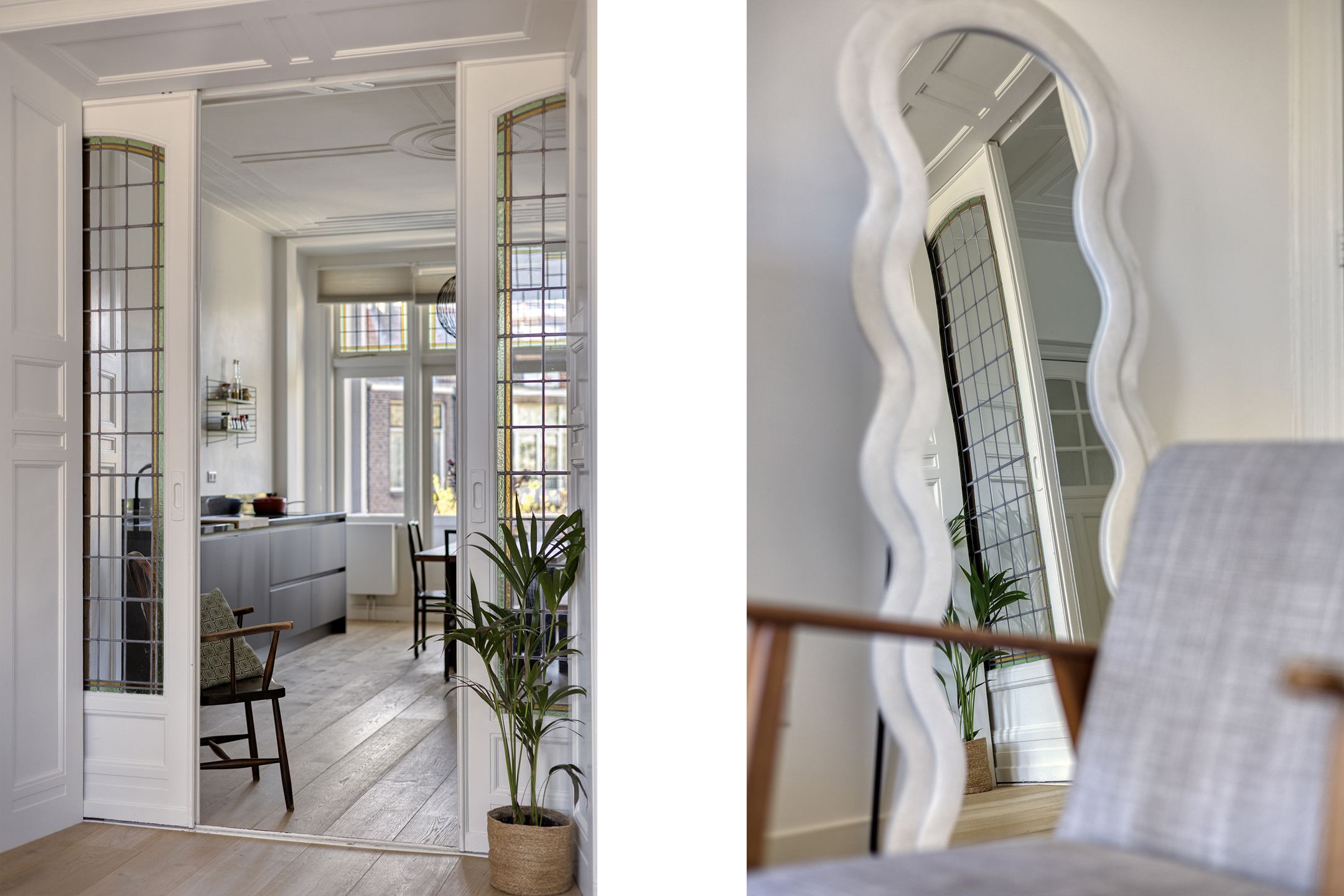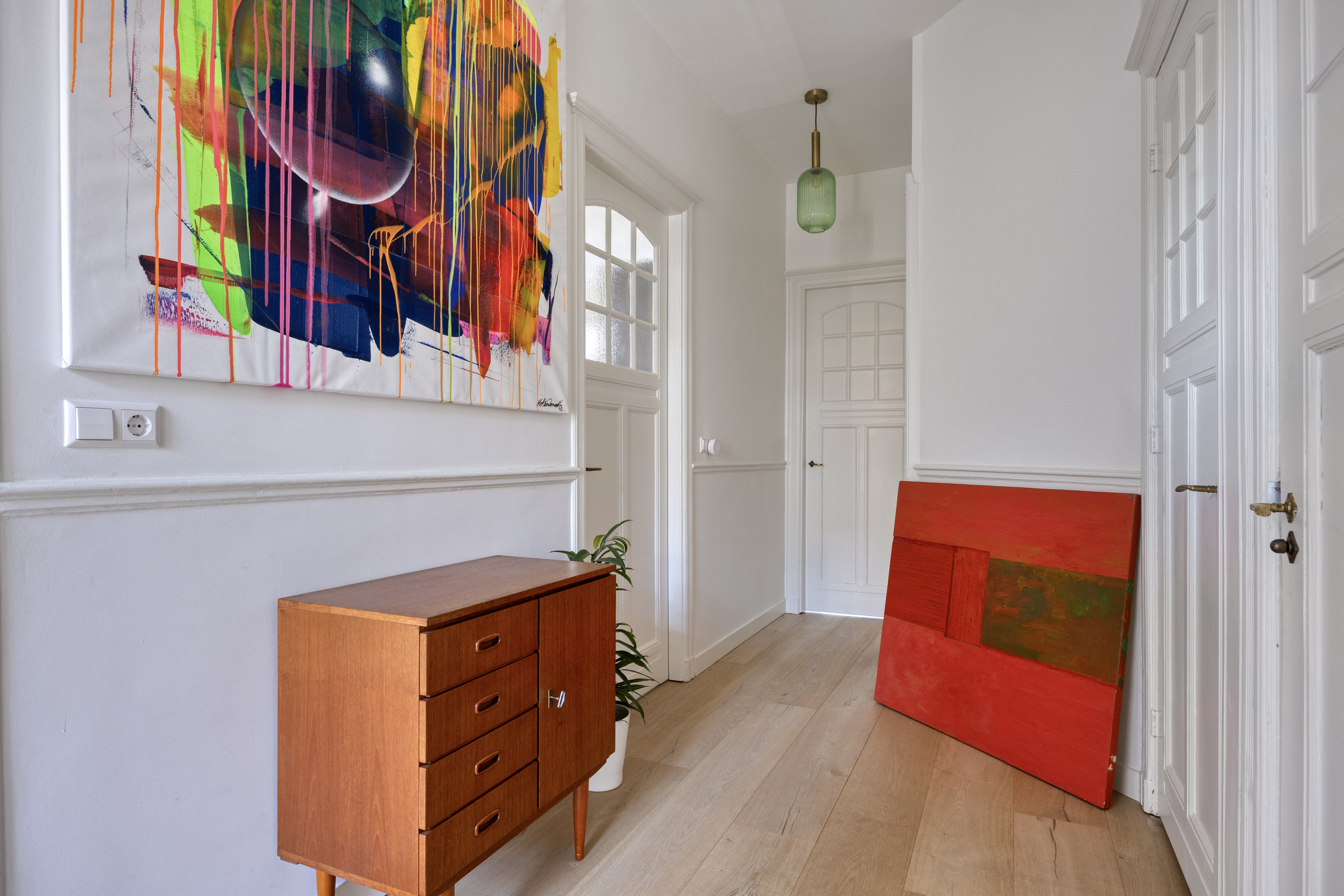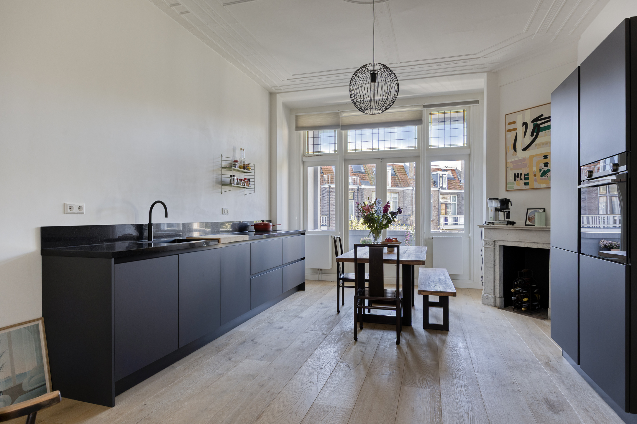 " Vanaf het moment dat ik hier binnenstapte, was ik op slag verliefd op de hoogte en de lichtinval. Ik heb het met veel liefde gerenoveerd tot dit moderne huis, met behoud van de prachtige originele details. Het is hier heerlijk rustig met het Haagse Bos in de buurt, terwijl je ook zo op het station of de snelweg zit. " - Aldus de verkoopster.