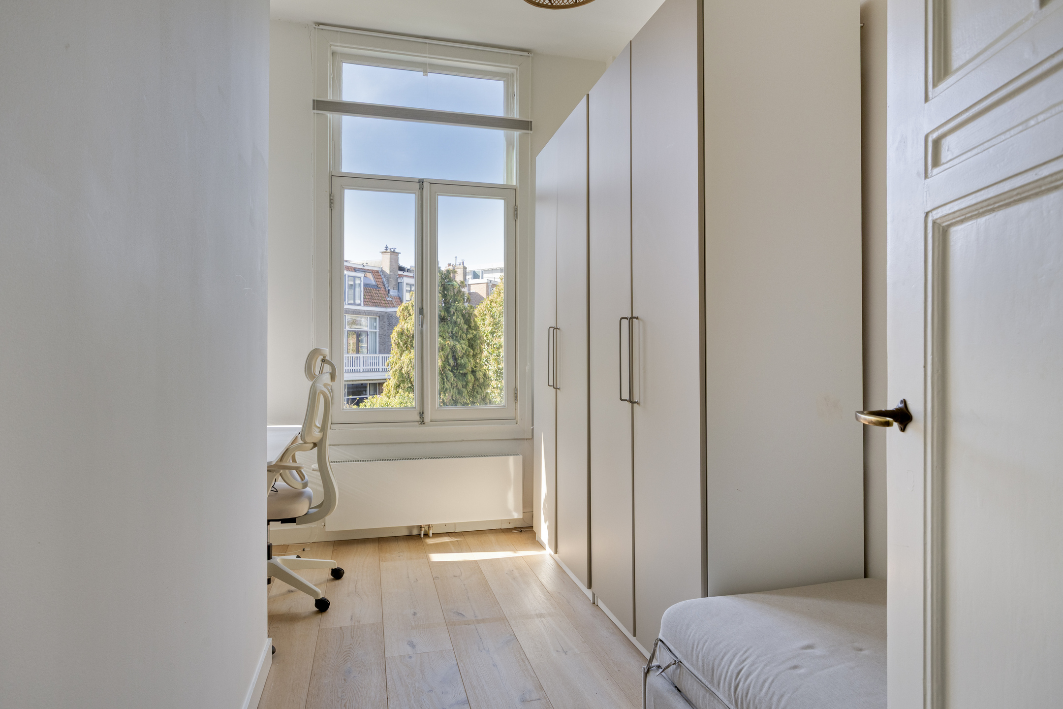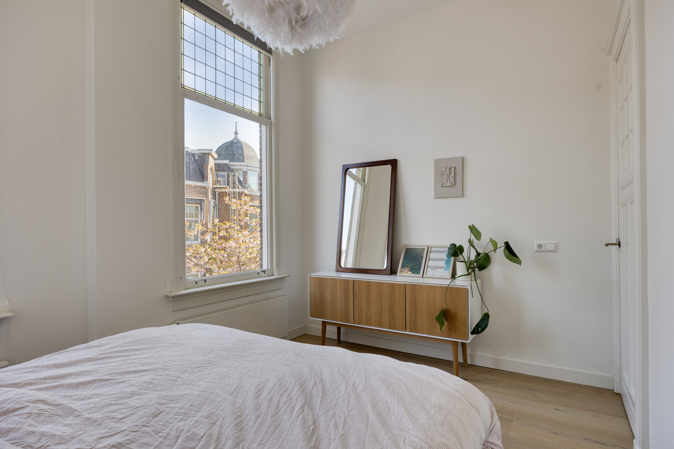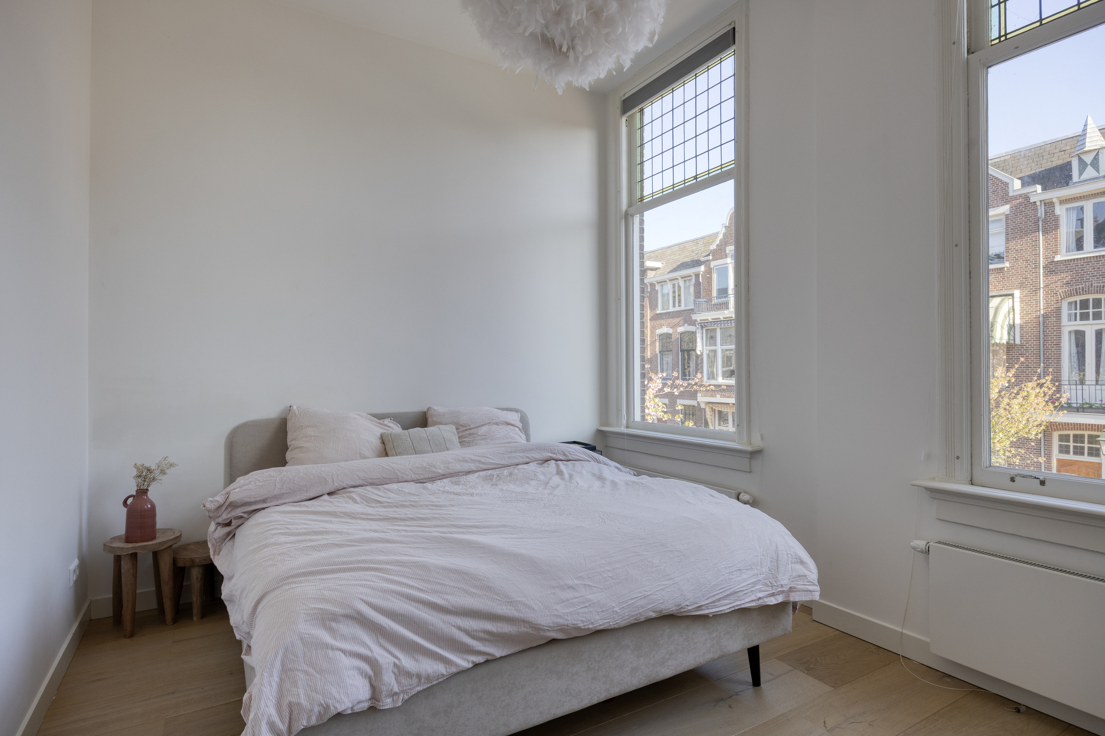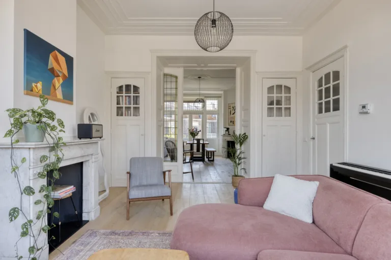 " Vanaf het moment dat ik hier binnenstapte, was ik op slag verliefd op de hoogte en de lichtinval. Ik heb het met veel liefde gerenoveerd tot dit moderne huis, met behoud van de prachtige originele details. Het is hier heerlijk rustig met het Haagse Bos in de buurt, terwijl je ook zo op het station of de snelweg zit. " - Aldus de verkoopster.