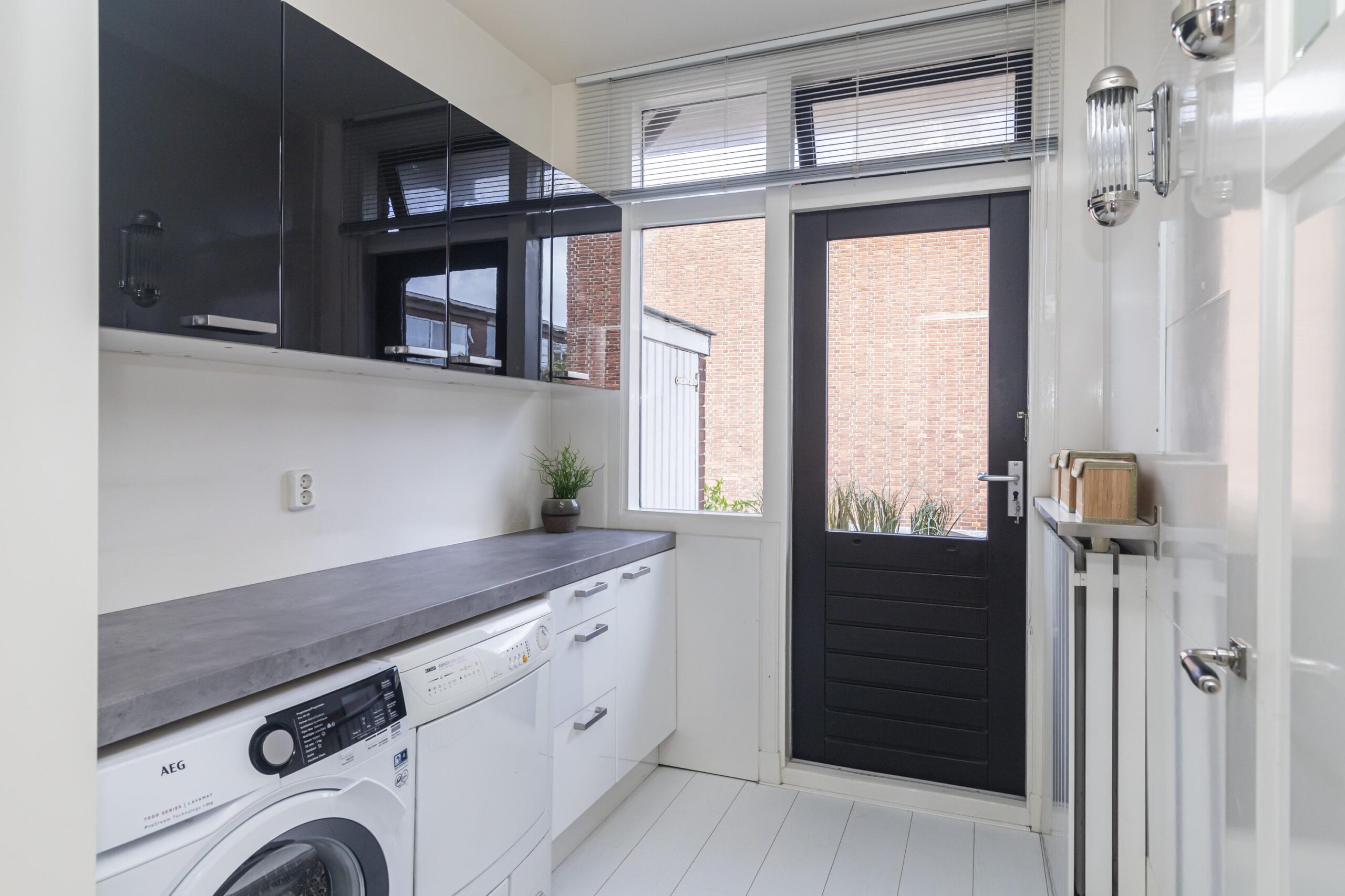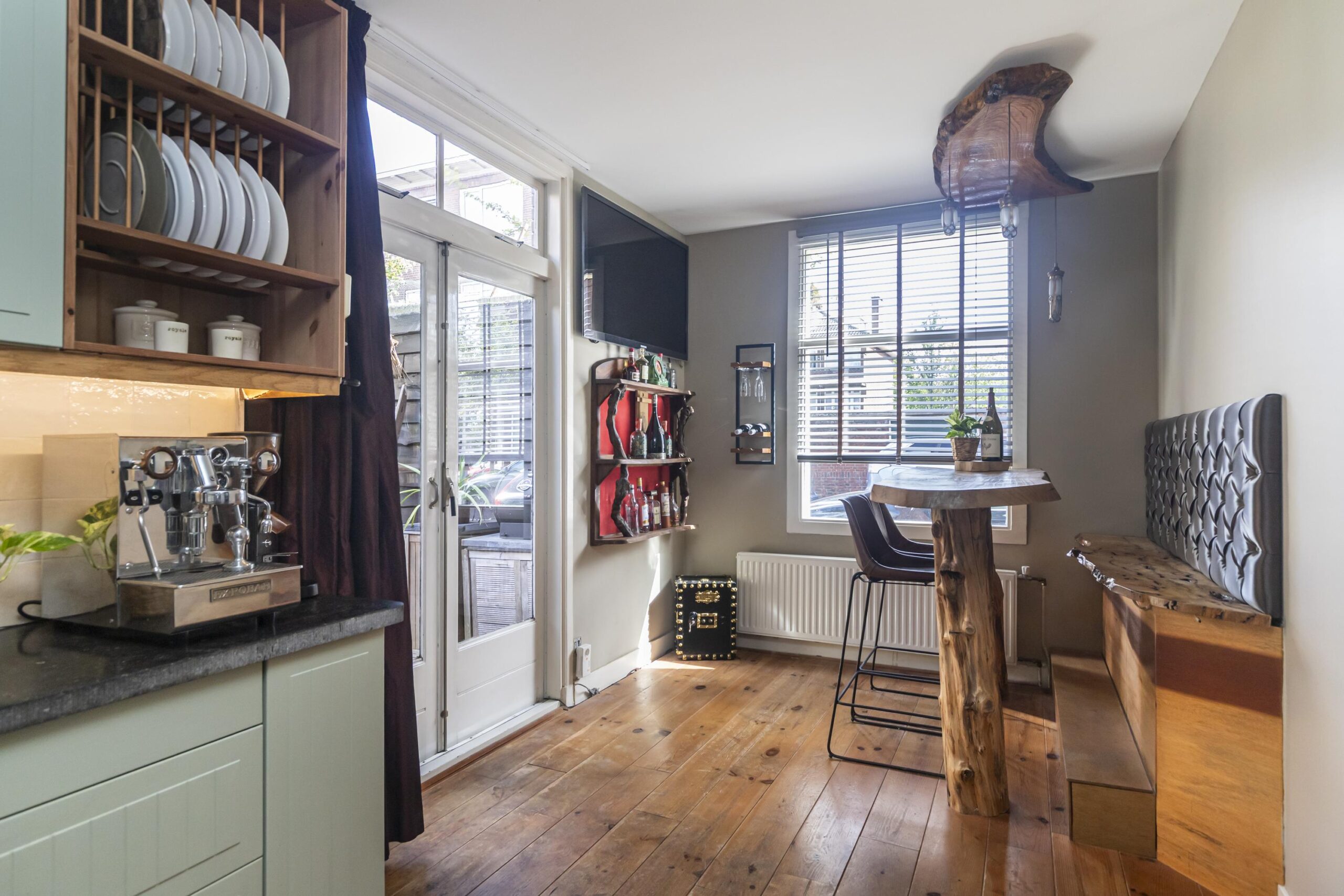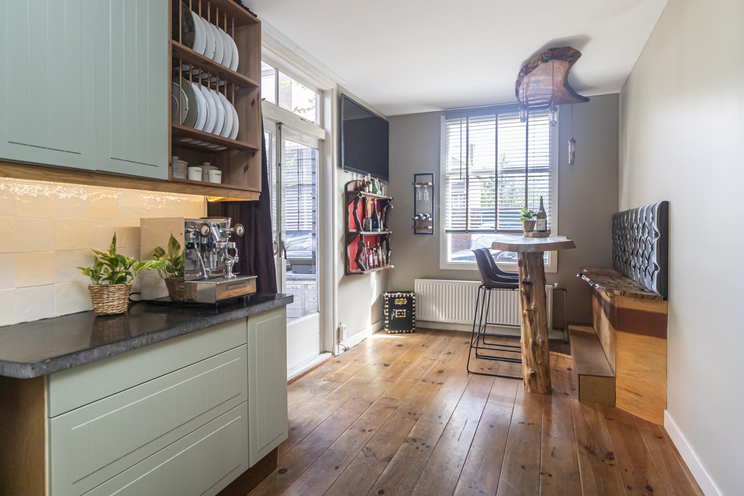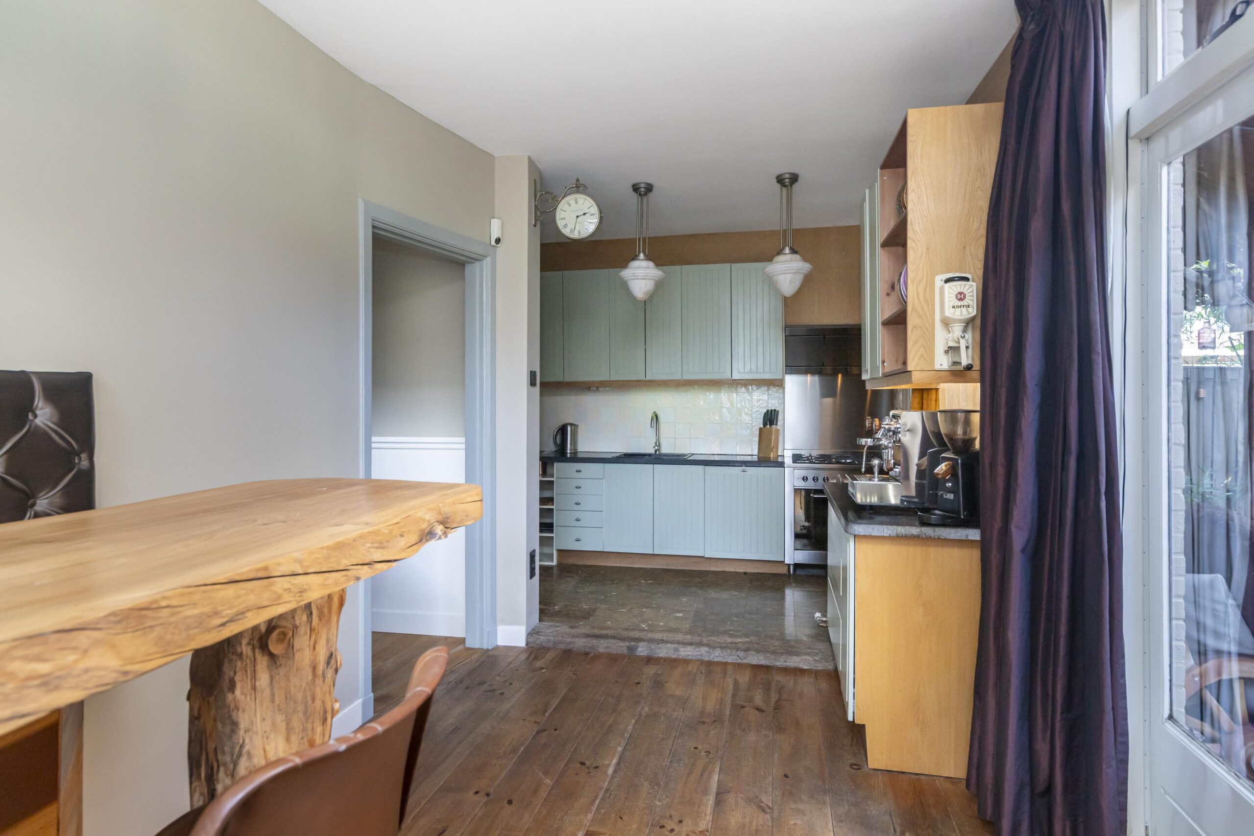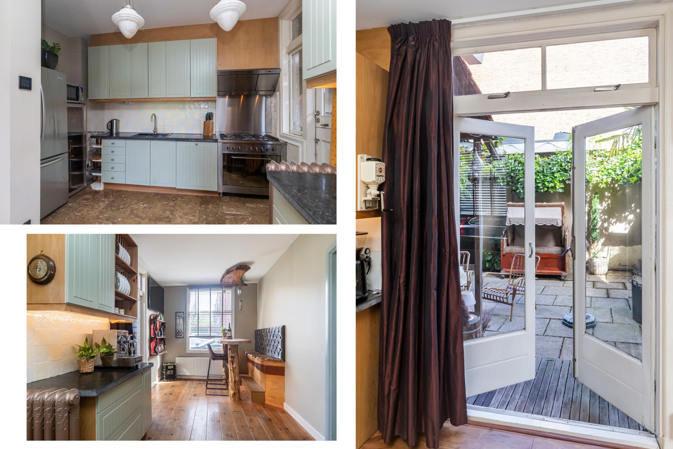Aan de achterzijde bevindt zich de ruime woonkeuken: een heerlijke plek om samen te koken en tafelen. De keuken is voorzien van diverse inbouwapparatuur en biedt direct toegang tot de achtertuin op het noordoosten. Deze tuin beschikt over een achterom en is daarmee praktisch en onderhoudsvriendelijk ingericht.