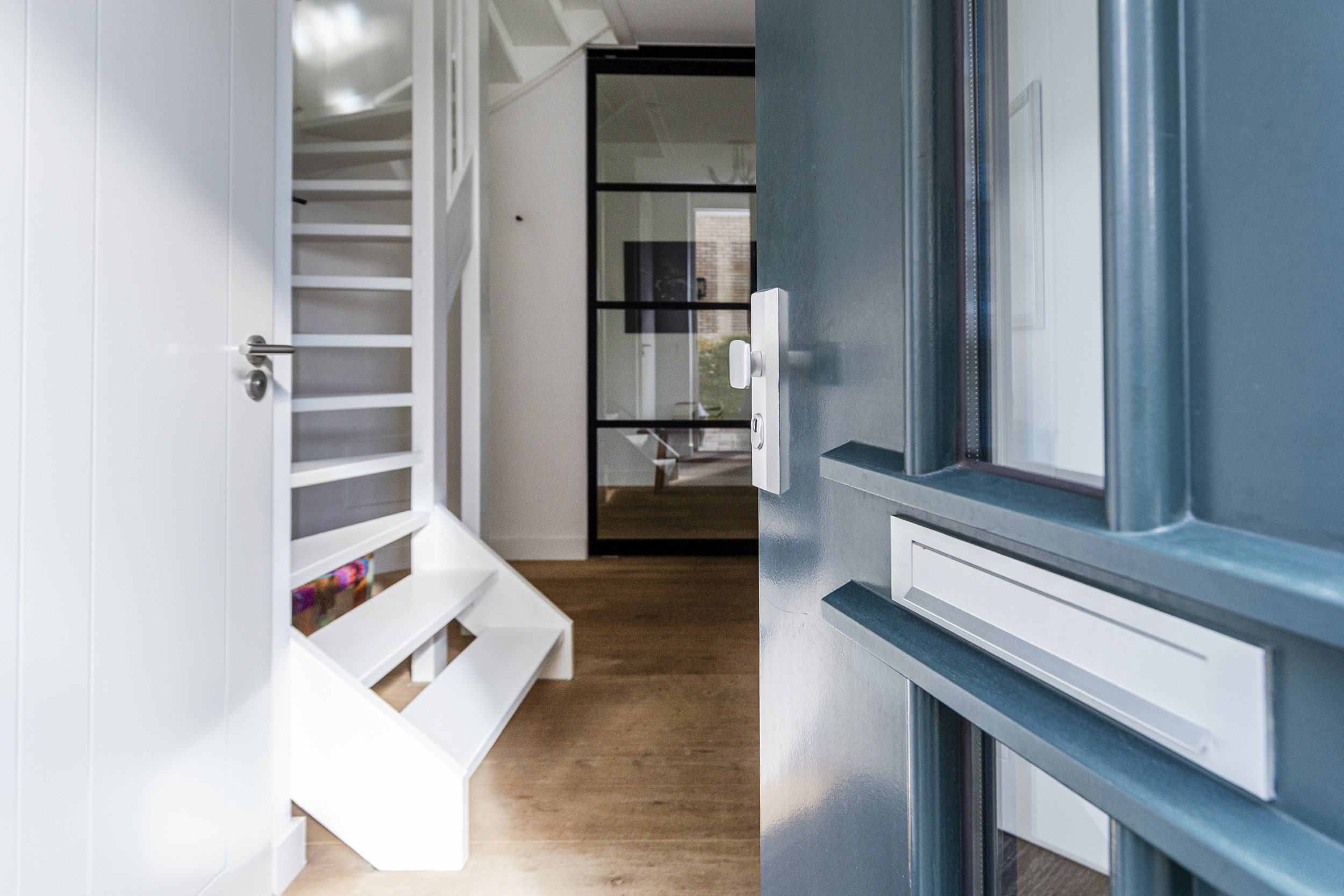 Voortuin met plek voor parkeren en een zijtuin met doorgang naar de achtertuin. De entree zit aan de zijkant. In de hal vindt u het toilet met fontein en de meterkast, en via een mooie taatsdeur bereikt u de woonkamer aan de achterzijde. Vanuit deze woonkamer heeft u directe toegang tot de achtertuin aan het water, inclusief een vrijstaande houten berging met elektra. De woonkeuken bevindt zich aan de voorzijde en is voorzien van een quooker, natuurstenen aanrechtblad, 4-pits gasfornuis, afzuigkap, combi stoom-/oven, koelkast, vriezer en vaatwasser. Over de hele begane grond loopt een houten parketvloer gecombineerd met vloerverwarming, voor comfort en een rustige uitstraling.