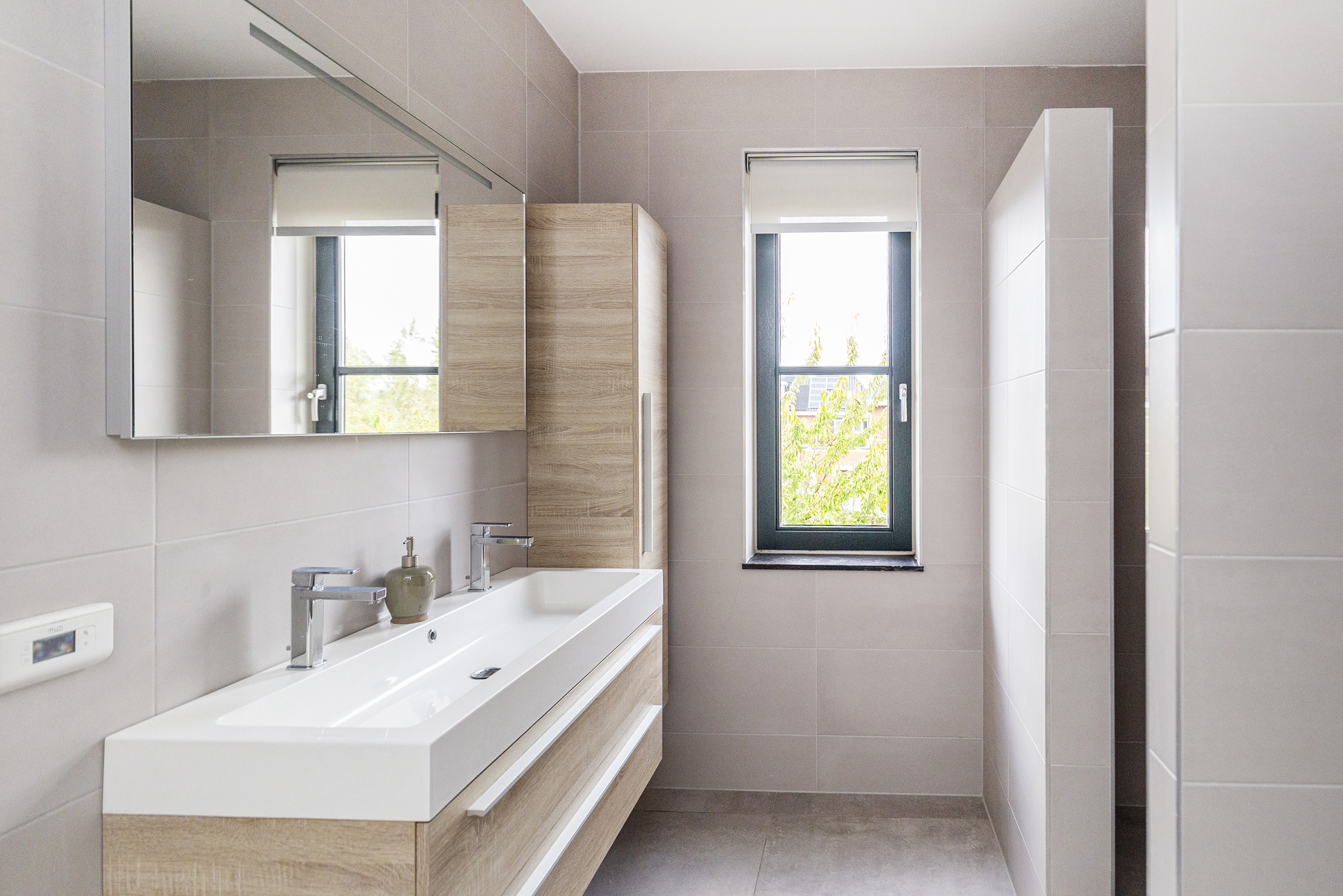- Badkamervoorzieningen Toilet, dubbele wastafel, wastafelmeubel, inloopdouche