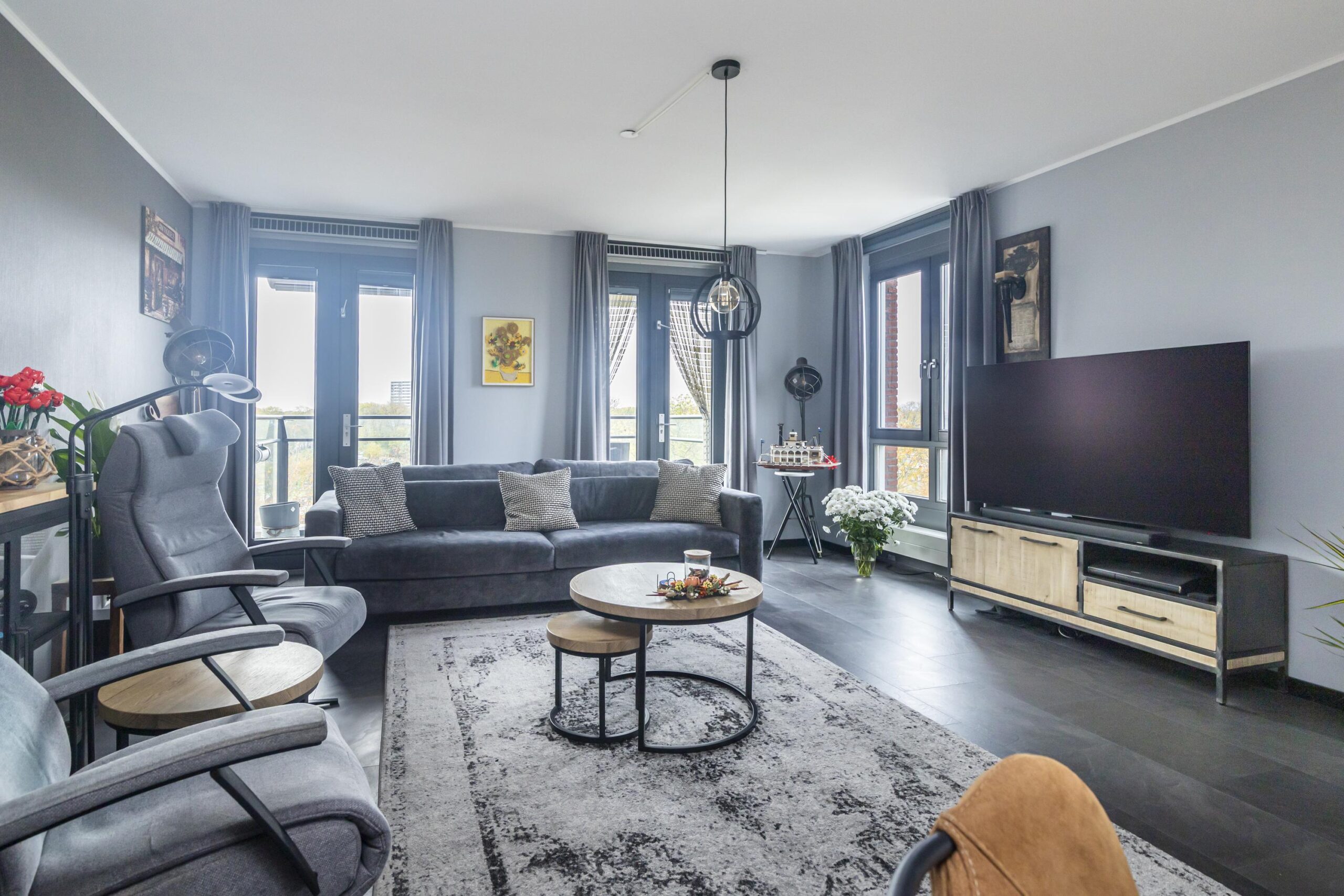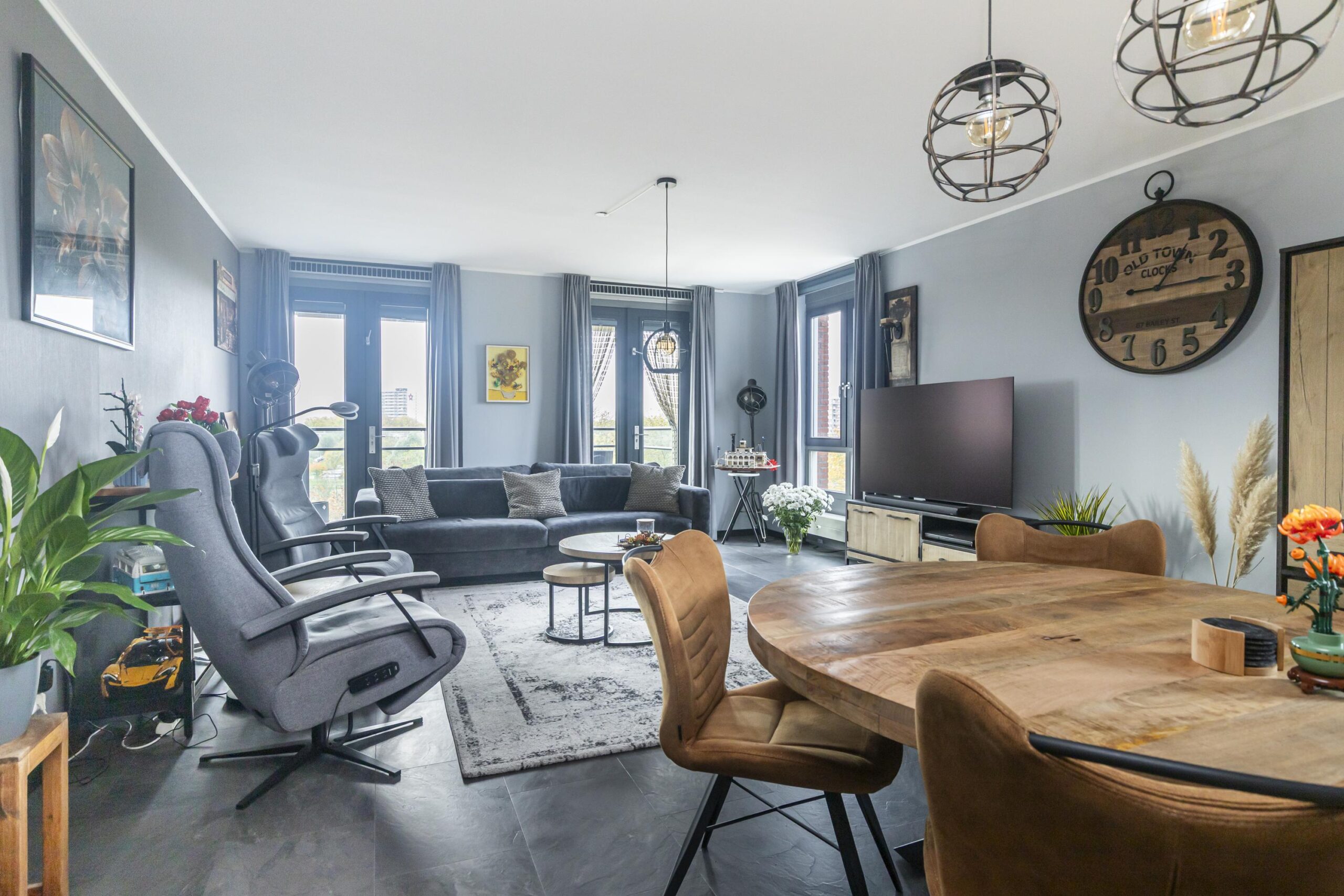 Bij binnenkomst in het appartement treft u een brede hal met toegang tot de berging, waar zich de aansluitingen voor de wasmachine bevinden, evenals de CV-combiketel (ATAG, 2013) en de mechanische ventilatie (vernieuwd in 2021). Dankzij de hoekligging beschikt de woonkamer over veel lichtinval en twee openslaande deuren naar het zonnige balkon op het zuidwesten.