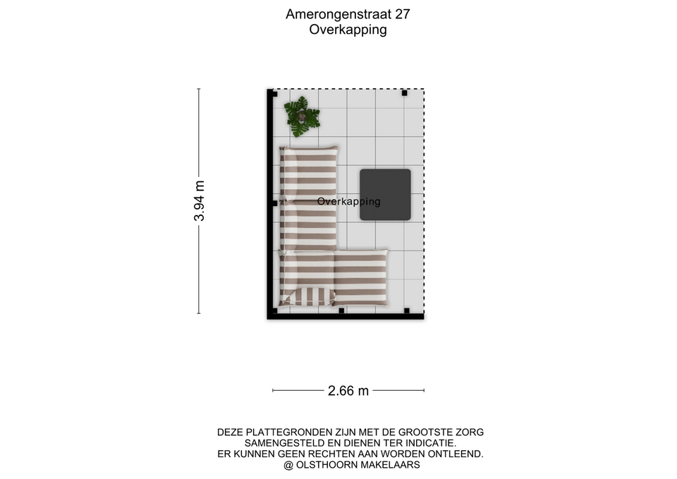 Deze informatie is geheel vrijblijvend, uitsluitend voor geadresseerde bestemd en niet bedoeld als aanbod. Ten aanzien van de juistheid van de vermelde informatie kan door de verkopend makelaar en haar opdrachtgever geen aansprakelijkheid worden aanvaard, noch kan aan de vermelde informatie enig recht worden ontleend.