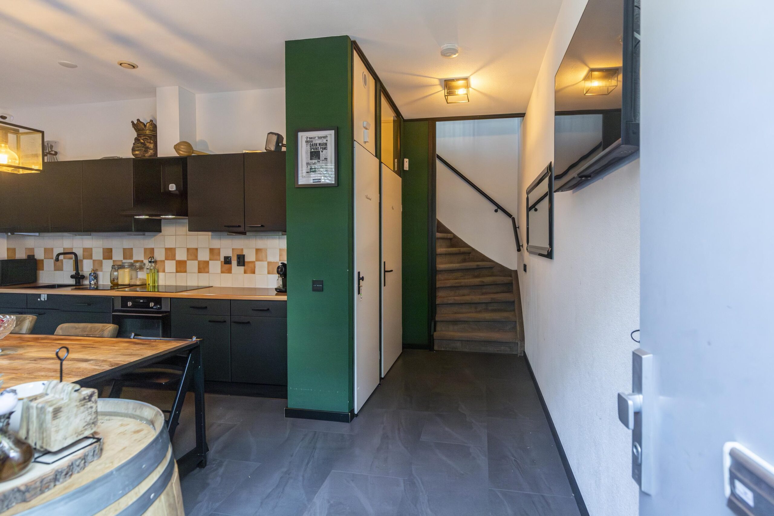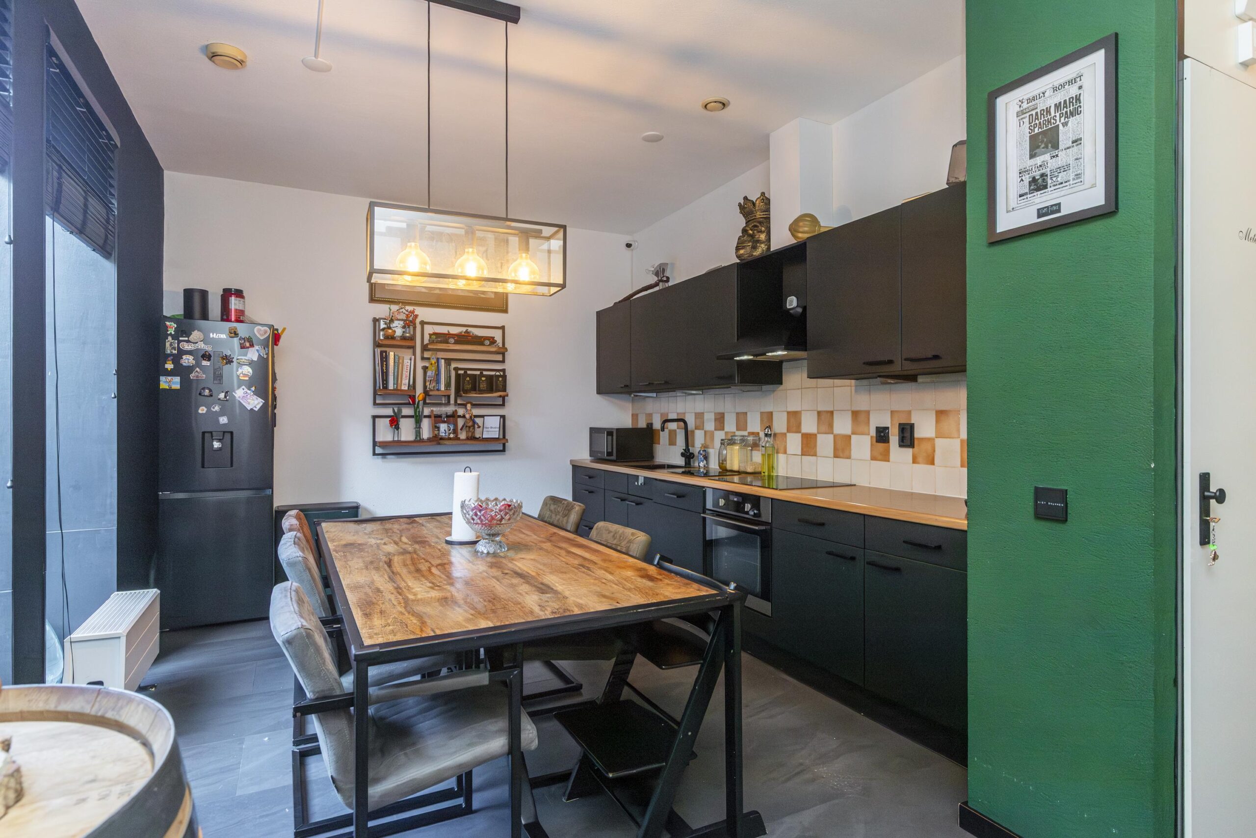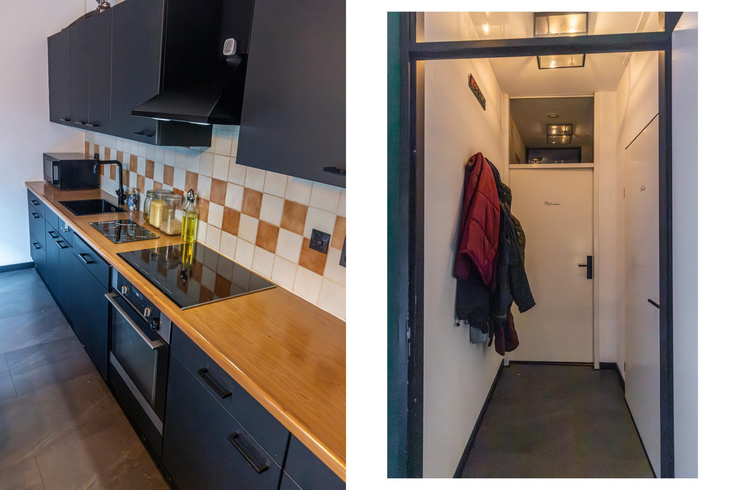 Entree met toegang tot de woonkeuken die is voorzien van verschillende inbouwapparatuur, te weten: vaatwasser, inductiekookplaat (2019), RVS schouw en oven. De vloer is afgewerkt met PVC (2021). Via de woonkeuken heeft u toegang tot een modern toilet met fonteintje (2020) en een berging.