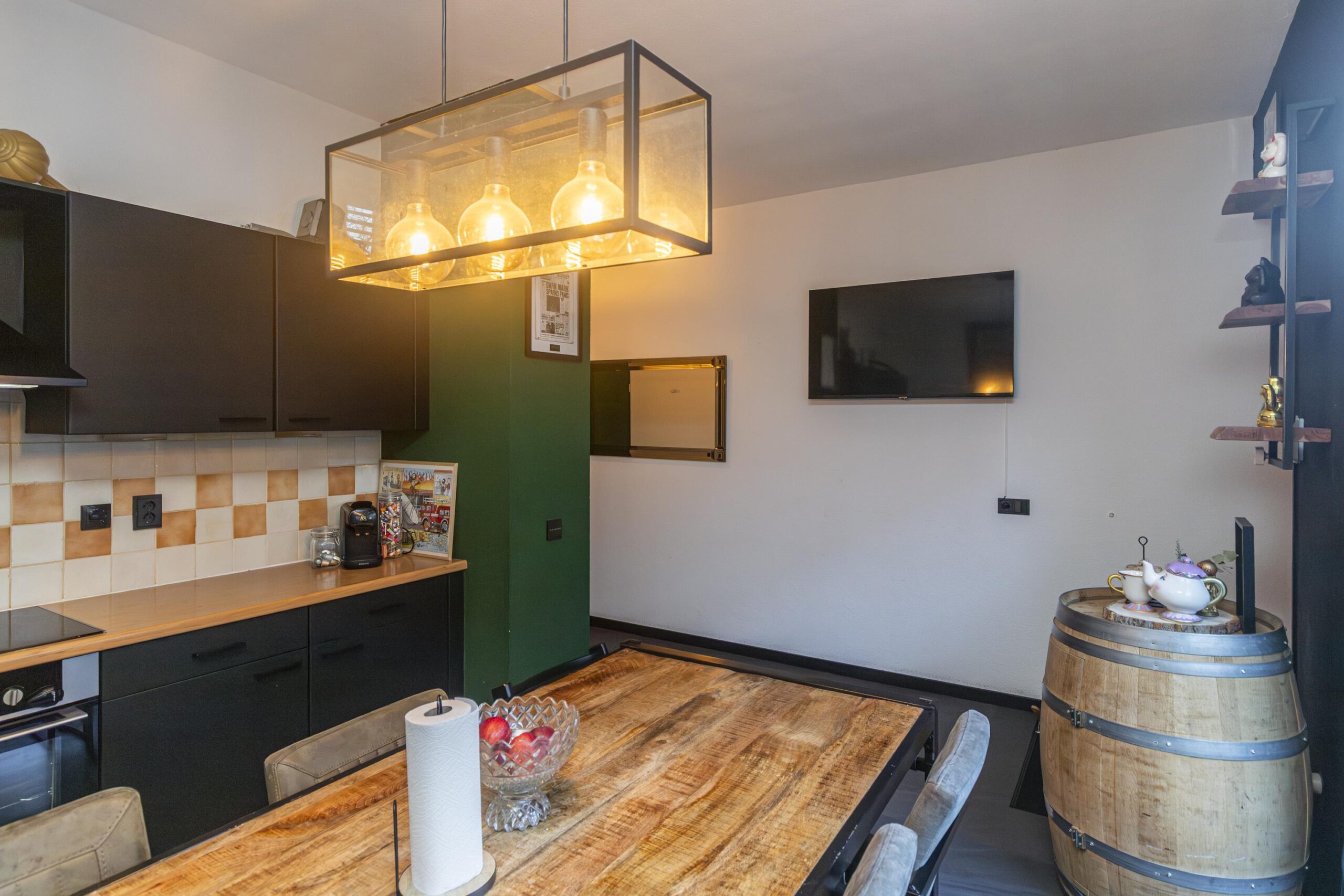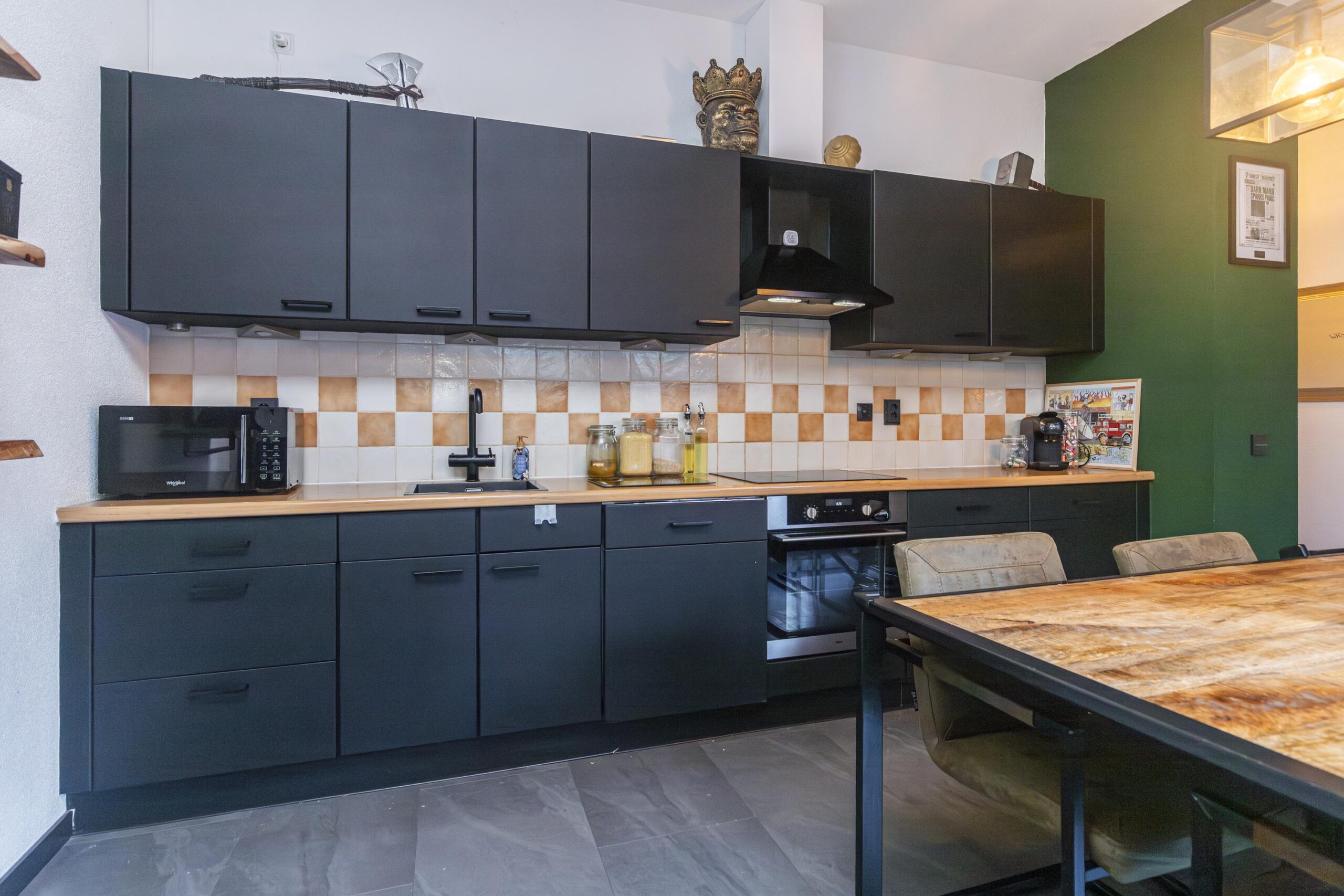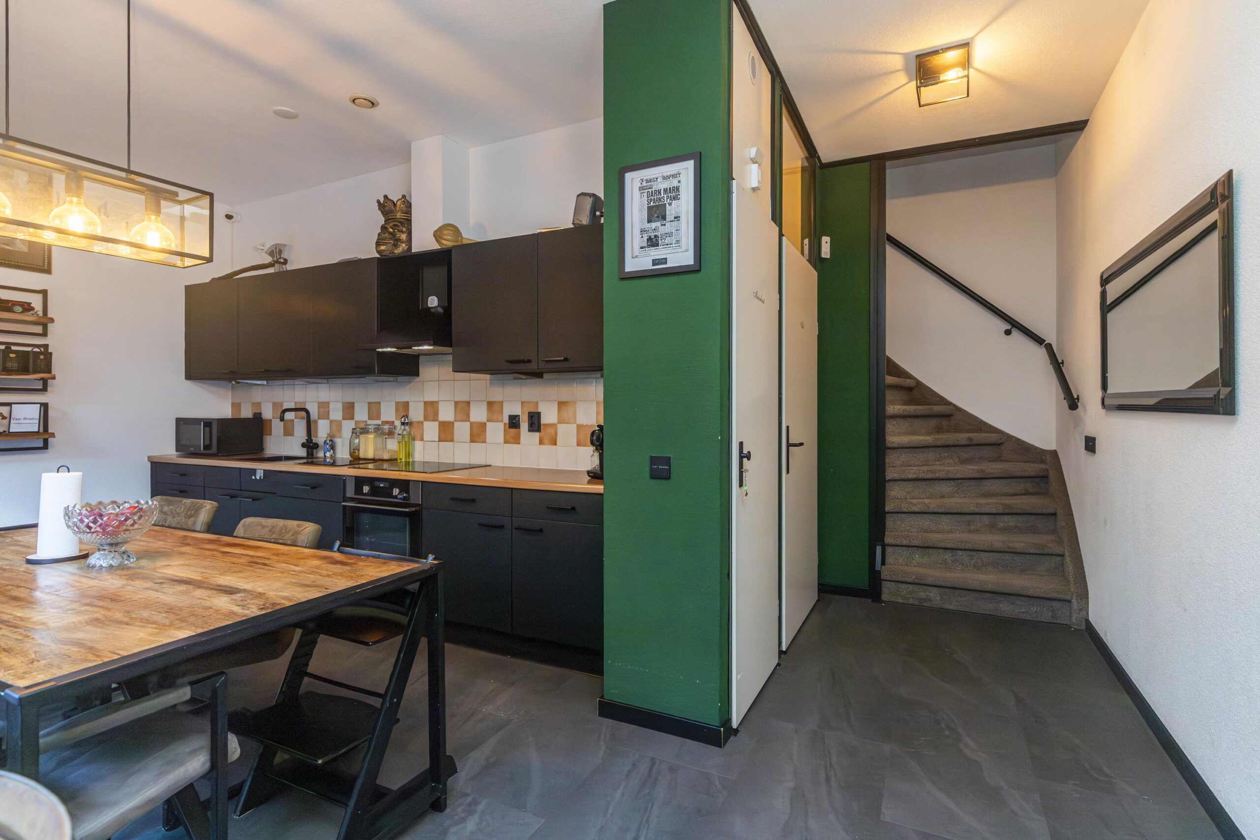 Entree met toegang tot de woonkeuken die is voorzien van verschillende inbouwapparatuur, te weten: vaatwasser, inductiekookplaat (2019), RVS schouw en oven. De vloer is afgewerkt met PVC (2021). Via de woonkeuken heeft u toegang tot een modern toilet met fonteintje (2020) en een berging.