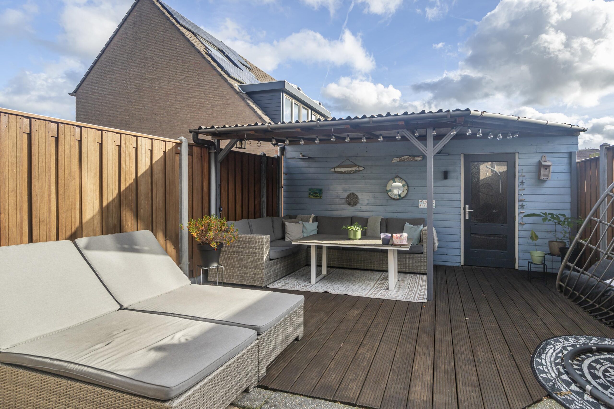 De woning beschikt zowel over een voortuin als een achtertuin. De achtertuin is goed onderhouden en biedt veel privacy. Tevens is er een overdekte zithoek en een vrijstaande berging, ideaal voor extra opslag.