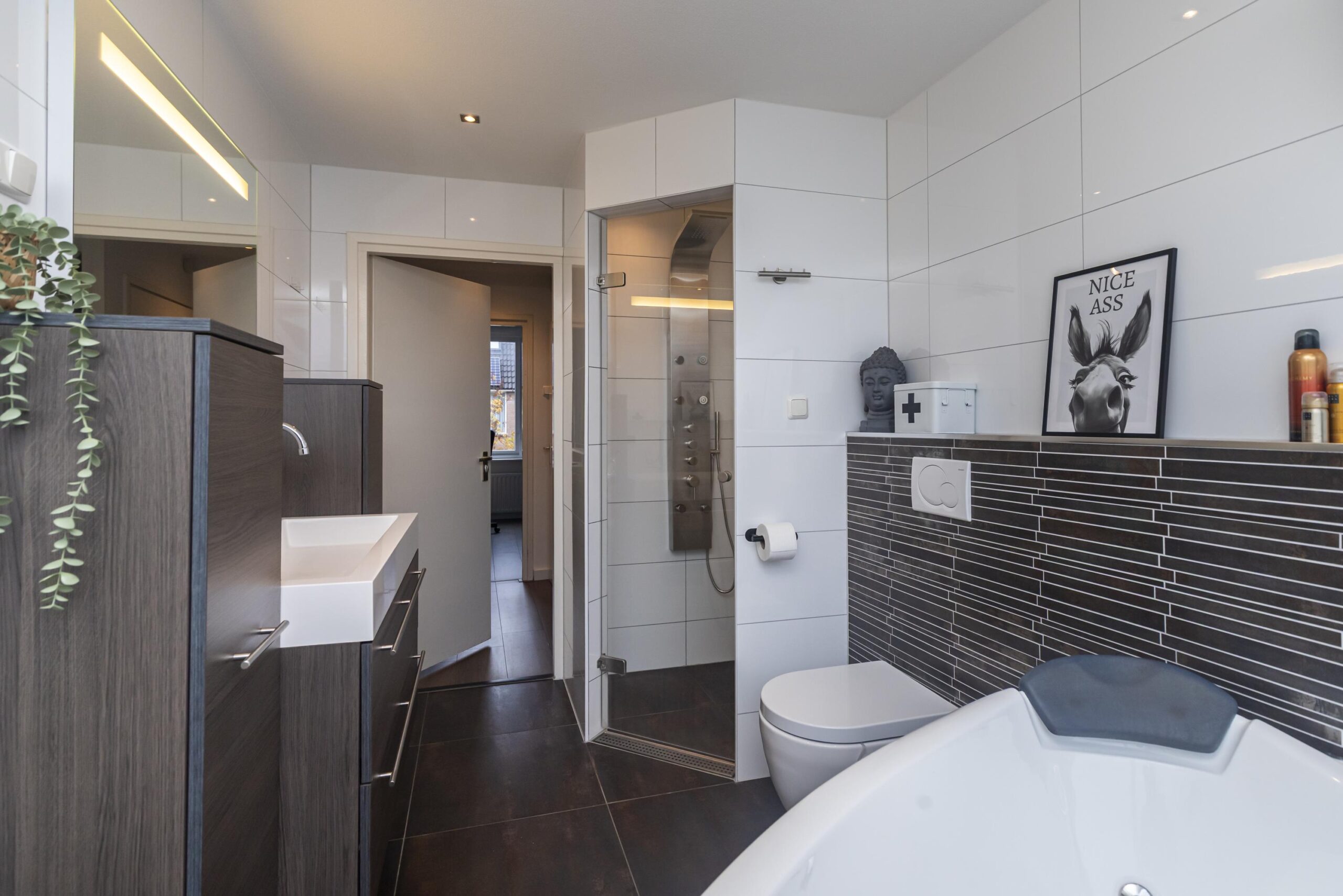 De praktische indeling biedt volop mogelijkheden voor gezinsleden van verschillende leeftijden. De badkamer heeft een luxe uitstraling. Met ruime inloopdouche, whirlpoolbad, dubbel wastafelmeubel en toilet.