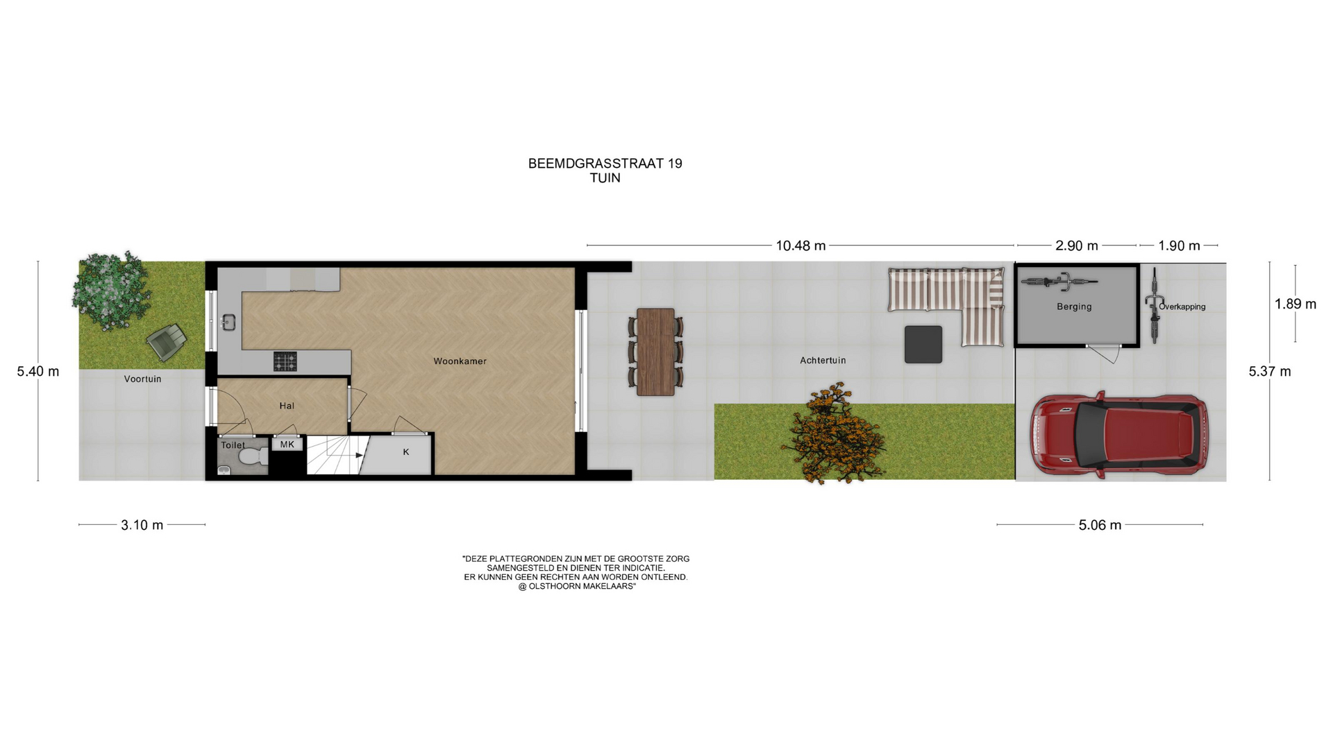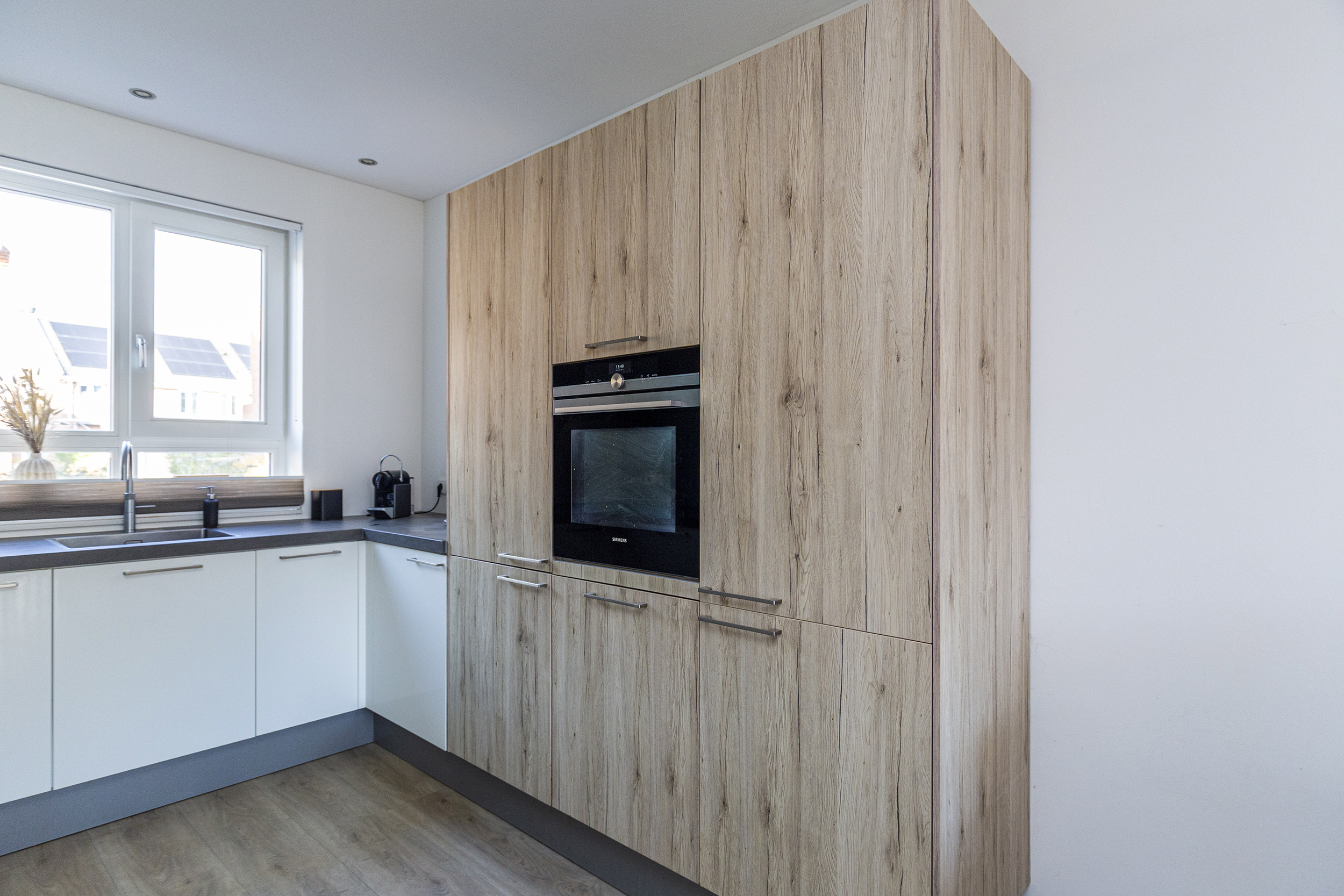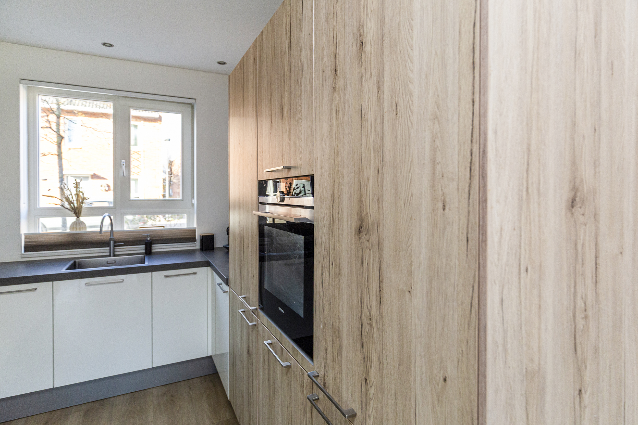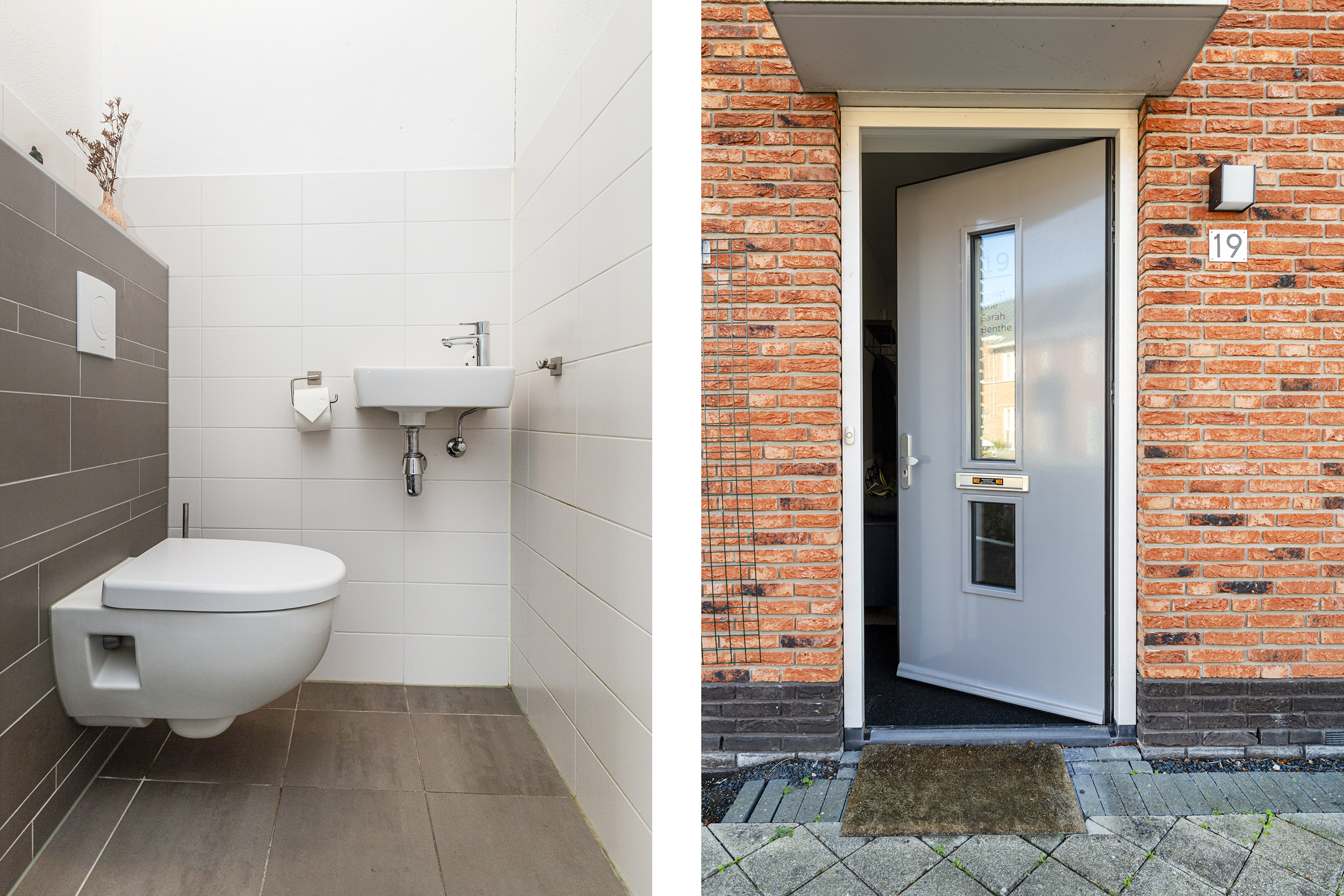In de hal vinden wij de meterkast, modern toilet met fonteintje, trap naar de 1e verdieping en toegang tot de ruime en lichte woonkamer. De lichte woonkamer is voorzien van een prachtige pvc-vloer met vloerverwarming en koeling. Via de schuifpui komen we in de fraai aangelegde achtertuin gelegen op het zuidoosten met genoeg ruimte voor een eettafel en heerlijke loungehoek. Daarachter is er een houten berging met elektra en achterom en parkeerplaats. Daar bevindt zich ook de aansluiting voor een elektrische laadpaal. Aan de voorzijde van de woning bevindt zich de zeer luxe open keuken. De smaakvolle keuken is voorzien van alle luxe te weten; kookwaterkraan (Quooker), inductie kookplaat met recirculatiekap, vaatwasser, combi-oven met hete lucht functie en koel-vriescombinatie