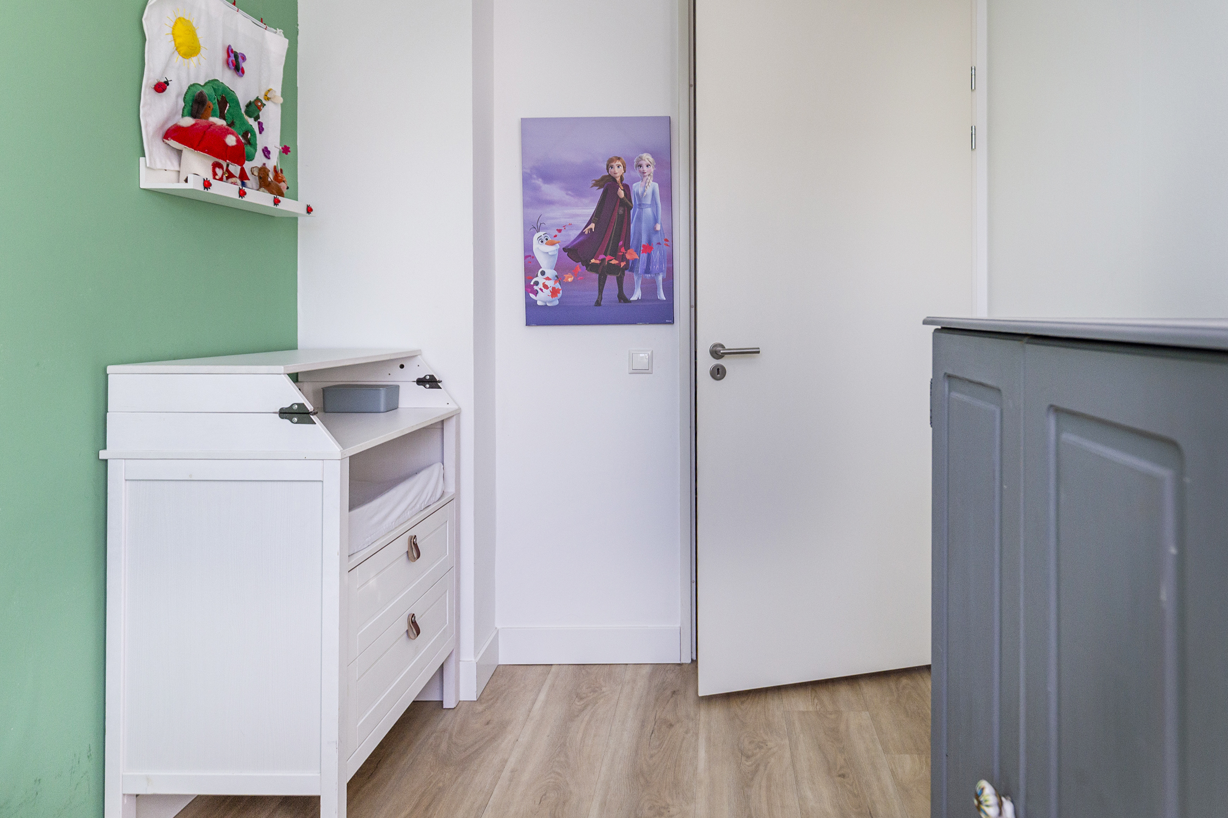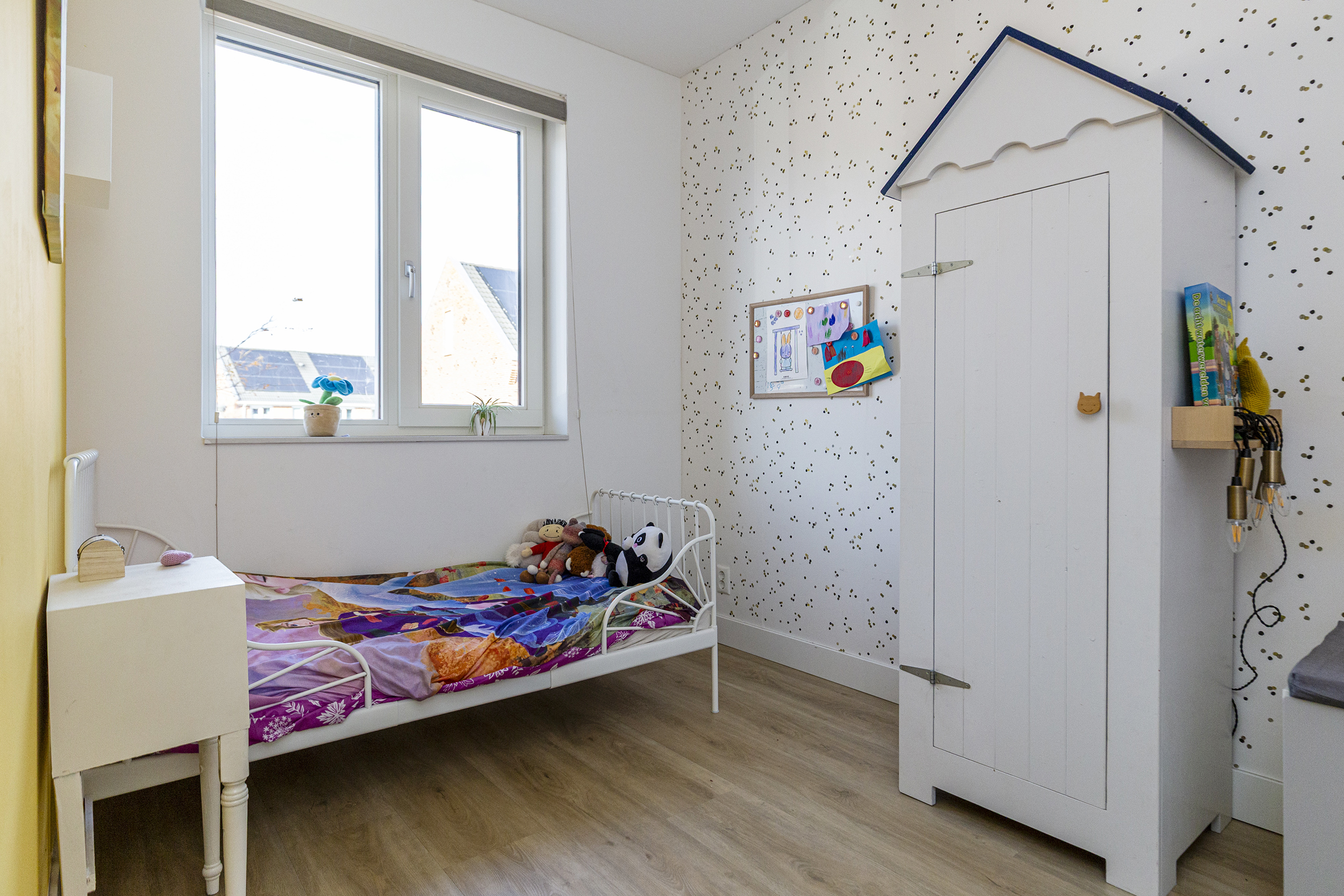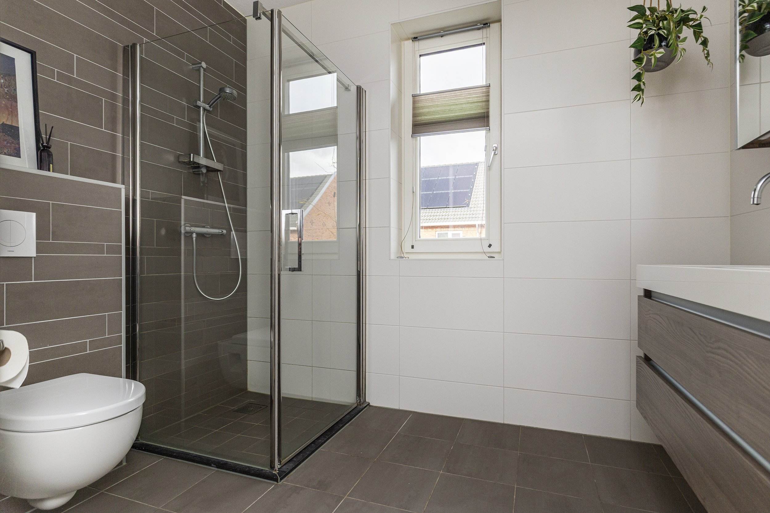 Via de overloop krijgen we toegang tot alle vertrekken. Aan de achterzijde bevindt zich de lichte en ruime hoofdslaapkamer en nog een ruime slaapkamer. Aan de voorzijde bevindt zich nog 1 ruime slaapkamer welke uitzicht heeft over de sfeervolle straat. De tussengelegen moderne badkamer beschikt over een toilet, wastafelmeubel en een inloopdouche. De gehele verdieping is voorzien van een mooie pvc-vloer met vloerverwarming en koeling.