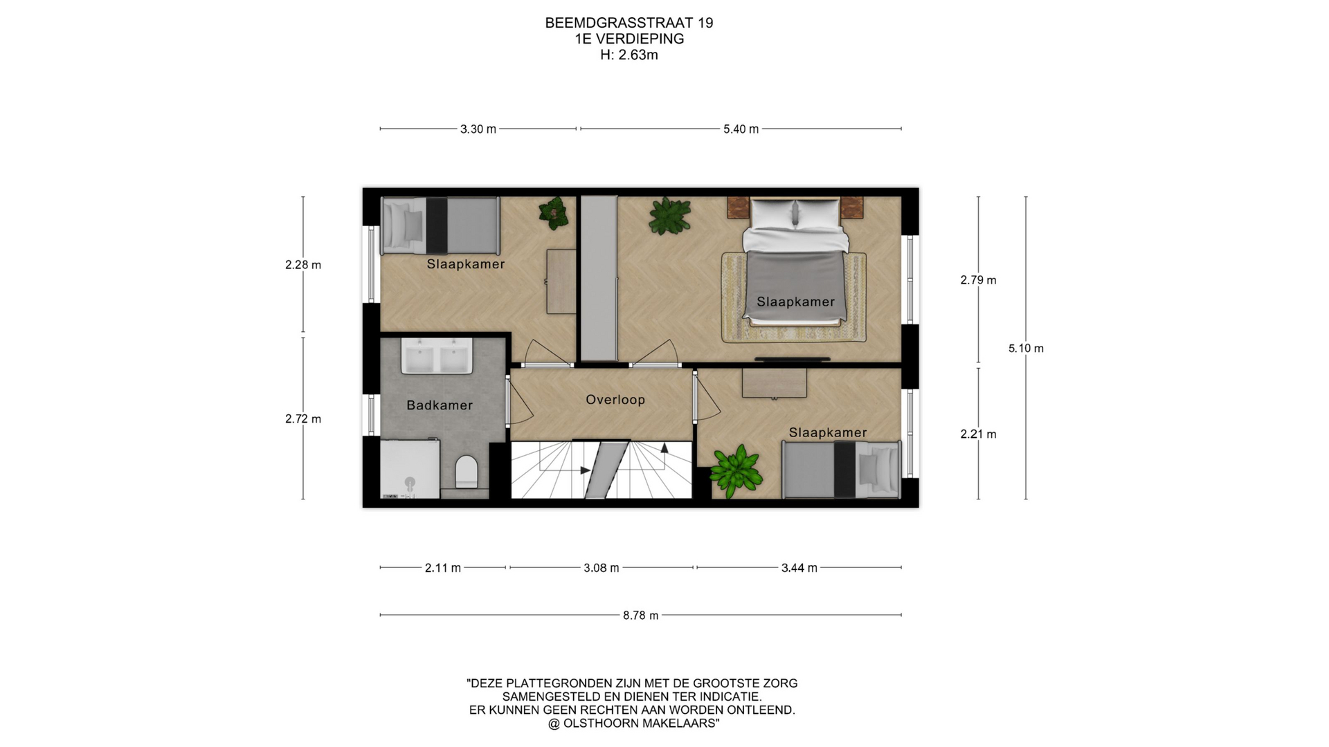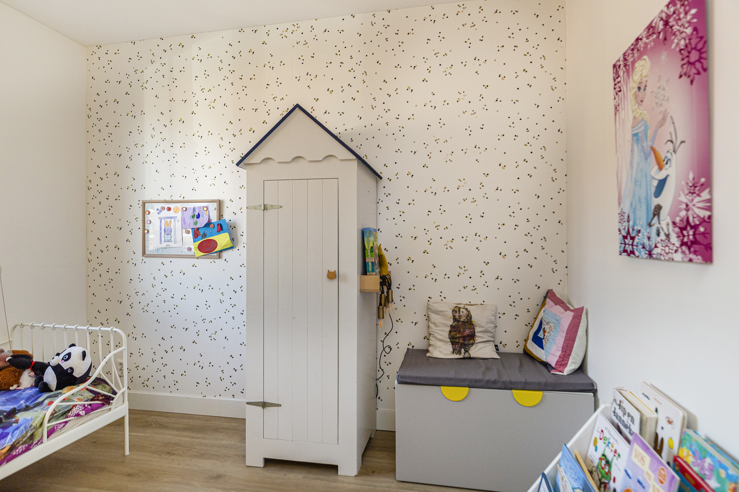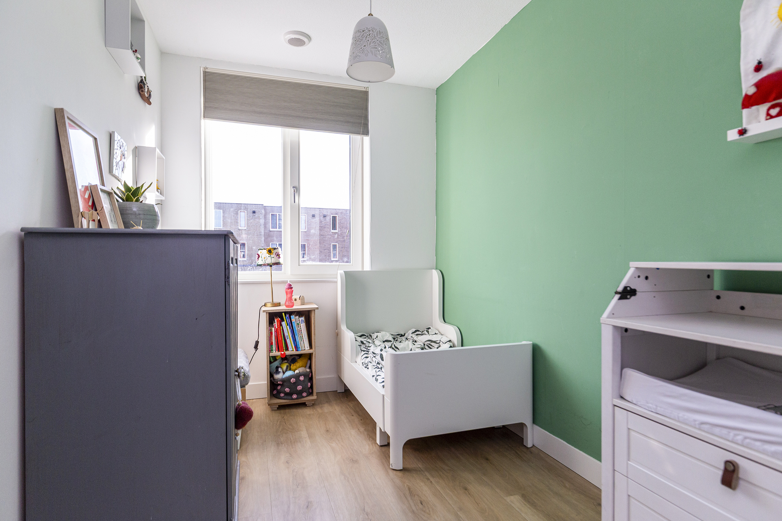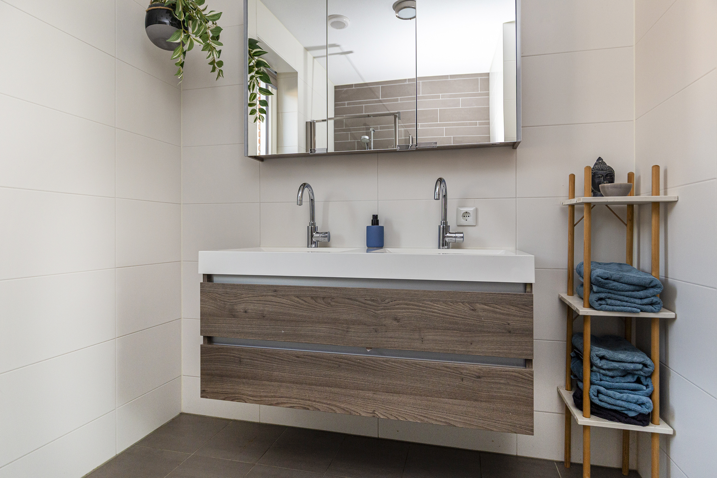 Via de overloop krijgen we toegang tot alle vertrekken. Aan de achterzijde bevindt zich de lichte en ruime hoofdslaapkamer en nog een ruime slaapkamer. Aan de voorzijde bevindt zich nog 1 ruime slaapkamer welke uitzicht heeft over de sfeervolle straat. De tussengelegen moderne badkamer beschikt over een toilet, wastafelmeubel en een inloopdouche. De gehele verdieping is voorzien van een mooie pvc-vloer met vloerverwarming en koeling.