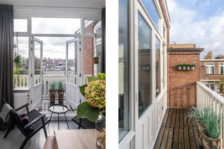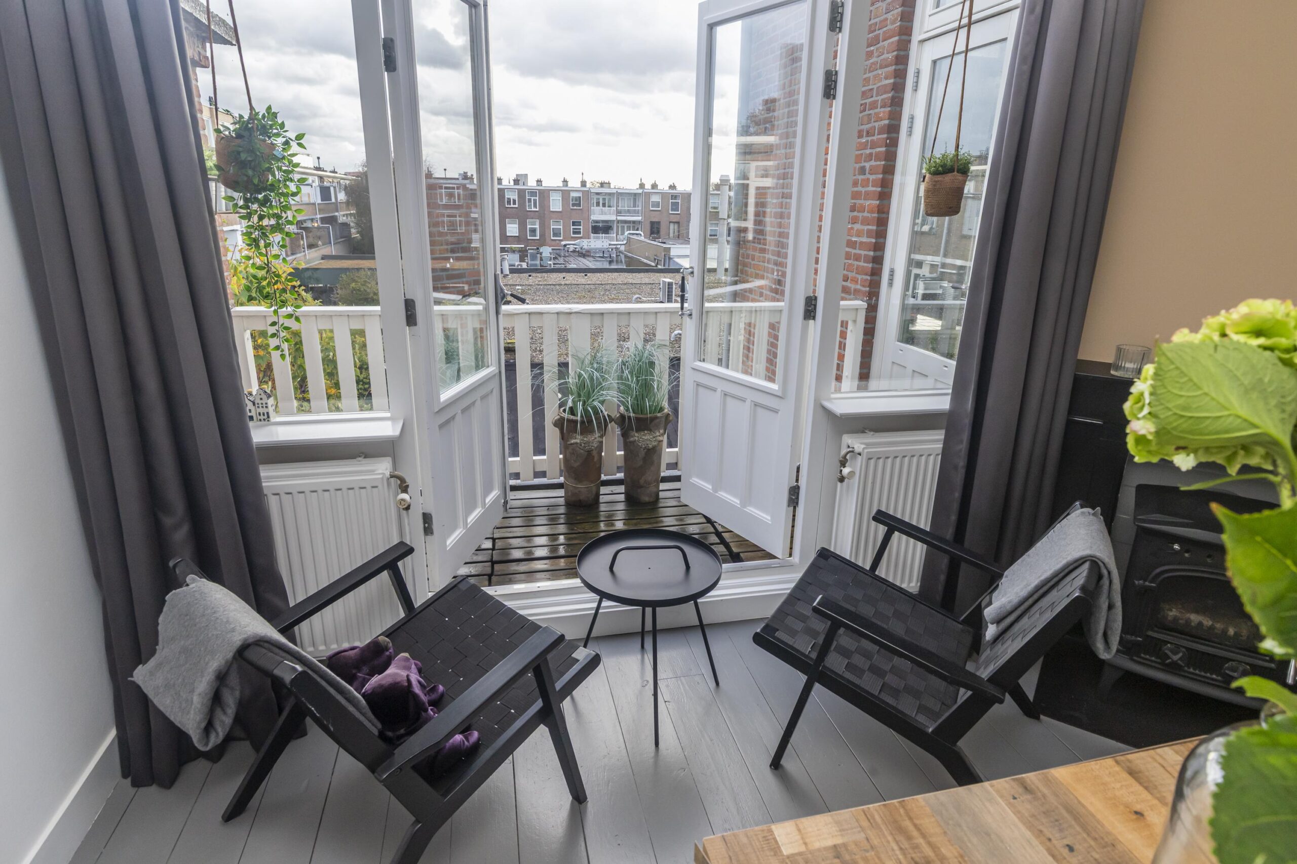 Het balkon (ca. 3,5m²) is een fijne buitenplek om ’s ochtends in het zonlicht te zitten met een kopje koffie. De ligging in een rustige straat in de Bloemenbuurt zorgt ervoor dat je geniet van aangename rust, terwijl winkels, groen en openbaar vervoer in de directe omgeving te vinden zijn.