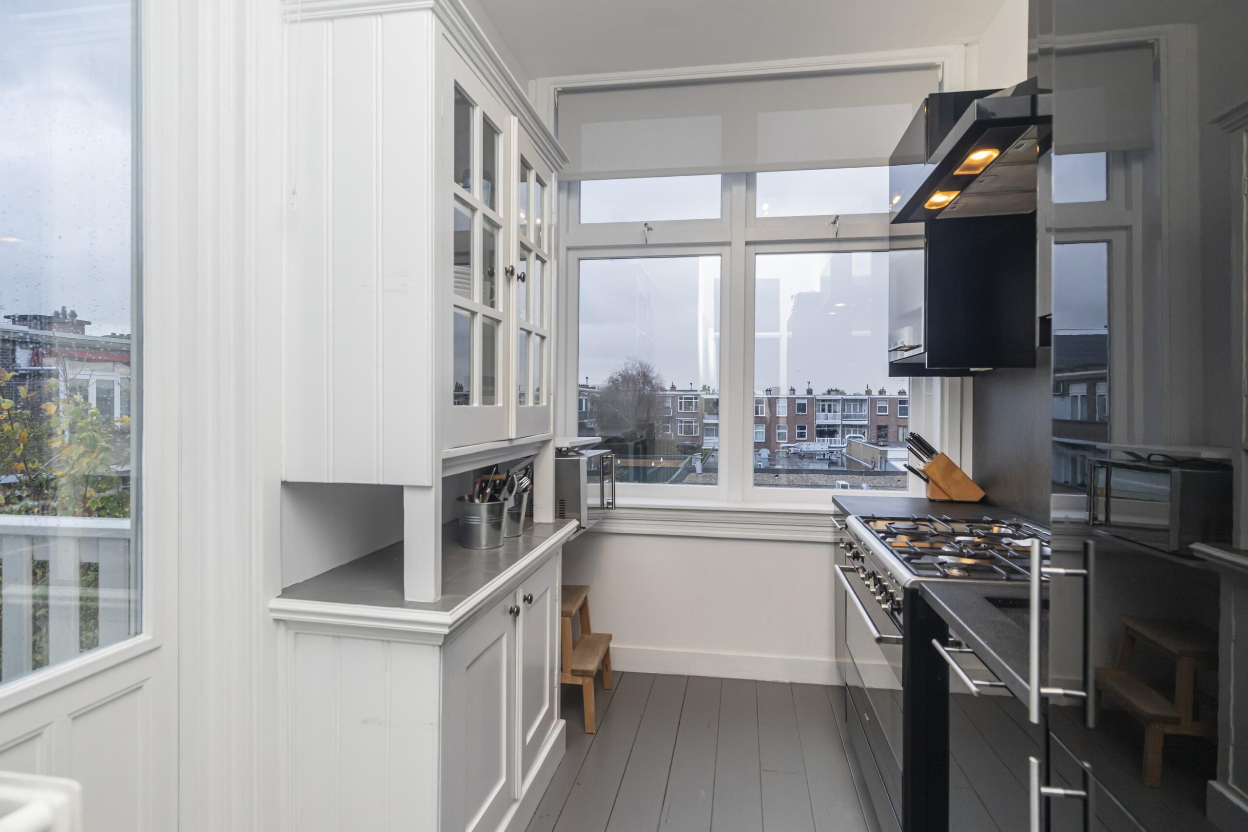 De stijlvolle keuken is voorzien van inbouwapparatuur en een fraai fornuis. Het biedt ruimte om heerlijk te koken en heeft veel bergruimte. Verder beschikt het appartement over drie ruime slaapkamers, een badkamer met douche, wastafelmeubel en aansluitingen voor wasmachine en droger, en een apart toilet met fonteintje.