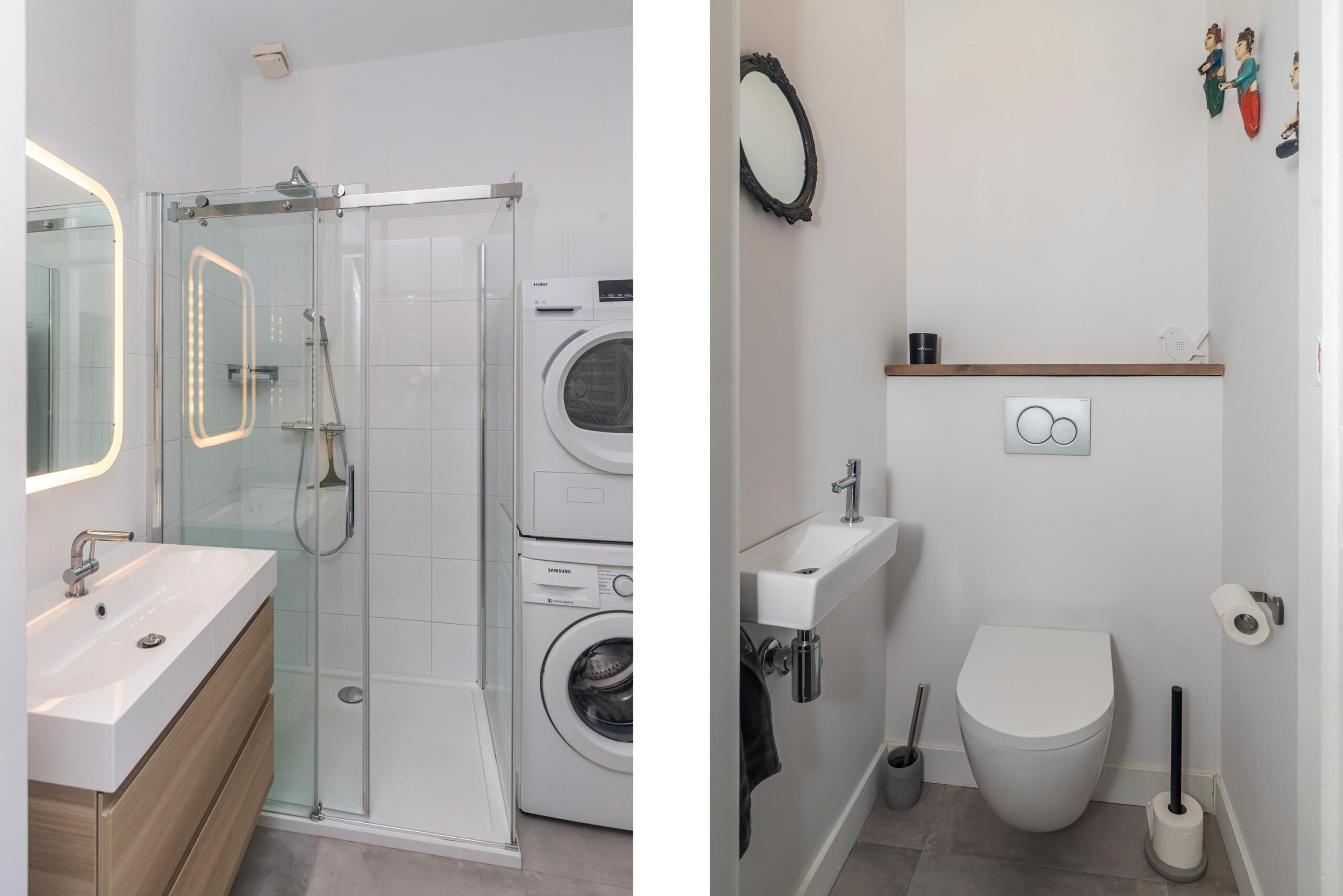 - Badkamervoorzieningen Douche, wastafelmeubel, wasmachineaansluiting