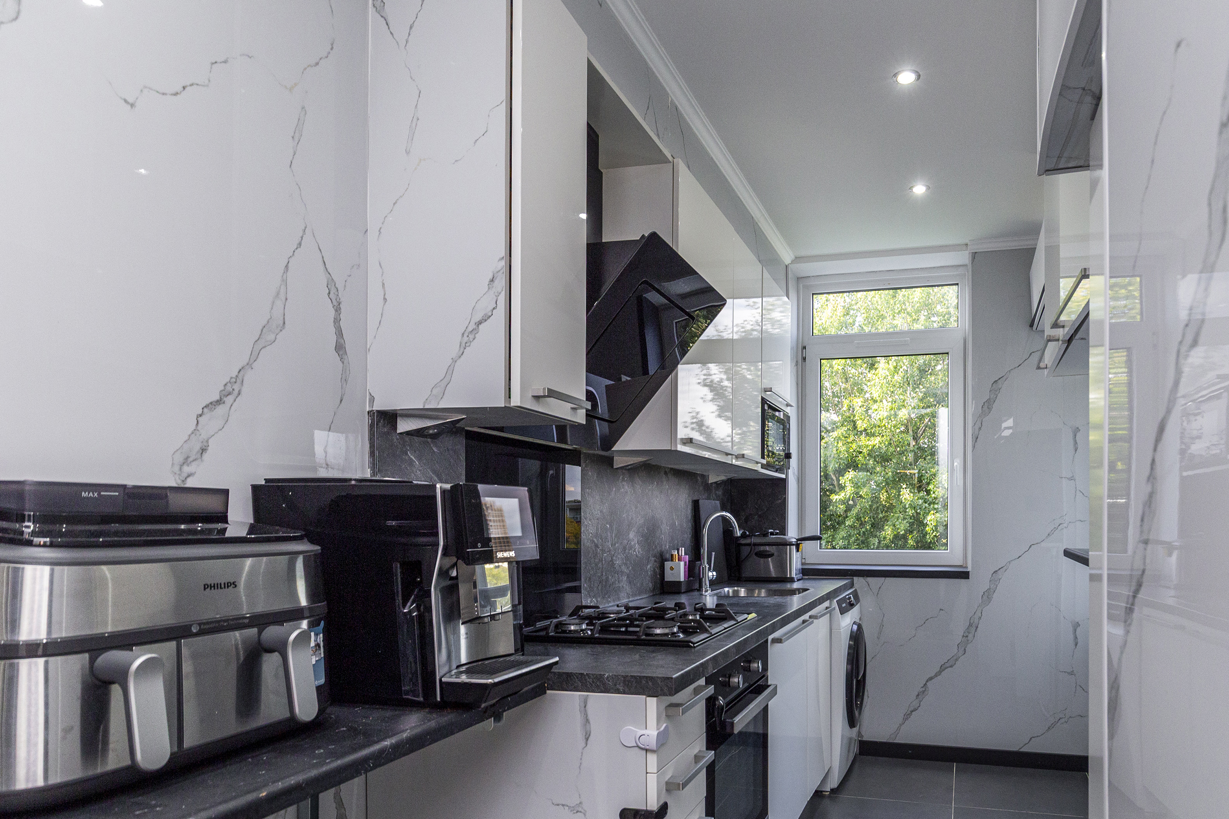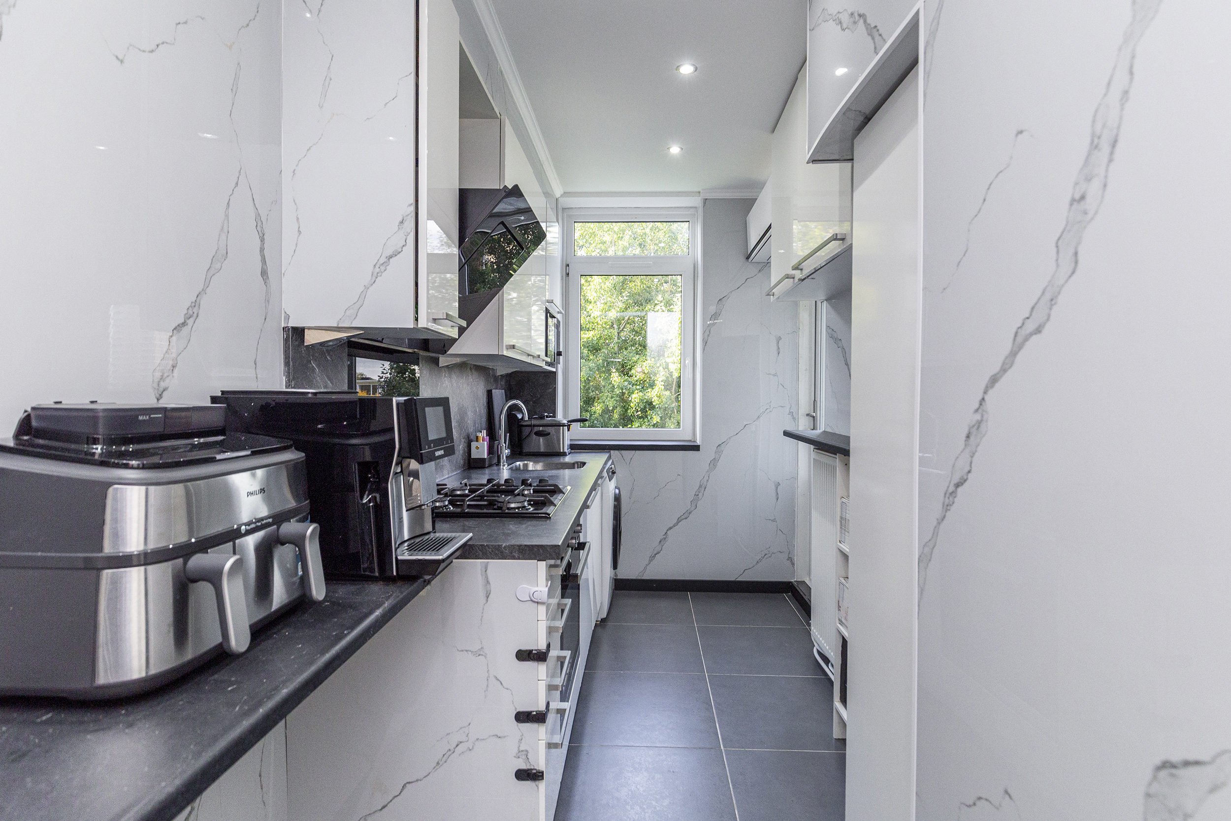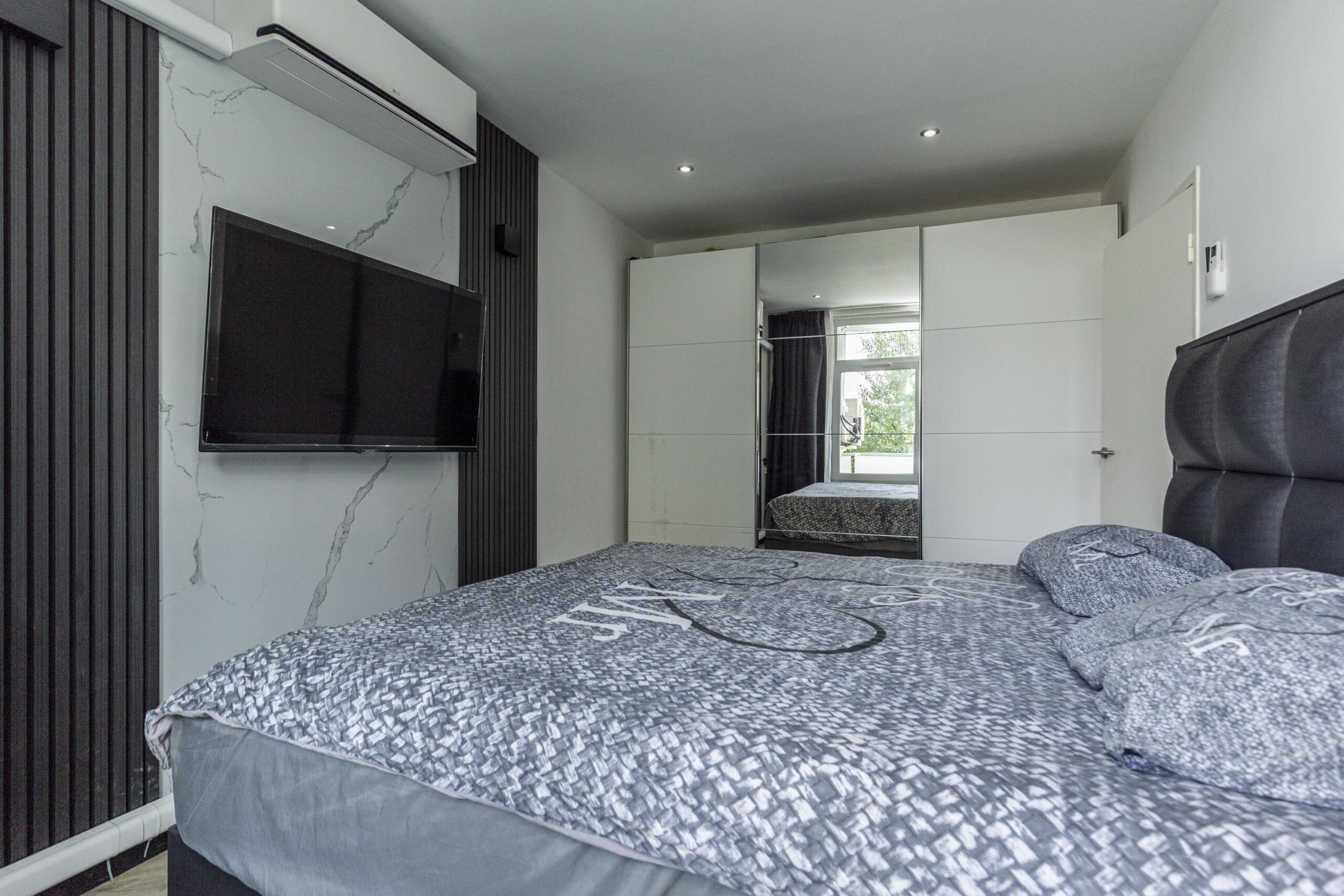 De woning beschikt over twee goed bemeten slaapkamers, beide gelegen aan de rustige achterzijde. Ook zijn beide slaapkamers voorzien van een airco. De moderne keuken is van alle gemakken voorzien: een vaatwasser, 4-pits gaskookplaat, afzuigkap én een aansluiting voor de wasmachine. Ook in de keuken is een airco geplaatst. Vanuit de keuken én een van de slaapkamers heeft u toegang tot het balkon.