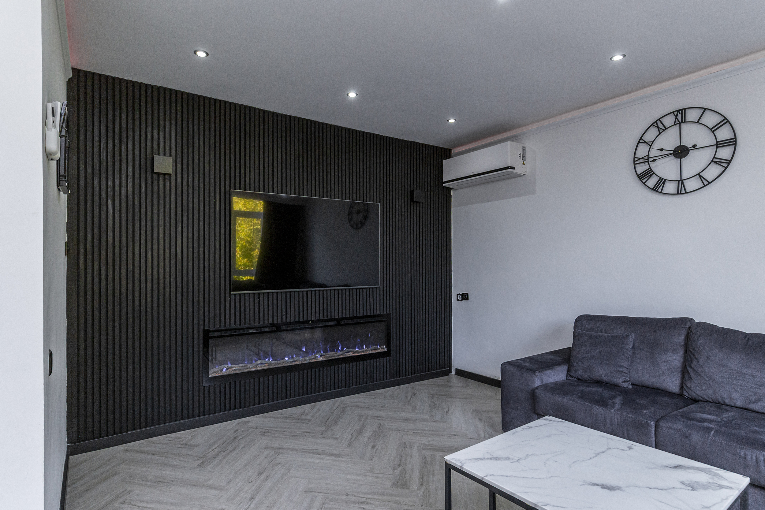 De royale woonkamer is heerlijk licht dankzij grote raampartijen en is stijlvol afgewerkt met een luxe cinewall inclusief opbergruimte en een elektrische haard. De eetkamer is bij de woonkamer getrokken, wat zorgt voor een ruimtelijk geheel. Dankzij de airconditioning in de woonkamer, geniet u het hele jaar door van een aangename temperatuur. Tevens is de gehele woning voorzien van een moderne PVC vloer.