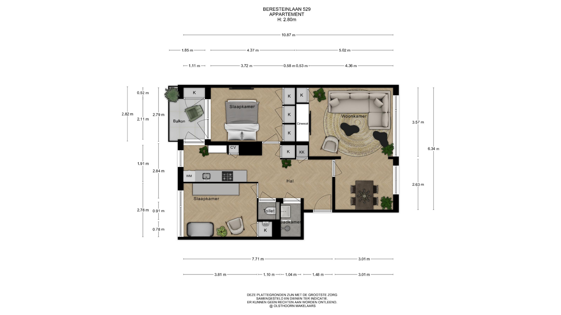 • Kamers: 3 (waarvan 2 slaapkamers)