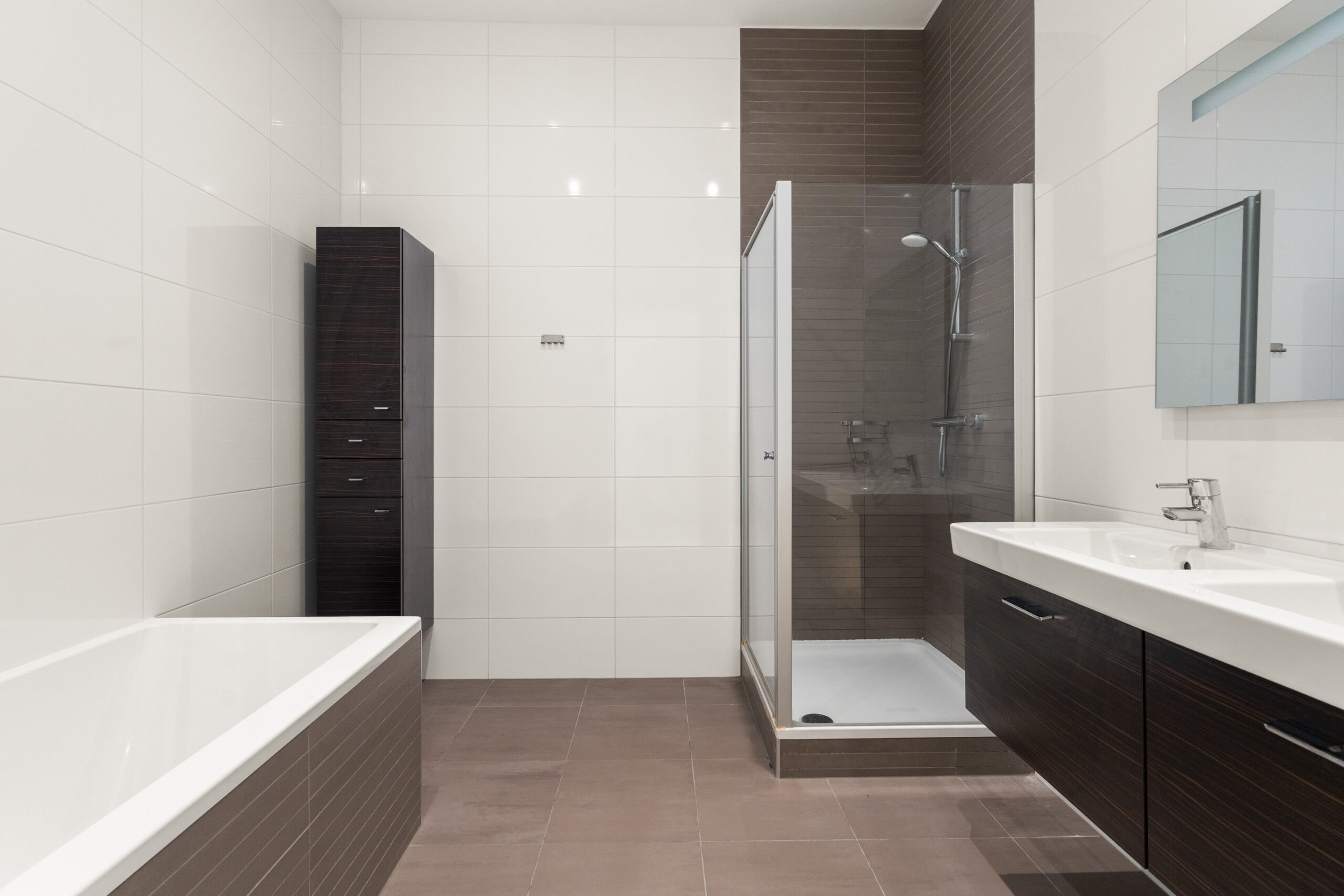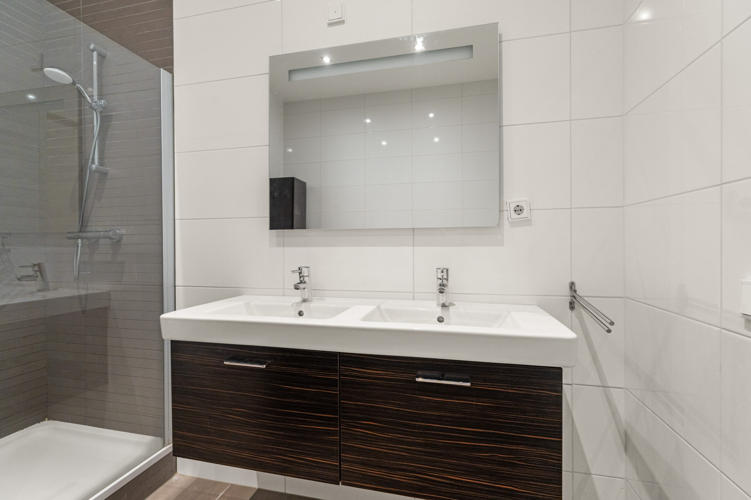 - Badkamervoorzieningen Ligbad, douche, dubbele wastafel