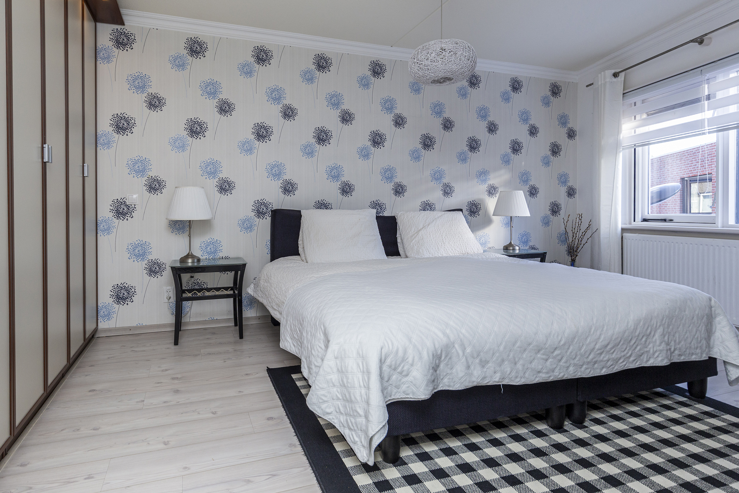 Er zijn drie slaapkamers, waarvan één met een grote kastenwand en hor, en een tweede kamer aan de achterzijde met schuifhor. Een kleinere kamer aan de voorzijde is nu ingericht als garderobekamer, maar ook perfect te gebruiken als logeerkamer of werkkamer. De master bedroom aan de voorzijde beschikt over een inbouwkast en schuifhor.