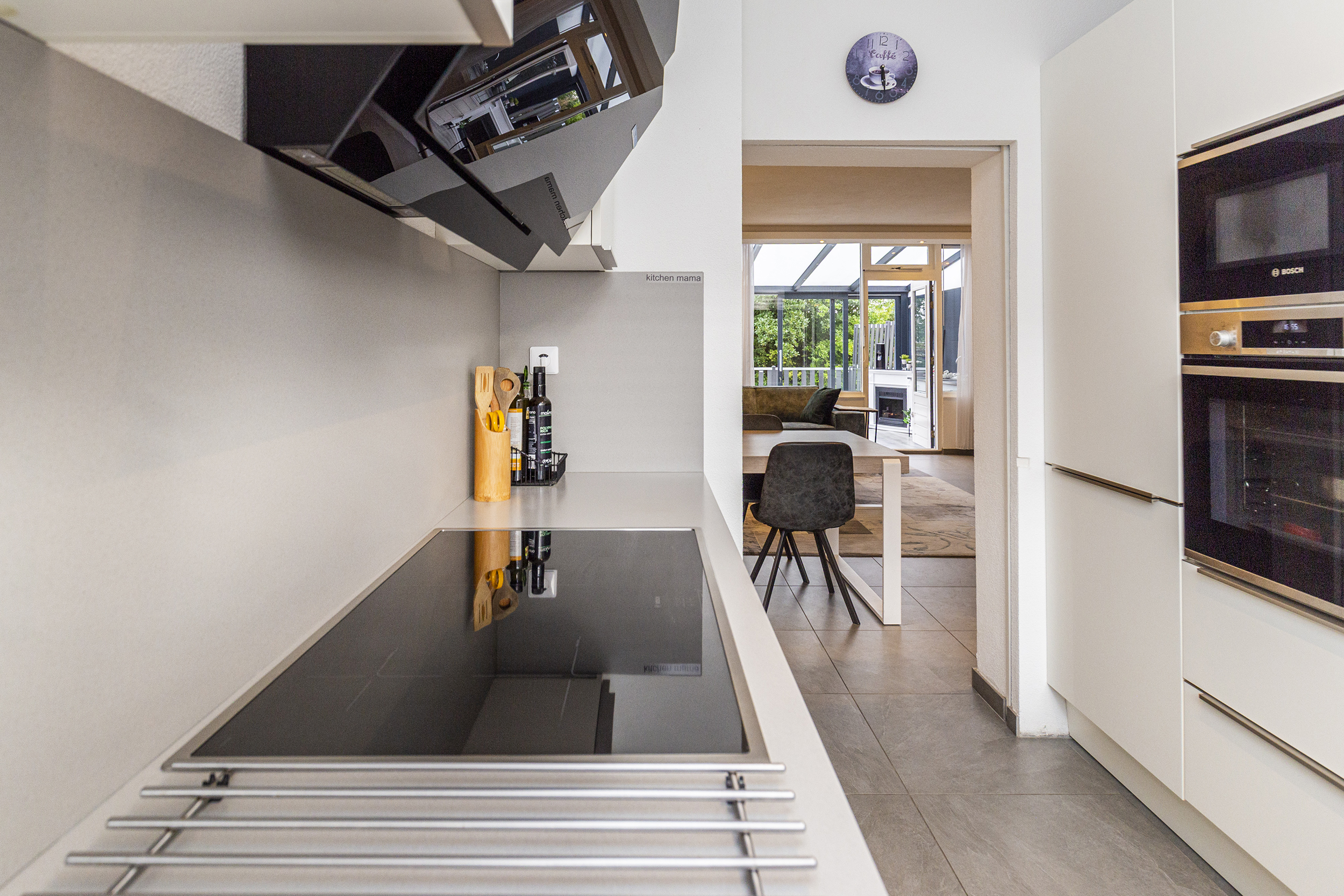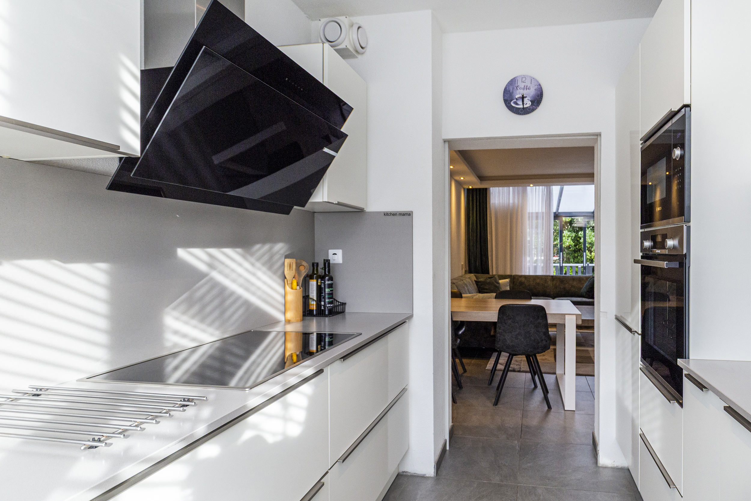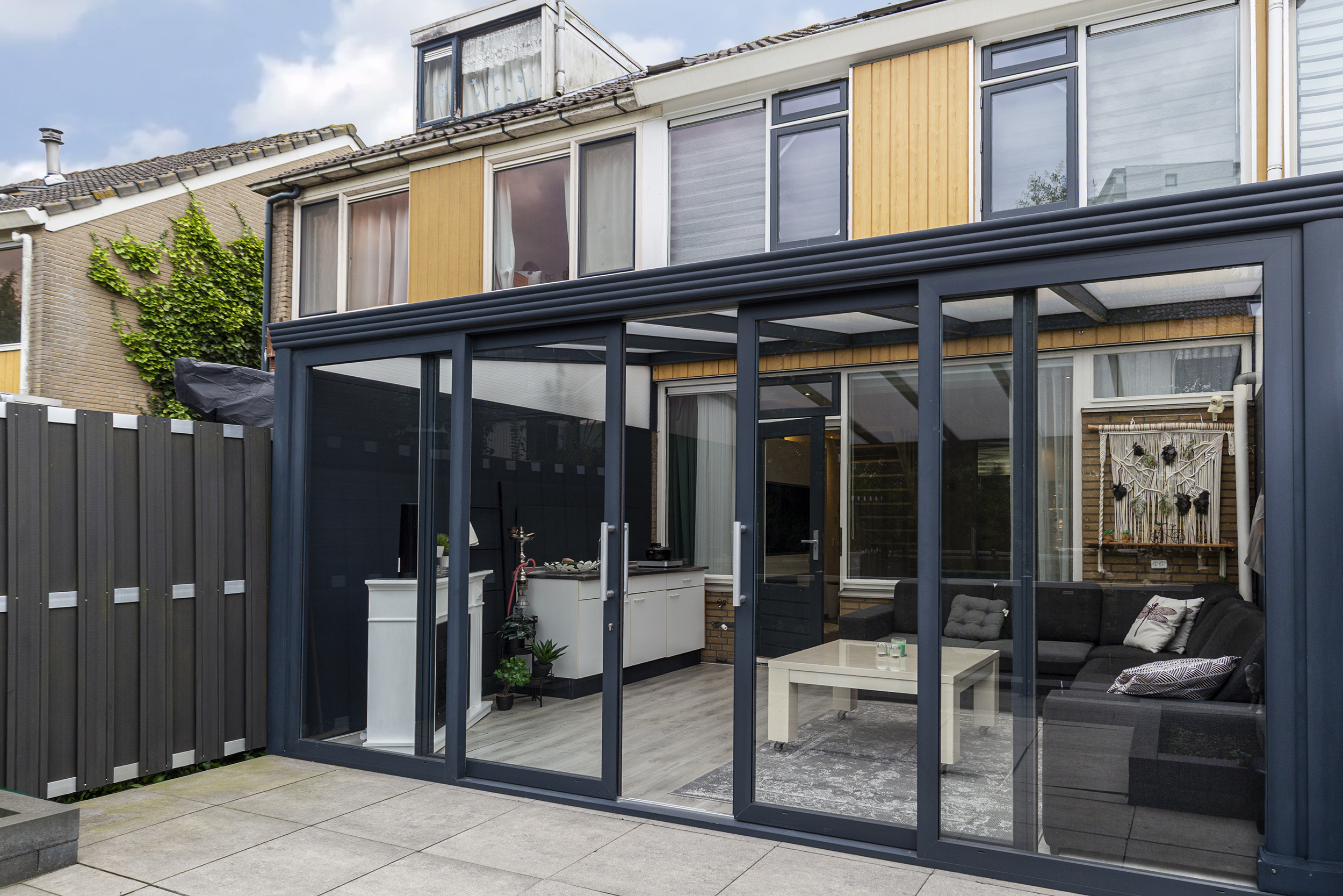 Voortuin met stenen berging welke is voorzien van elektra en een 15 zonnepanelen. Entree in de hal met meterkast en toilet met wastafel. Lichte woonkamer met open keuken aan de voorzijde van de woning. De keuken is voorzien van een vaatwasser, koelkast, combimagnetron een 4 pits inductiekookplaat met recirculatie afzuigkap. Het zitgedeelte van de woonkamer bevindt zich aan de achterzijde van de woning en is v.v. vloerverwarming een biedt toegang tot de achtertuin met ruime tuinkamer. Deze zonnige buitenruimte is gelegen aan het water.