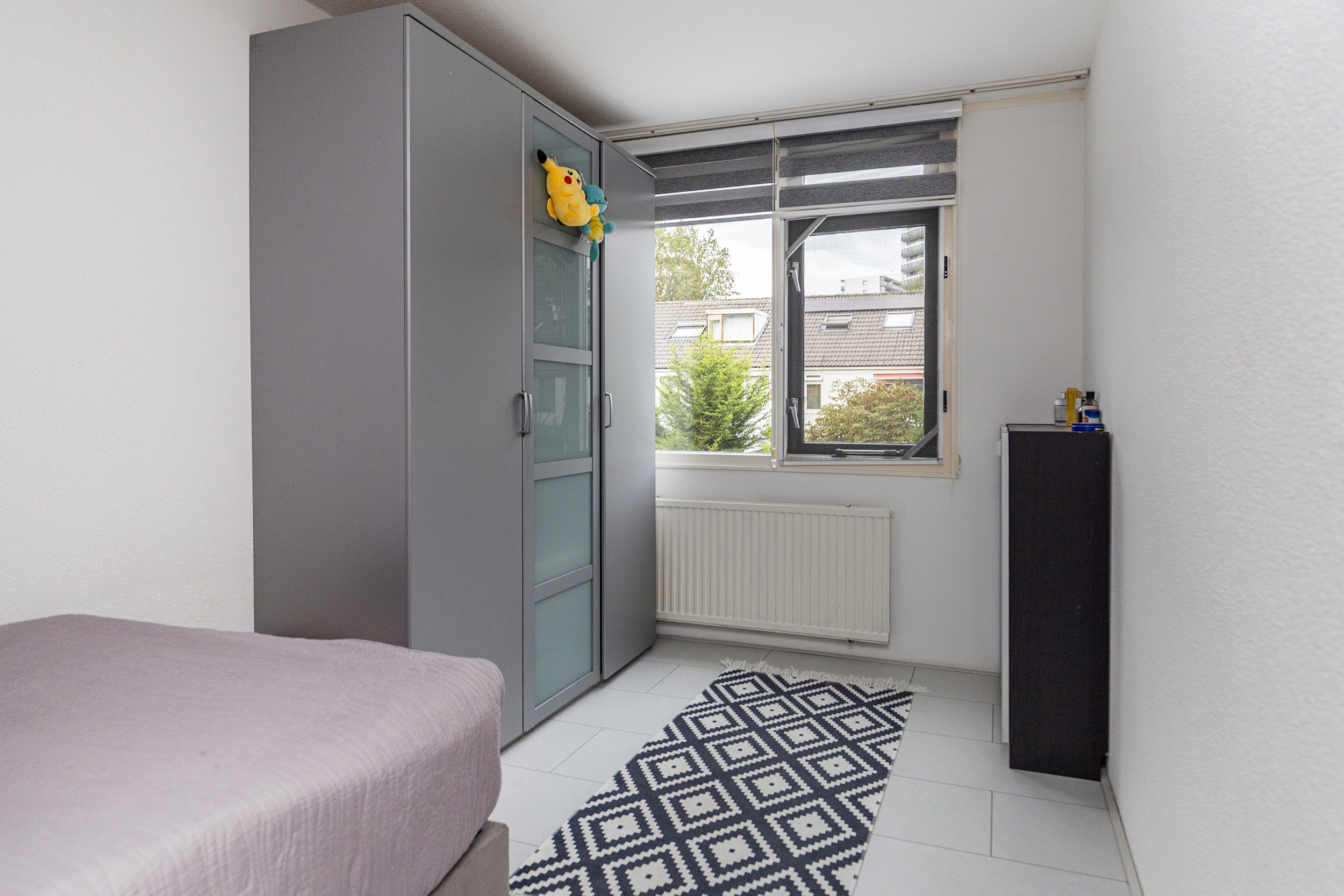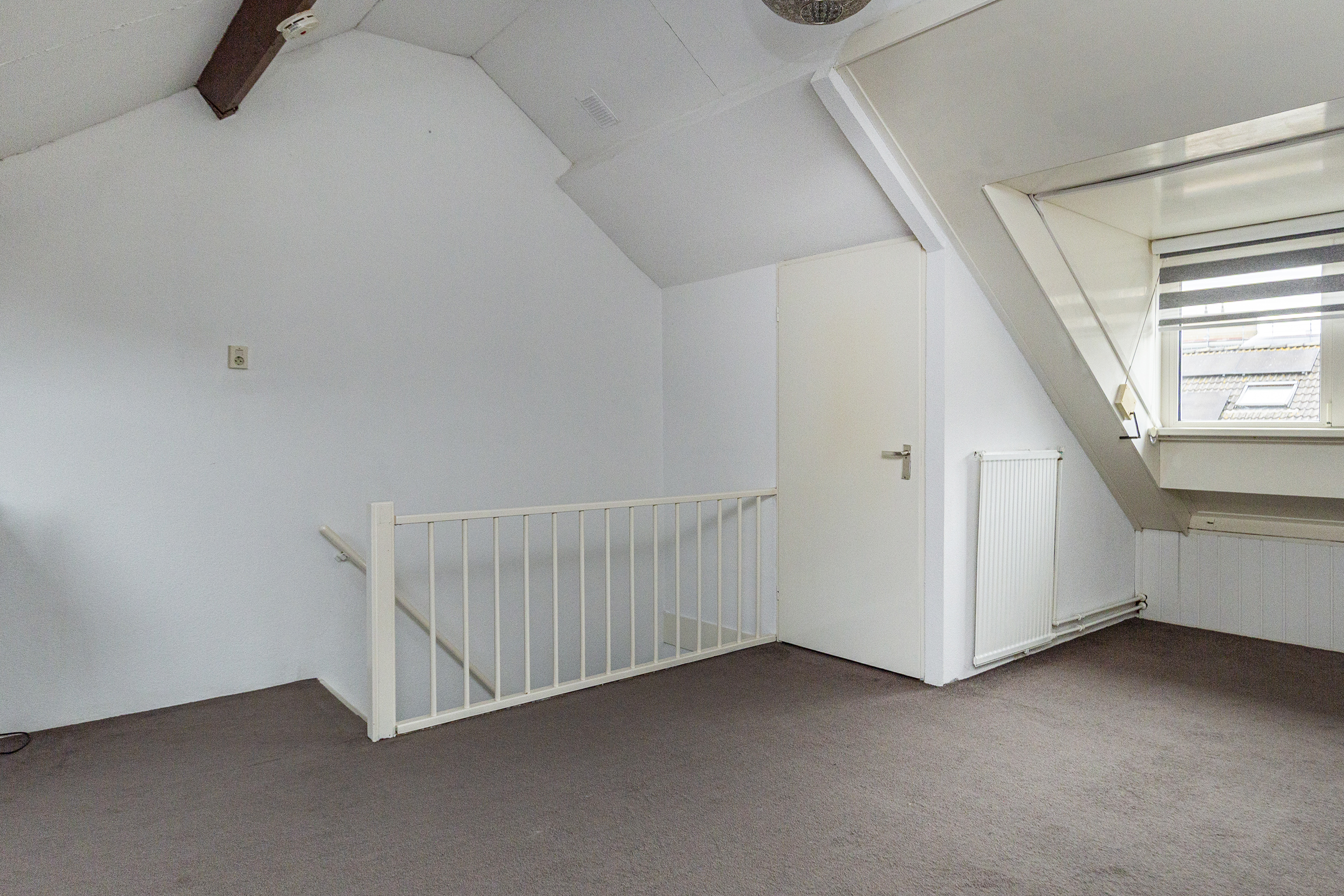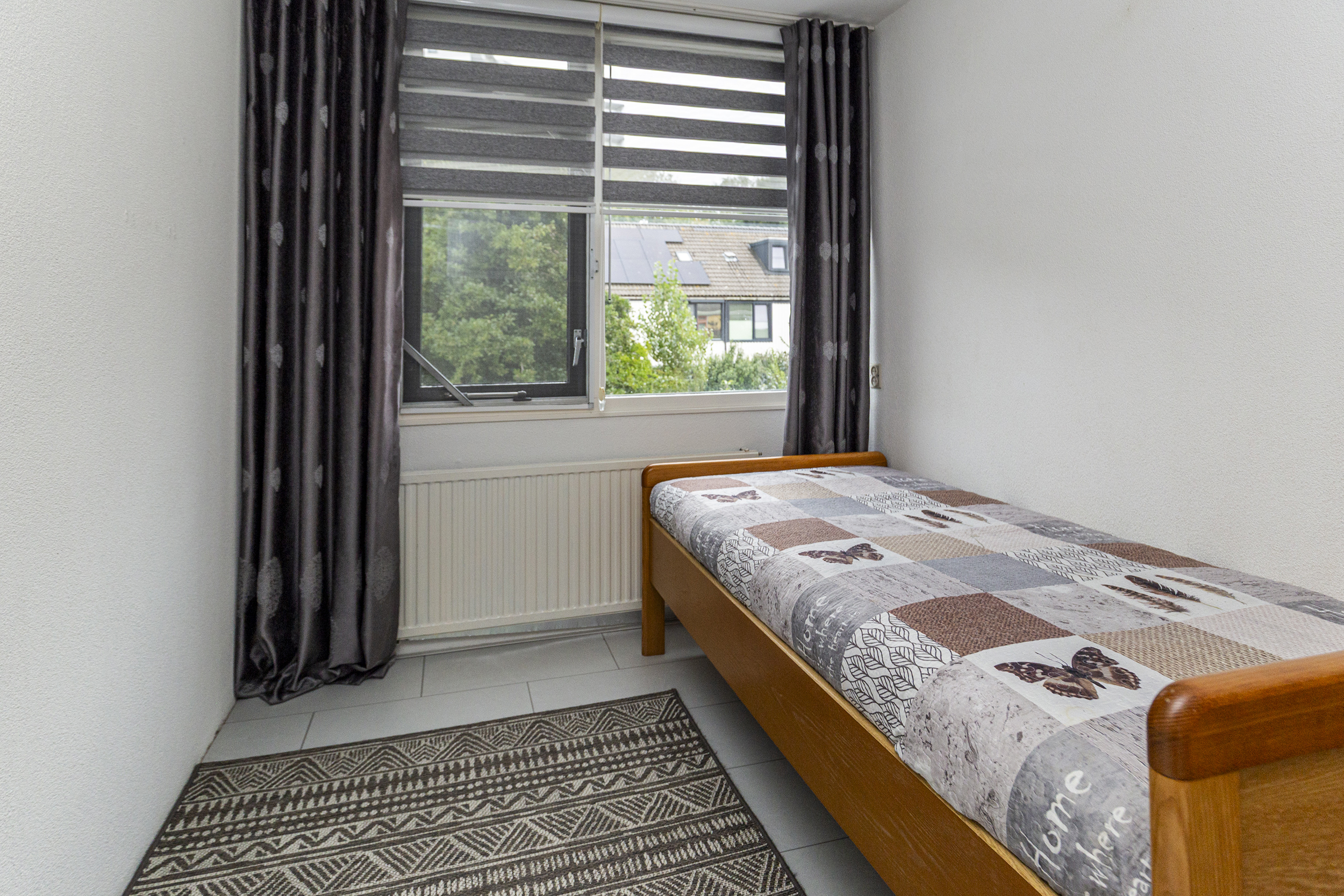 Overloop met aan de voorzijde van de woning een ruime slaapkamer. Tussenliggende nette badkamer met wastafelmeubel, inloopdouche en tweede toilet. Ruime slaapkamer aan de voorzijde en aan de achterzijde van de woning een tweetal slaapkamers.