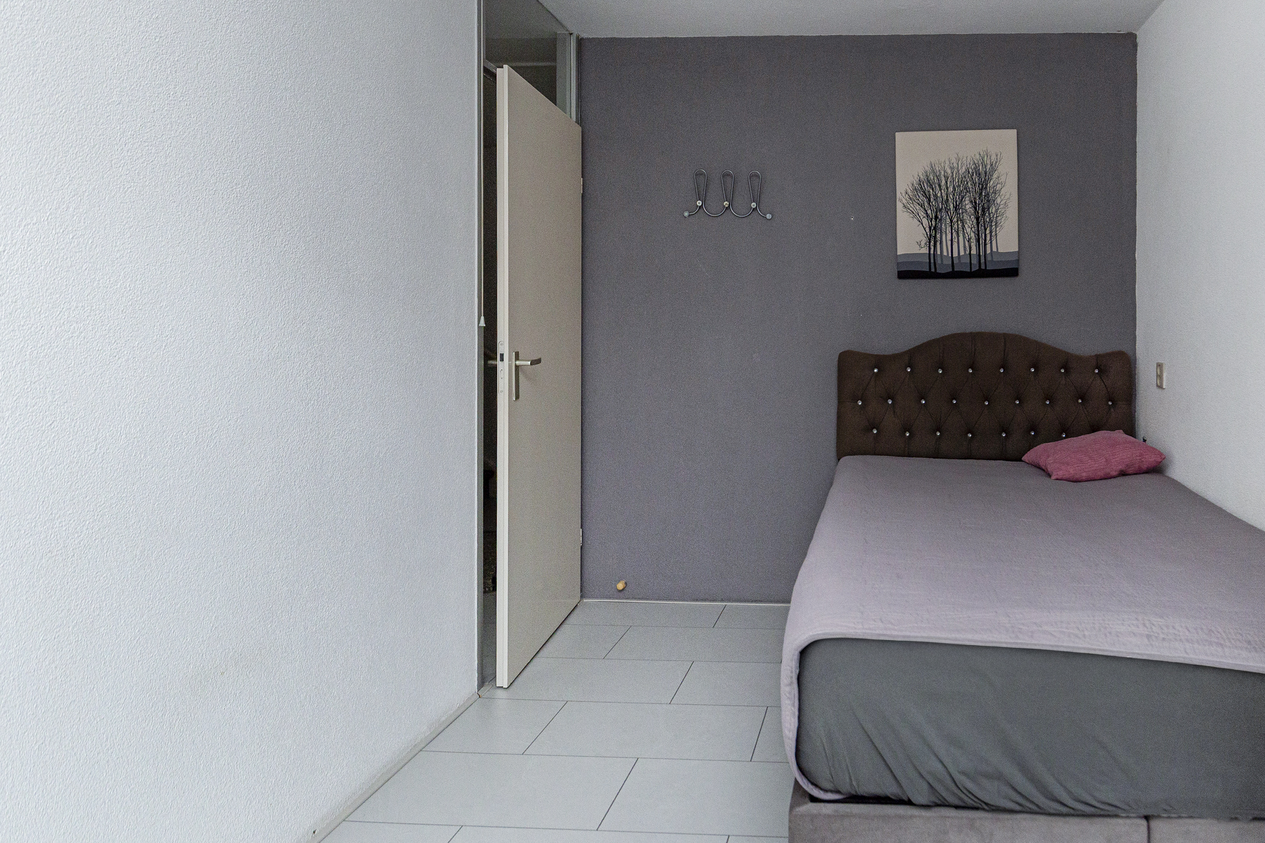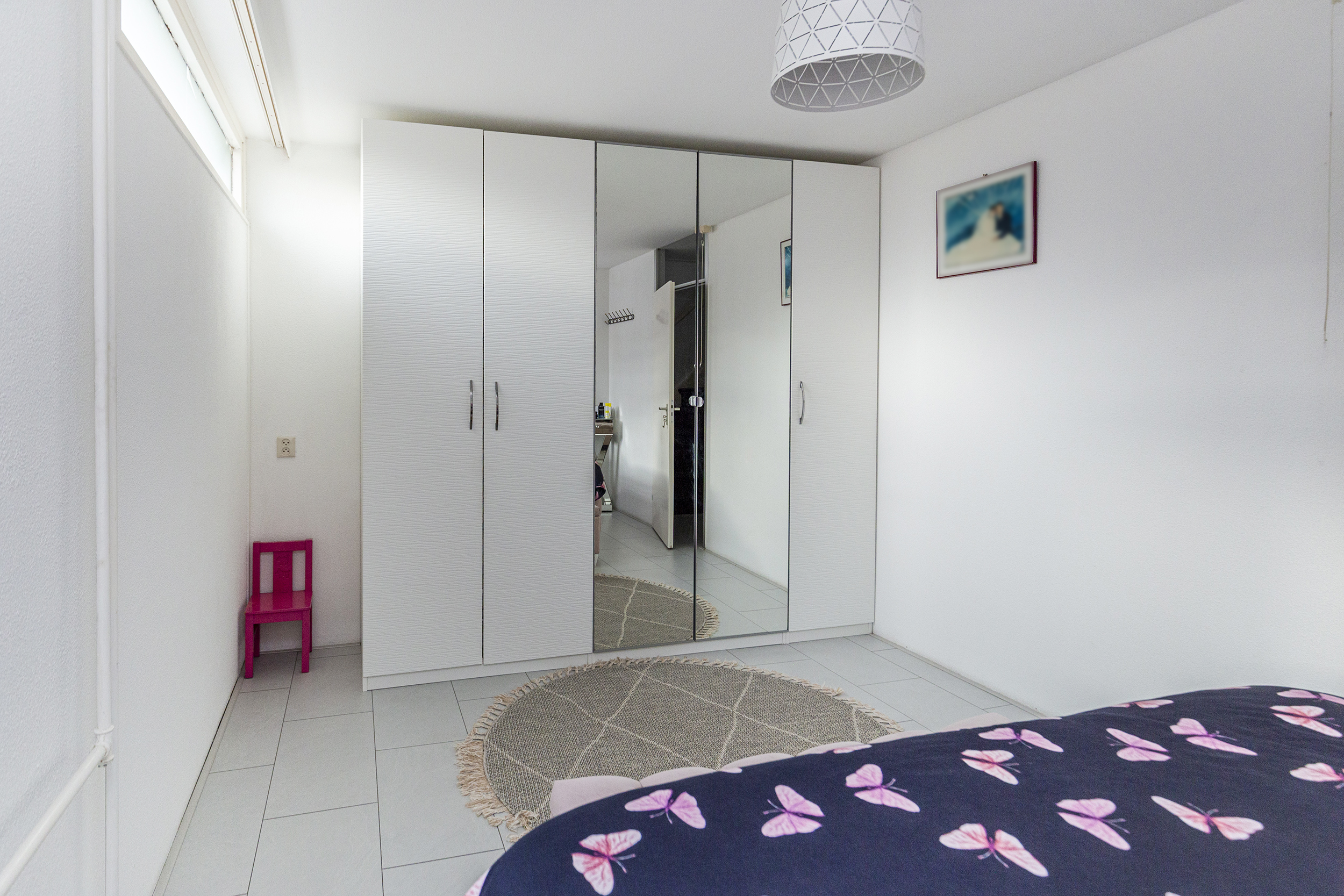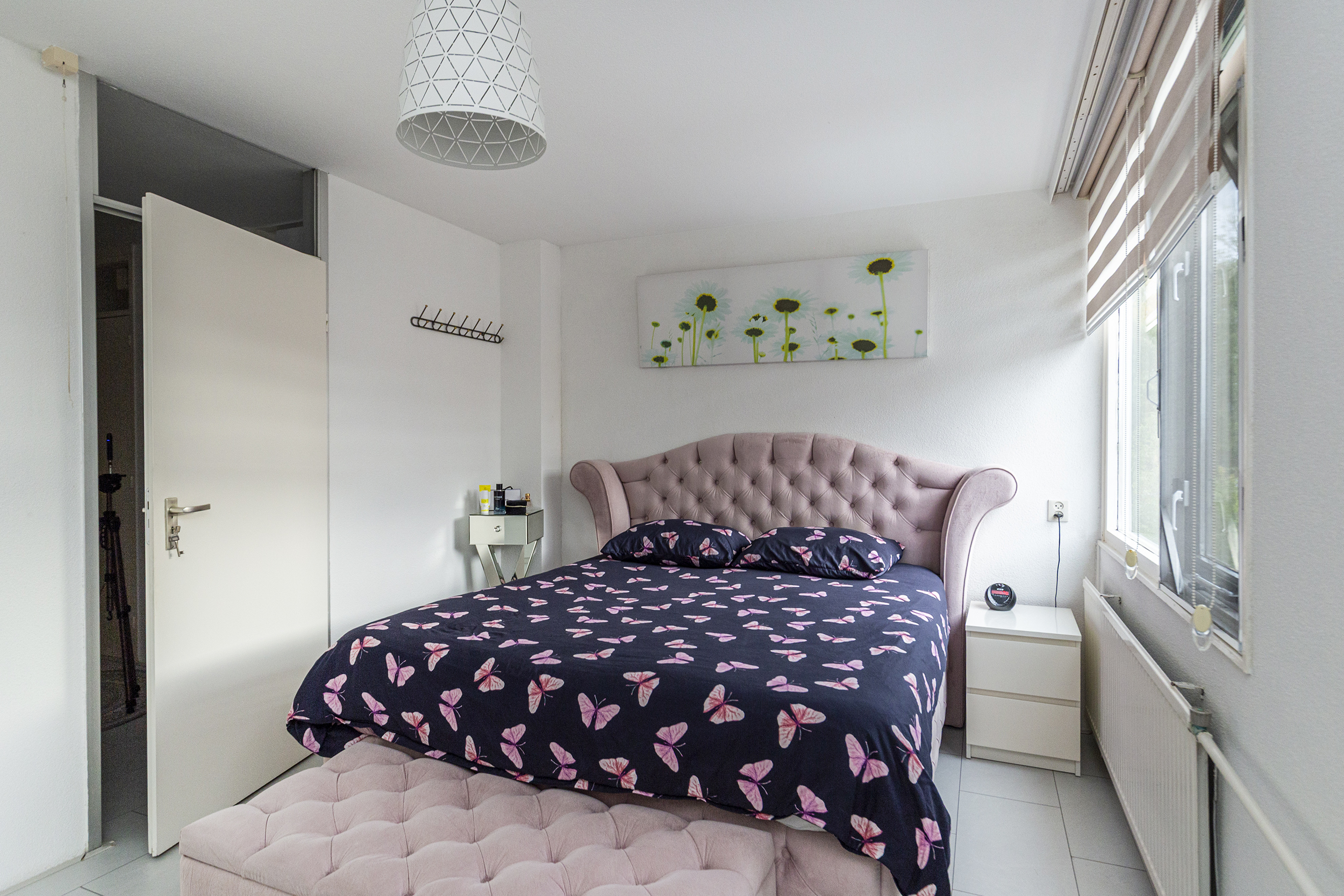 Overloop met aan de voorzijde van de woning een ruime slaapkamer. Tussenliggende nette badkamer met wastafelmeubel, inloopdouche en tweede toilet. Ruime slaapkamer aan de voorzijde en aan de achterzijde van de woning een tweetal slaapkamers.