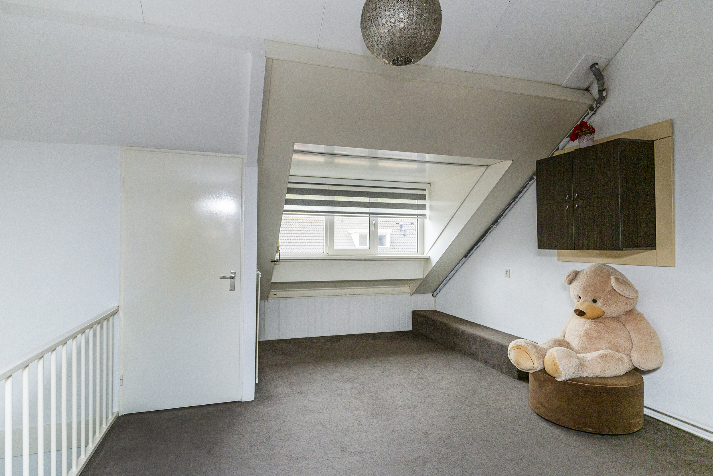 Ruime overloop, opstelplaats C.V.-combiketel en mechanische ventilatie. Slaapkamer met dakvensters en dakkapel. Deze slaapkamer heeft eveneens een aansluiting voor de wasmachine/droger.