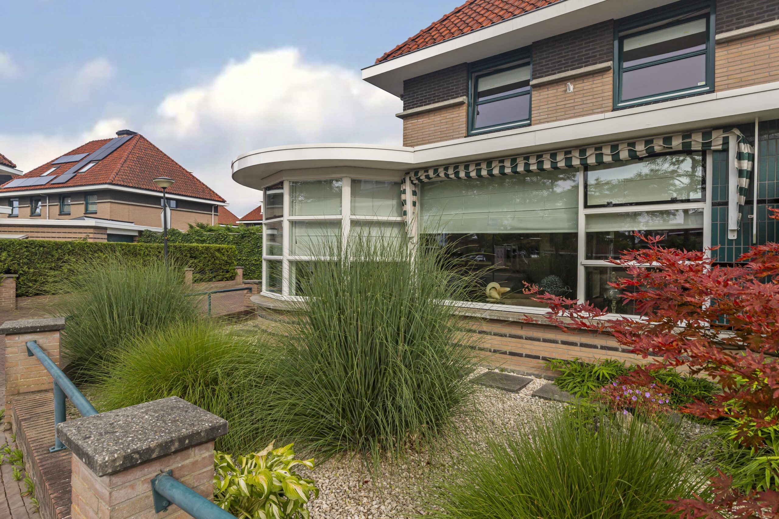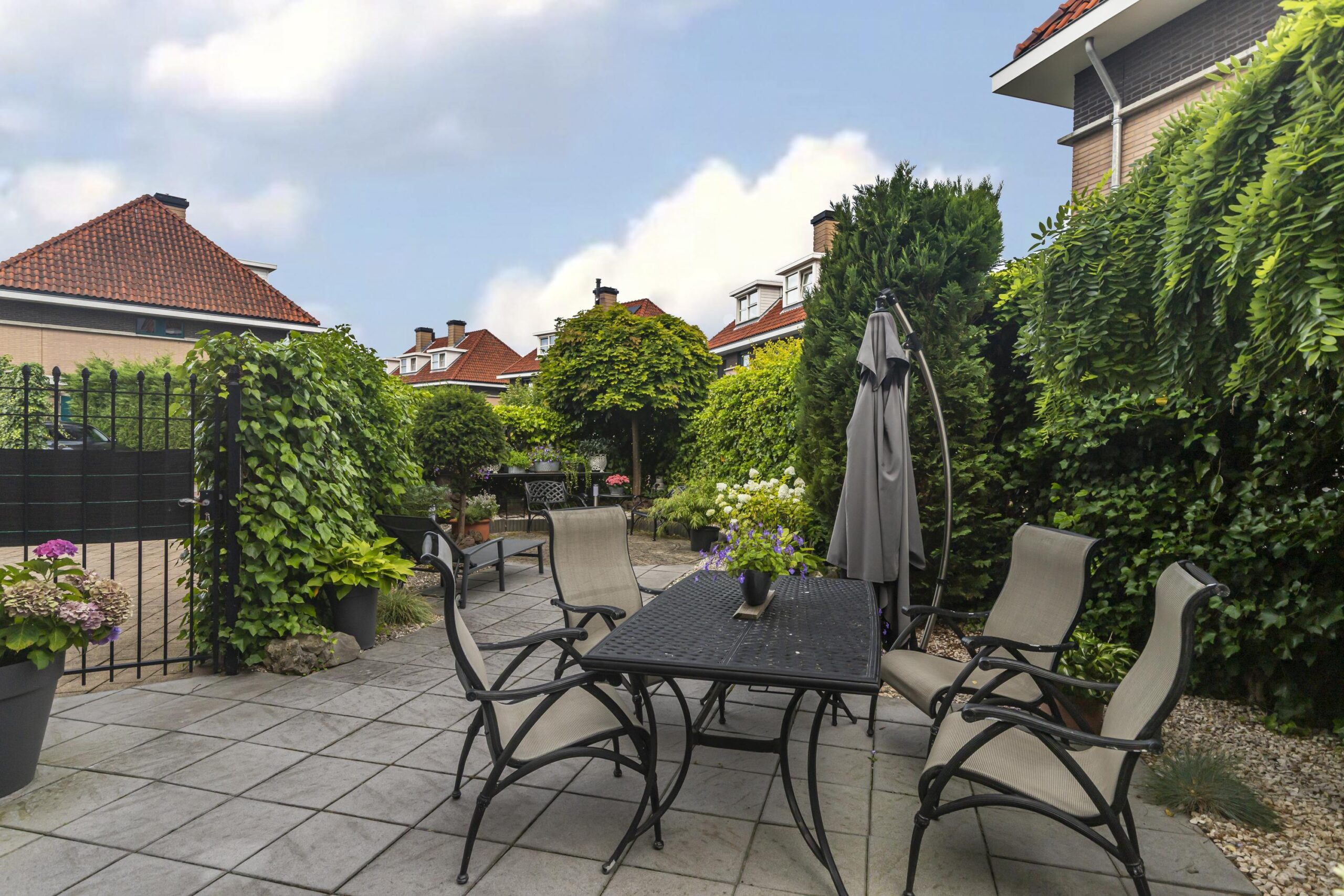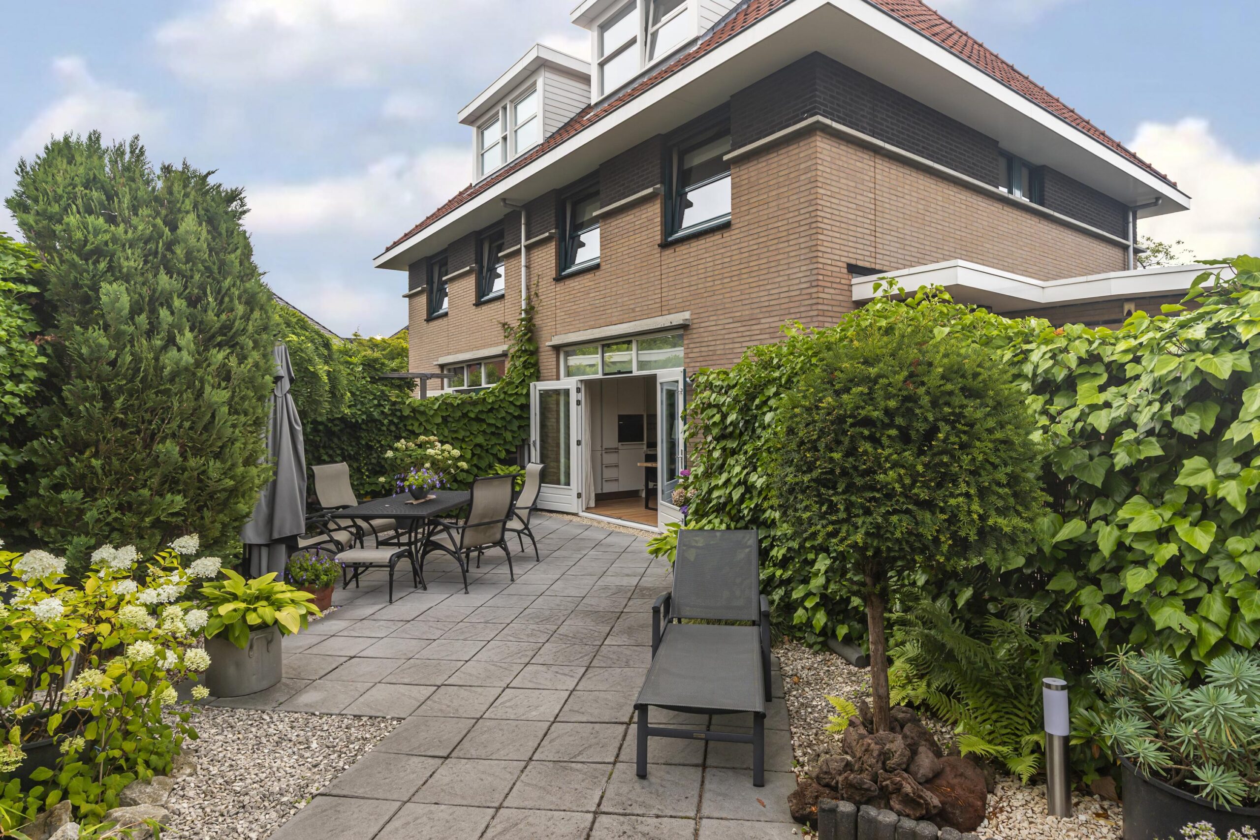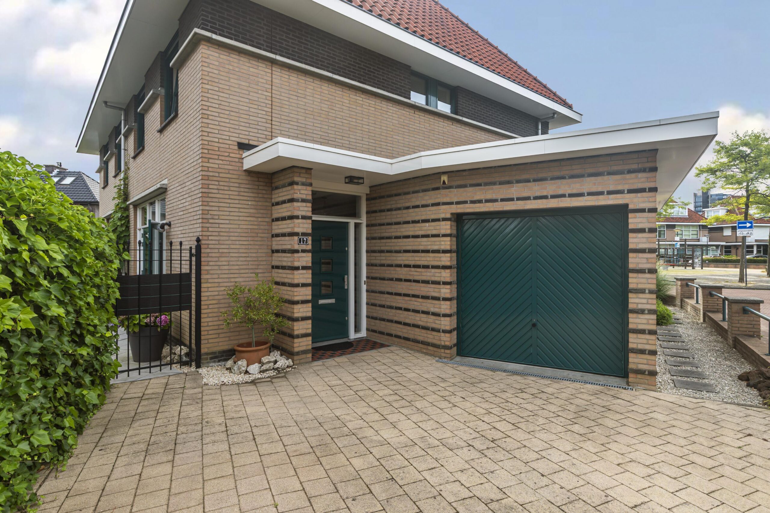 De woning ademt de charme van de jaren ’30, met fraaie dakoverstekken, erkers en karakteristieke tuinmuurtjes. Aan de voorzijde ligt een onderhoudsvriendelijke voortuin, terwijl de zonnige en kindvriendelijke achtertuin op het noordwesten via een zijdeur te bereiken is. De garage (ca. 19 m²) is ruim opgezet, voorzien van een elektrische overheaddeur en aansluiting voor de wasmachine.
