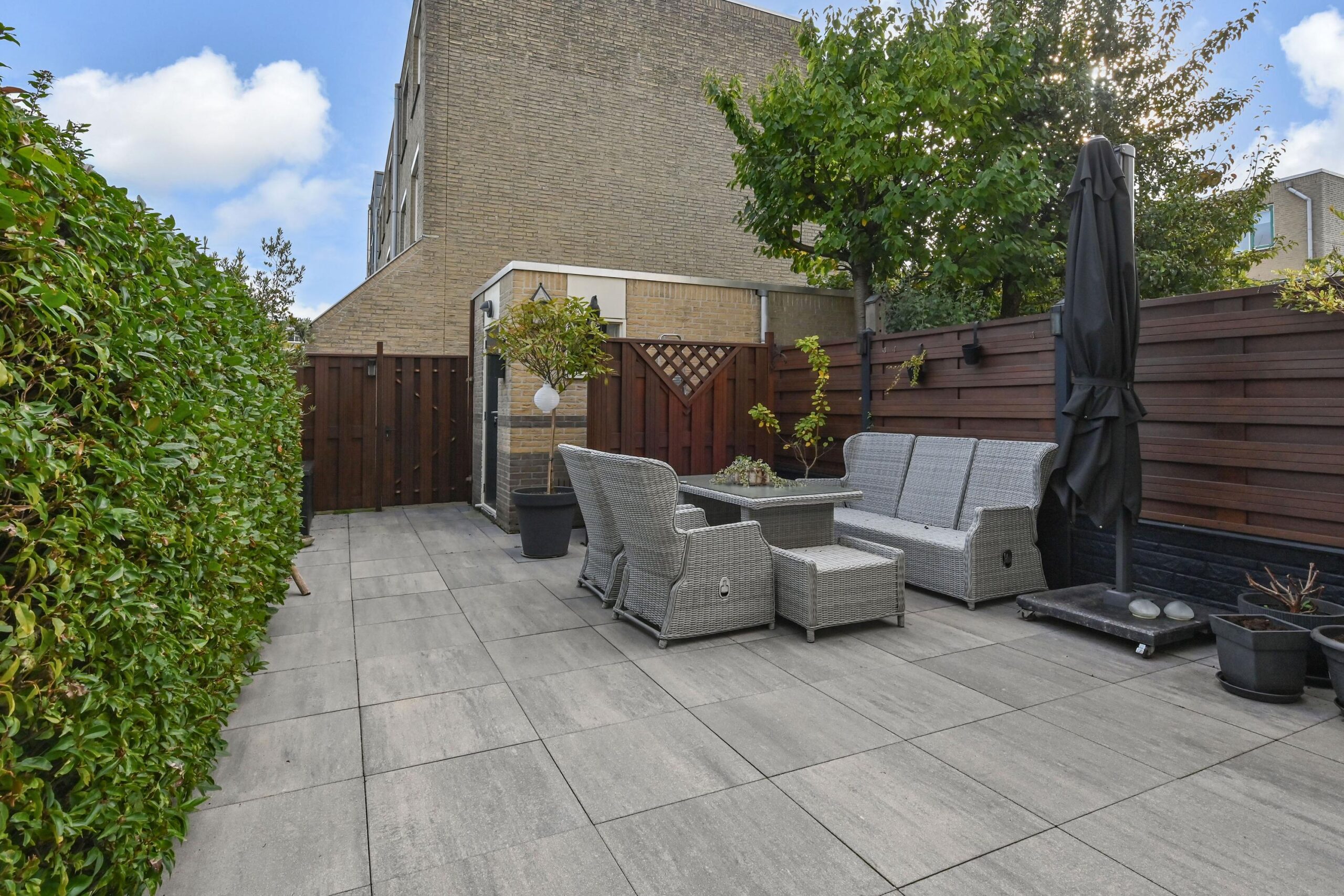 De woning beschikt over een ruime achtertuin van ca. 54 m², gelegen op het oosten. Hier kun je al vroeg op de dag genieten van de zon. Achterin de tuin staat een handige stenen berging, perfect voor het opbergen van fietsen, gereedschap of tuinmeubilair. De tuin is ook bereikbaar via een achterom.