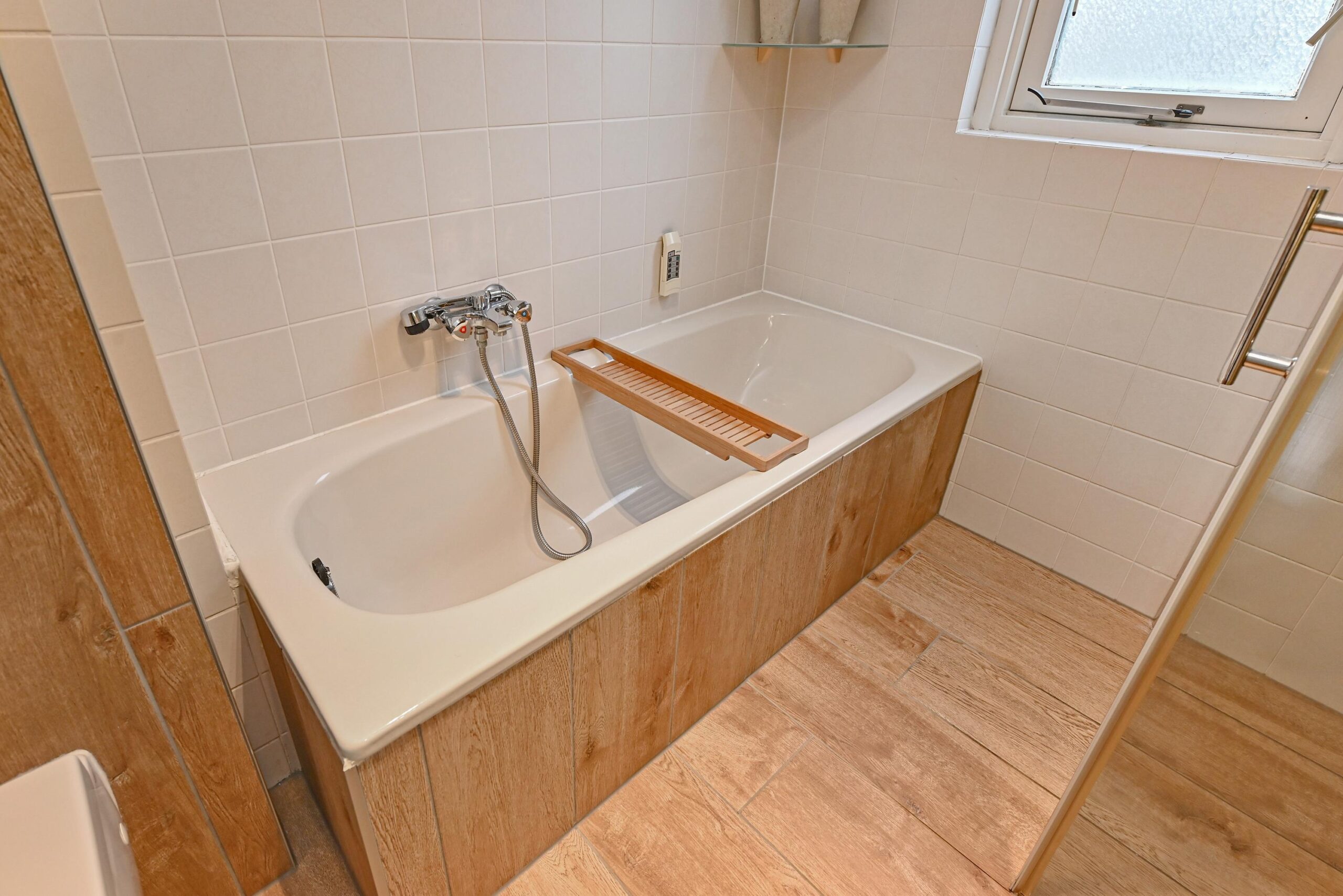 De Op de eerste verdieping geeft de overloop toegang tot drie slaapkamers van verschillende afmetingen, geschikt als slaap-, werk- of kinderkamer. De badkamer is compleet uitgerust met een ligbad, aparte douche, tweede toilet en een wastafelmeubel – alles wat je nodig hebt voor een comfortabel eigen Thermen.