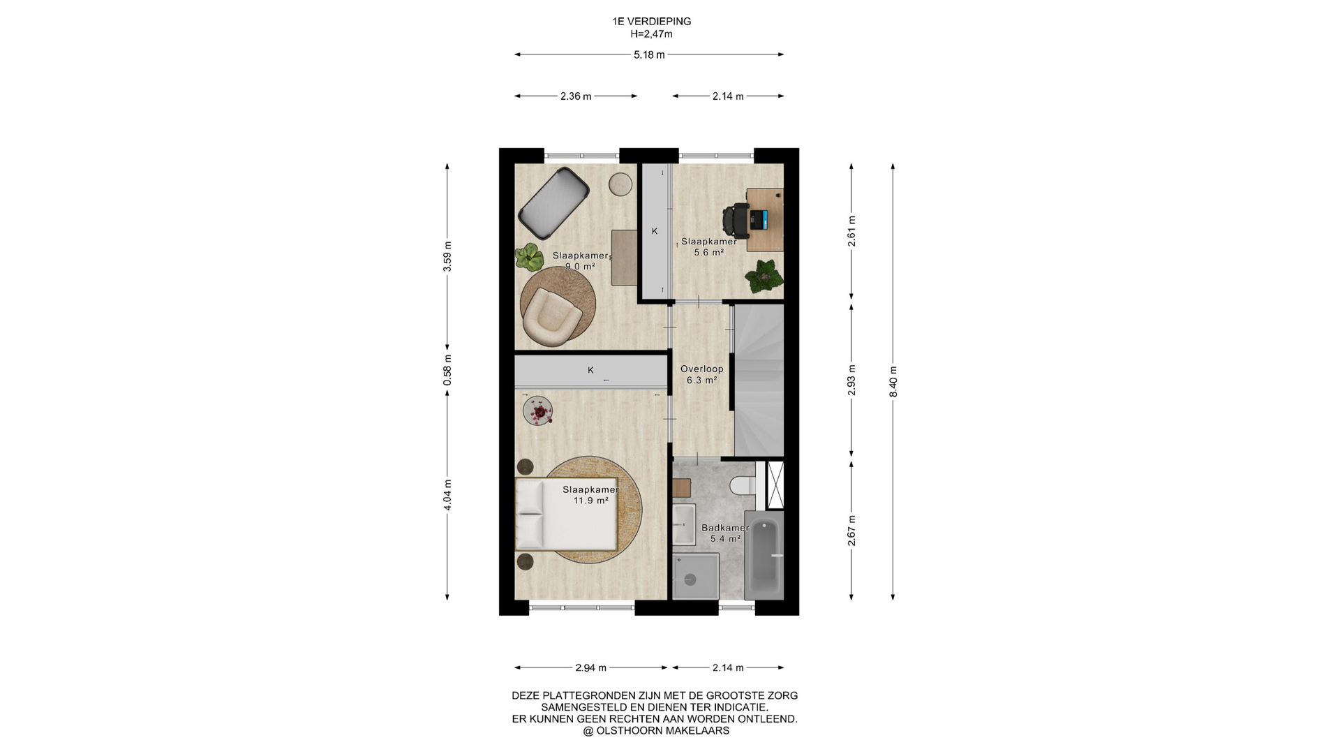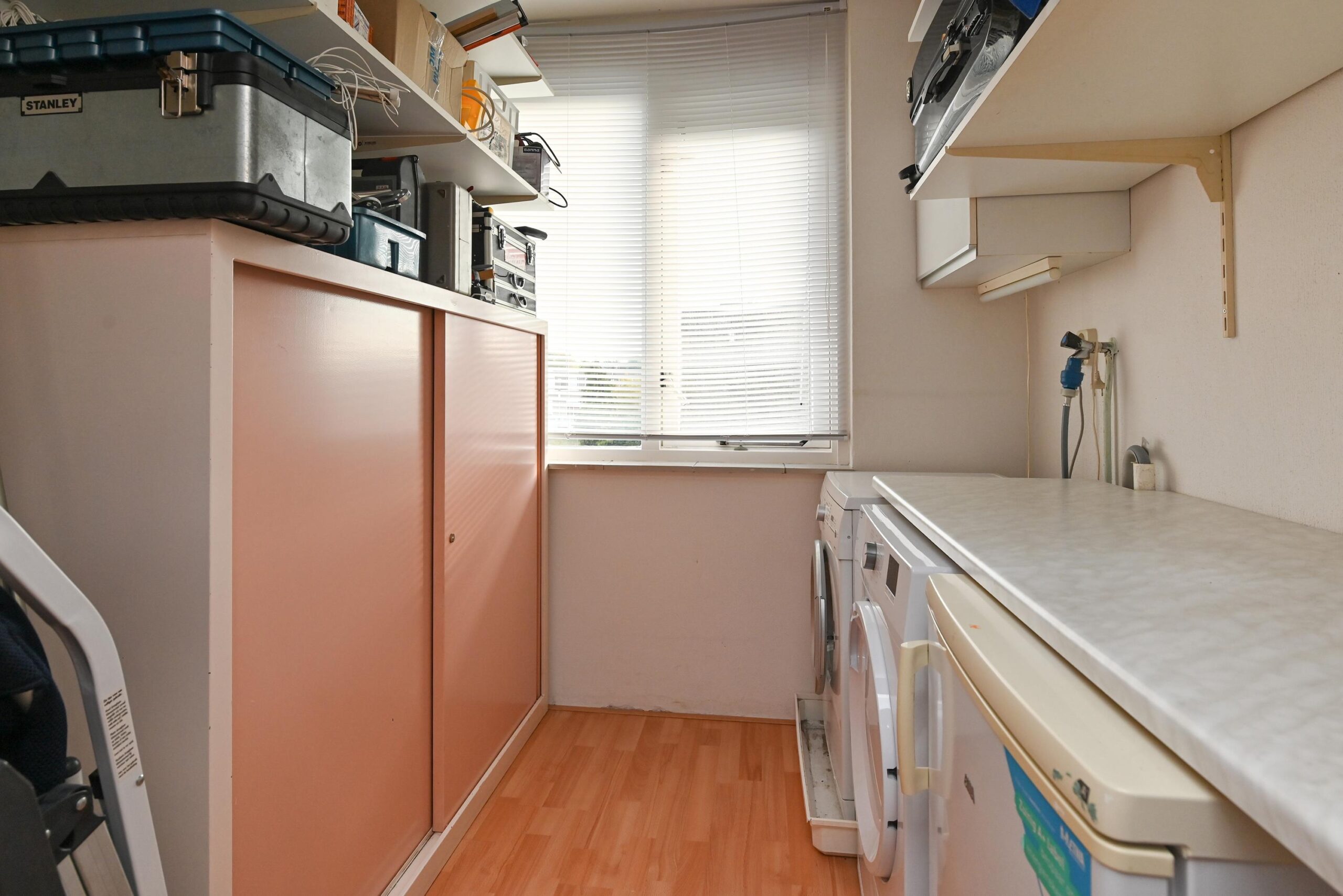 De tweede verdieping is verrassend ruim. Via de overloop heb je toegang tot nog twee slaapkamers én het balkon aan de voorzijde – een fijne plek om even buiten te zitten. Daarnaast is er een praktische wasruimte met plek voor de wasmachine en extra bergruimte.