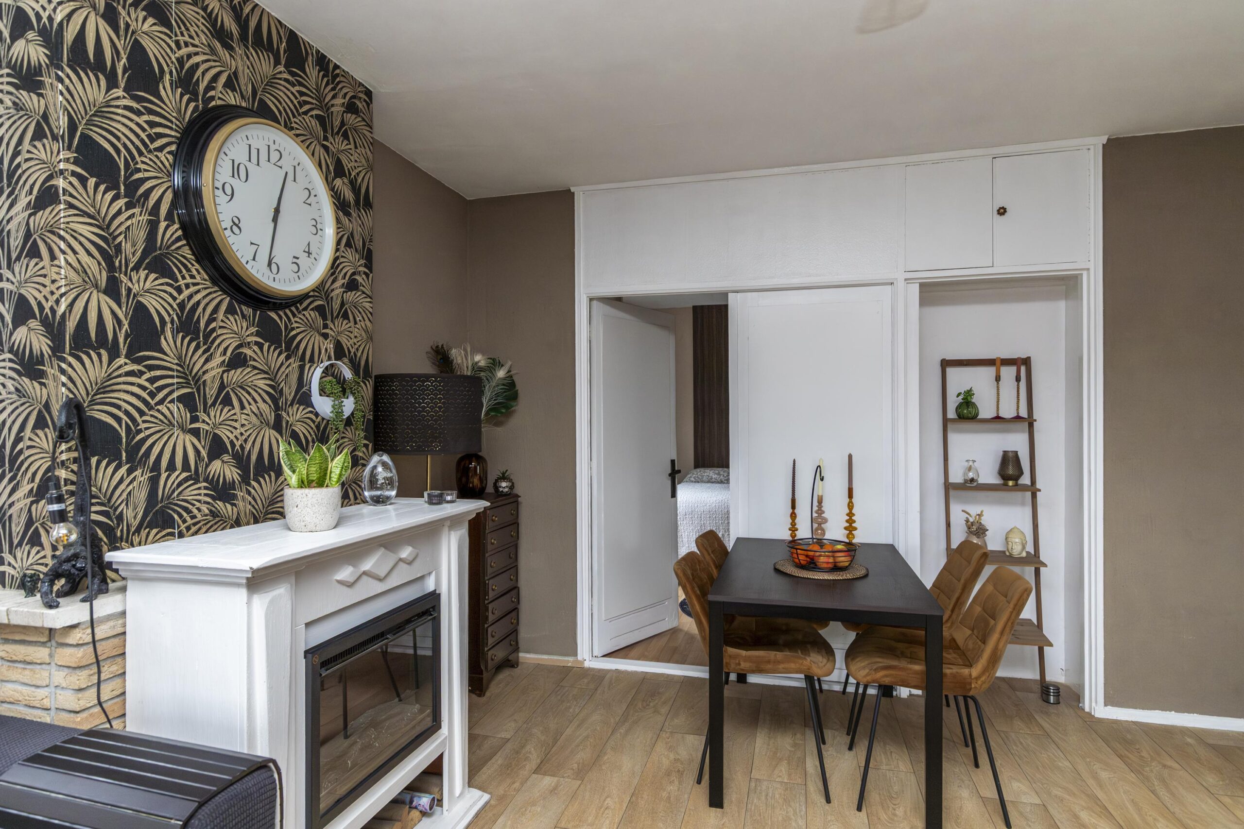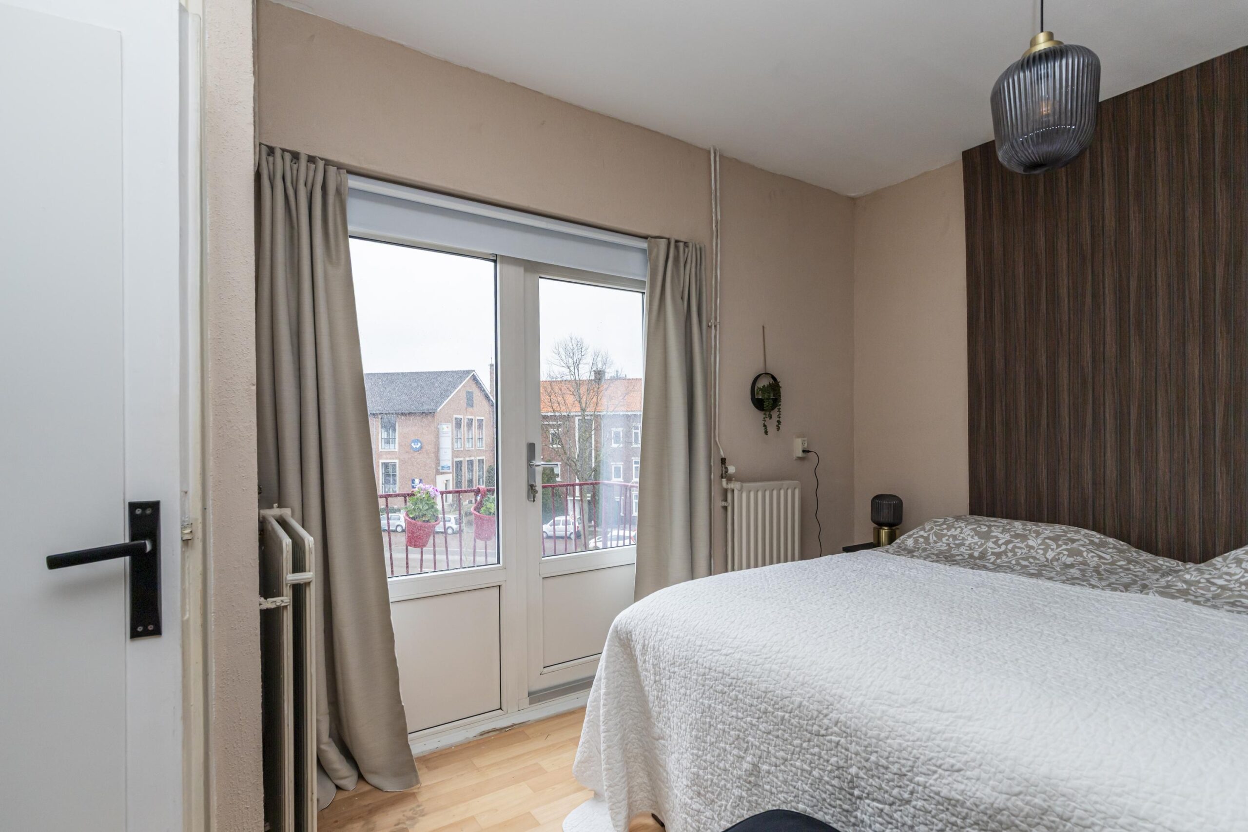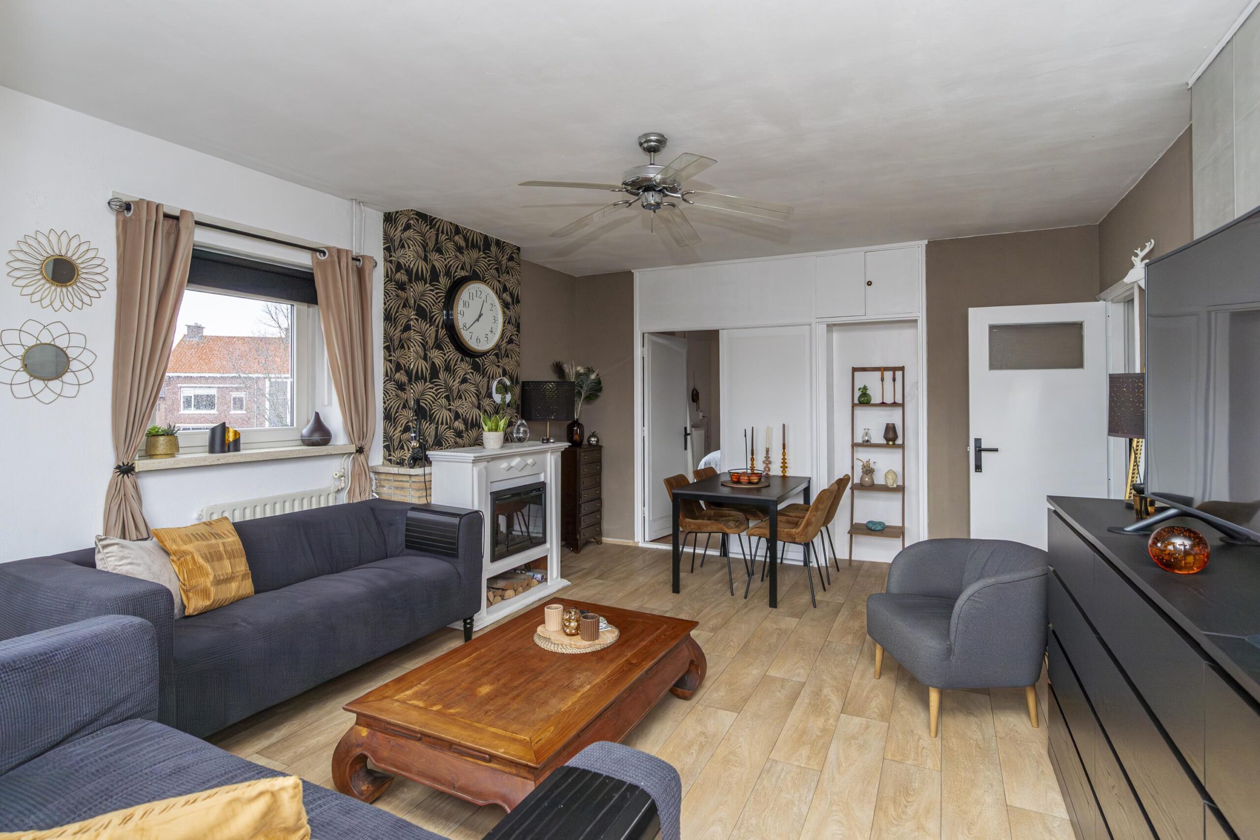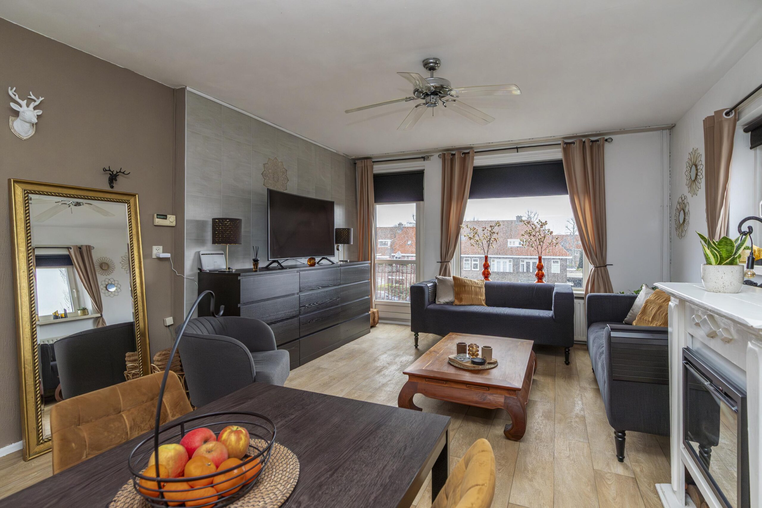 De woonkamer bevindt zich aan de voorzijde van de woning en is ruim van opzet met voldoende plaats voor zowel een comfortabele zithoek als een eettafel. De grote raampartijen zorgen voor een prettige lichtinval. Vanuit de woonkamer is tevens een balkon bereikbaar.