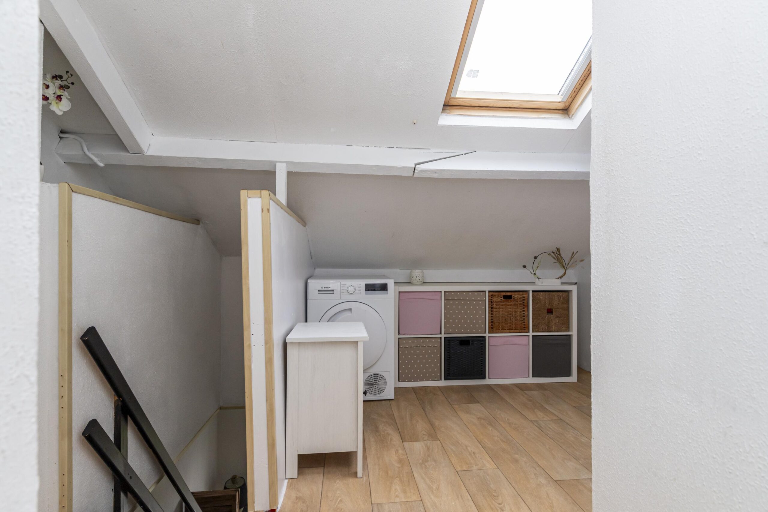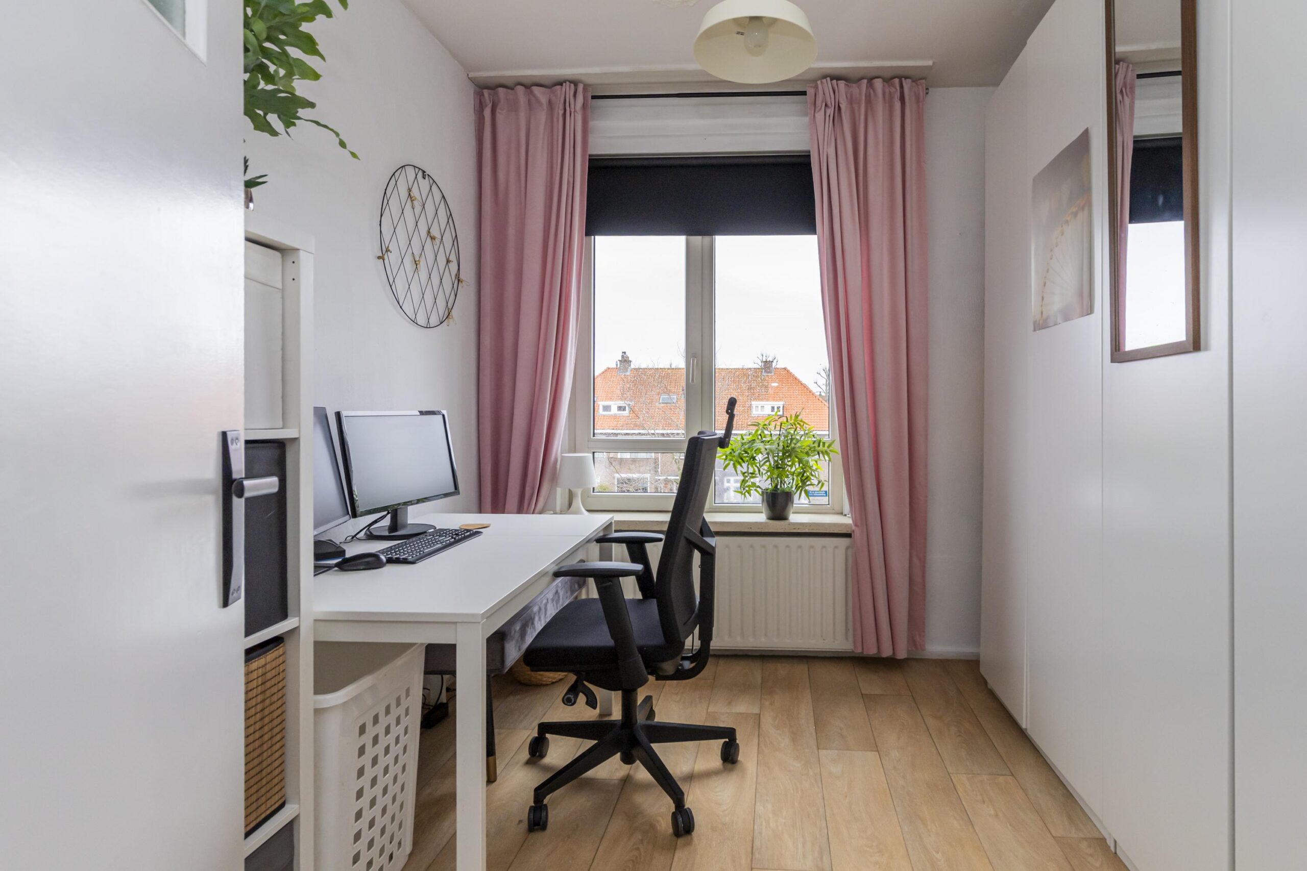De keuken ligt aan de achterzijde van de woning en is praktisch ingericht. Vanuit hier is er toegang tot een tweede balkon. Op deze verdieping bevinden zich daarnaast twee slaapkamers, een hobbykamer, een badkamer en een separaat toilet. De ruime slaapkamer aan de achterzijde beschikt eveneens over een eigen balkon, wat zorgt voor extra licht en een prettige verbinding met buiten.