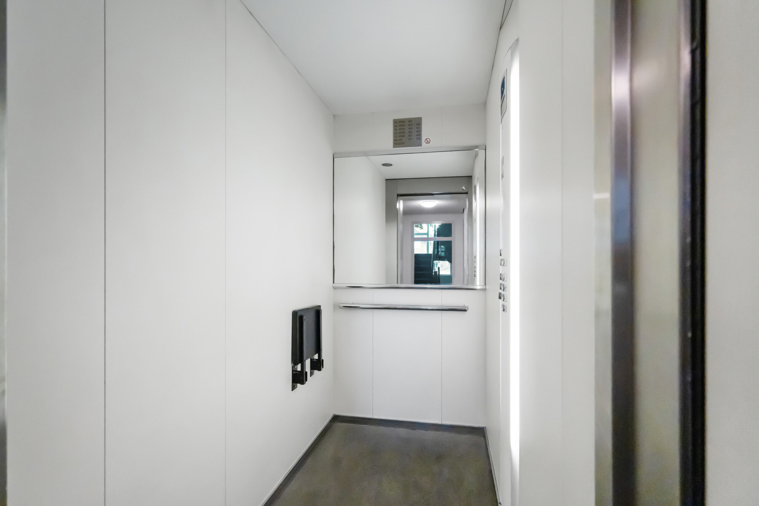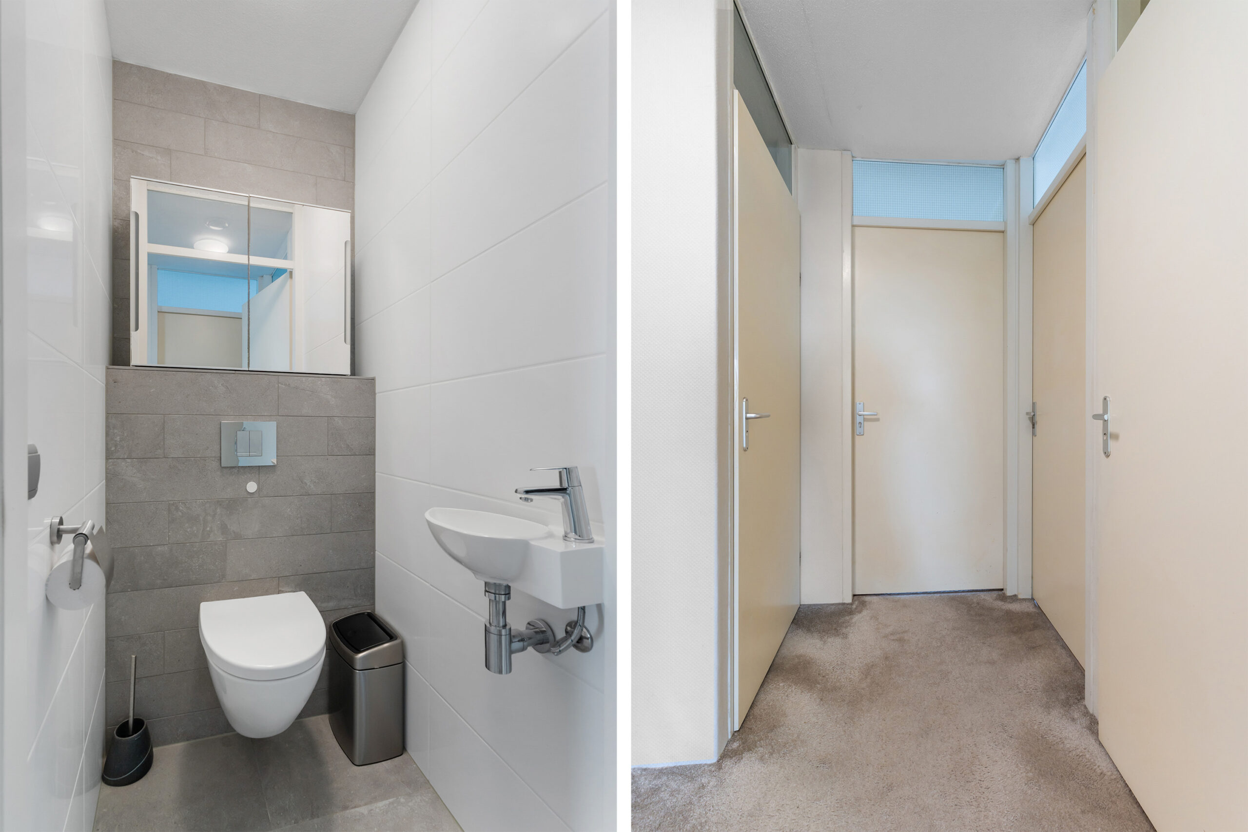De woning is bereikbaar via een verzorgd bellenplateau. Met de lift (of trap) ga je naar de vierde verdieping, waar je via de ruime hal alle vertrekken kunt bereiken.