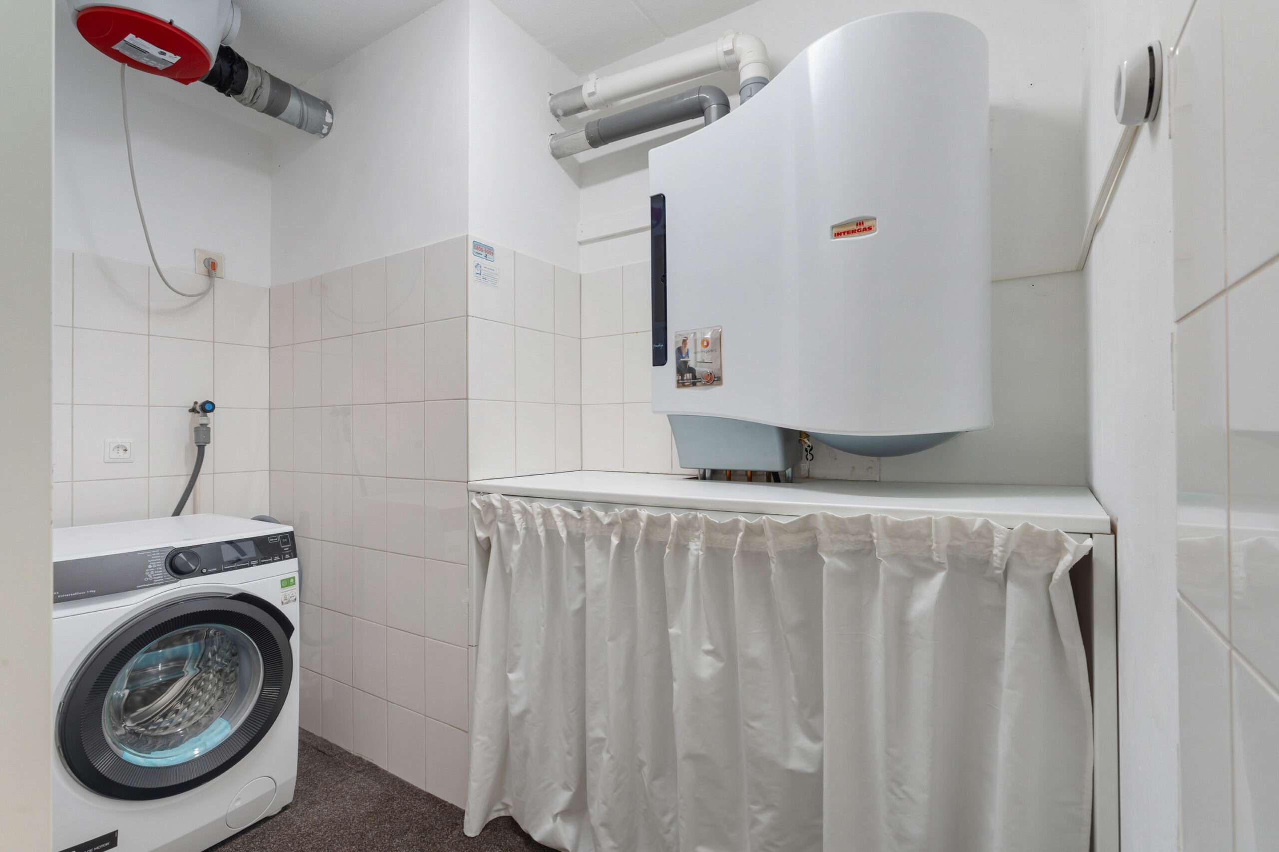 Daarnaast is er een praktisch washok met aansluitingen voor wasmachine en droger, waar ook de cv-ketel is ondergebracht.
