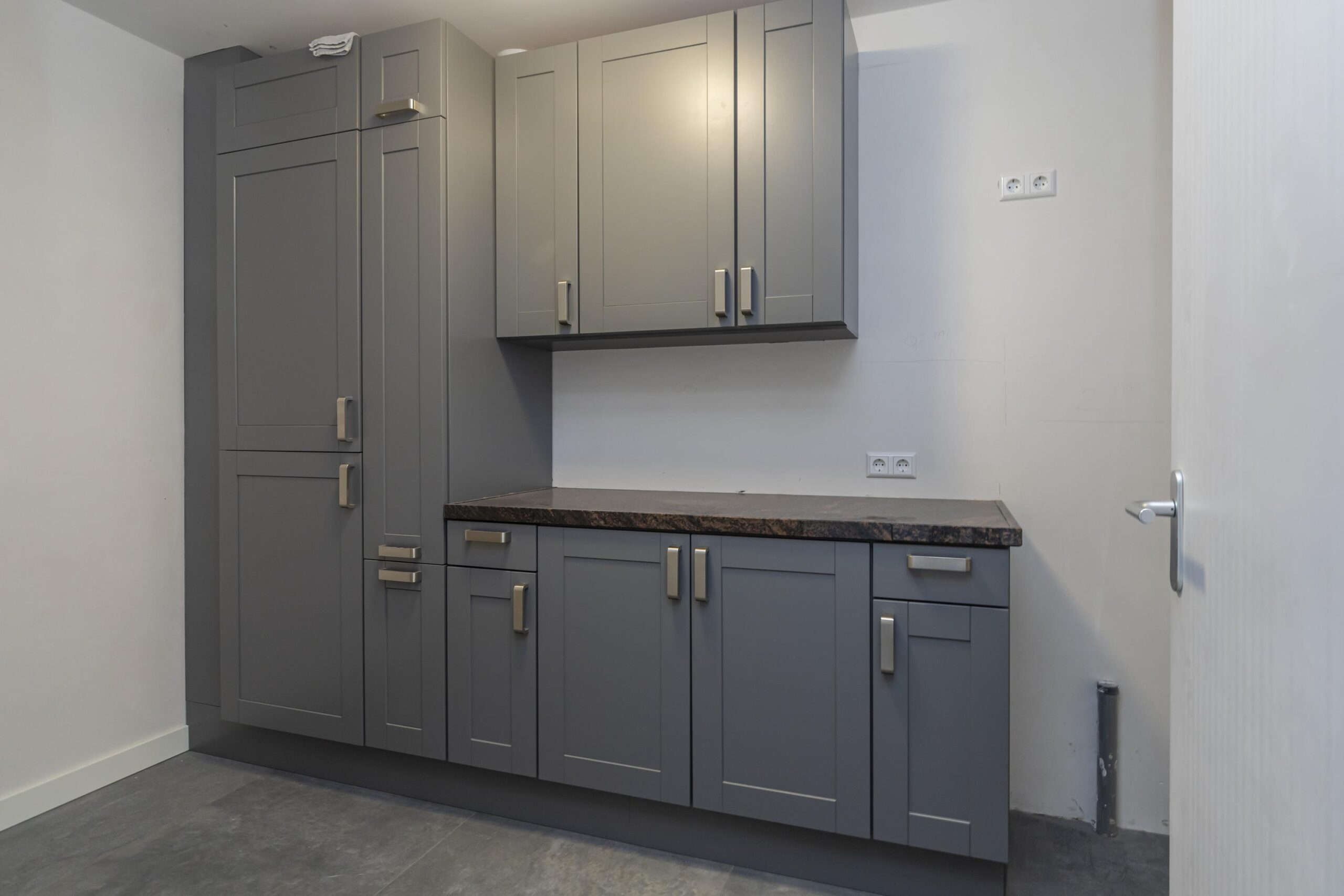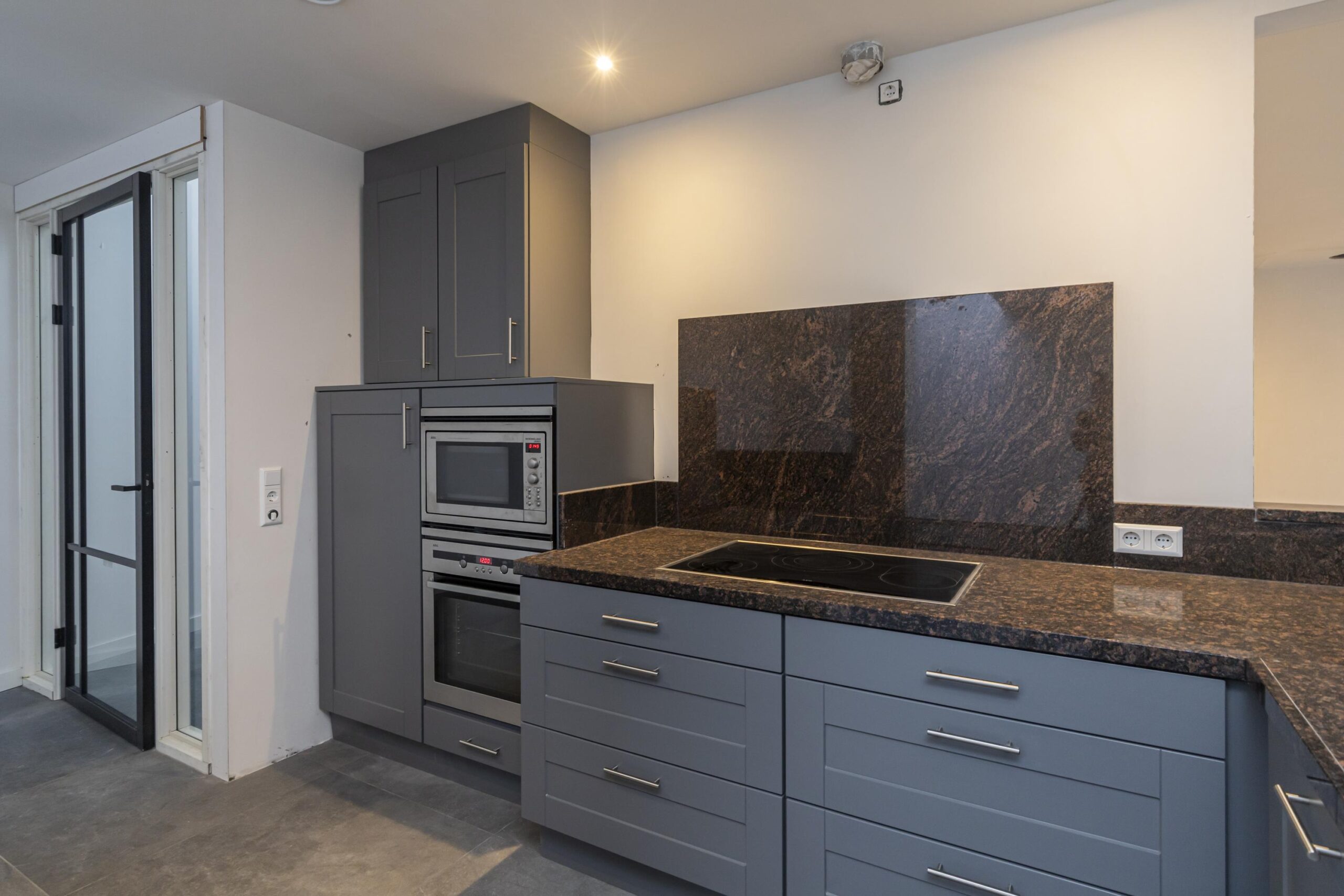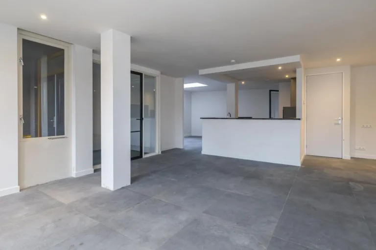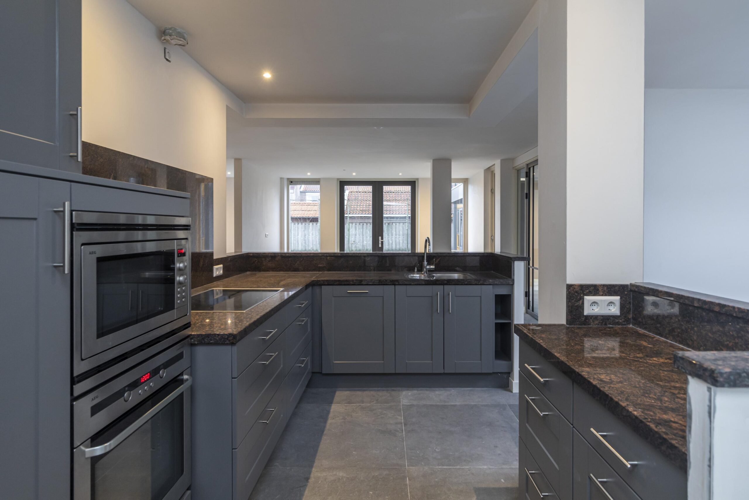 Het ruime woonhuis is ontworpen met licht, comfort en functionaliteit in gedachten. De begane grond is voorzien van vloerverwarming en biedt een lichte, open keuken met een stijlvolle afwerking, een marmeren aanrechtblad en moderne inbouwapparatuur. De aangrenzende bijkeuken biedt extra opslagruimte, ideaal voor voorraad of materiaal. De royale living heeft openslaande deuren naar buiten, sfeervolle spotverlichting en talloze indelingsmogelijkheden.