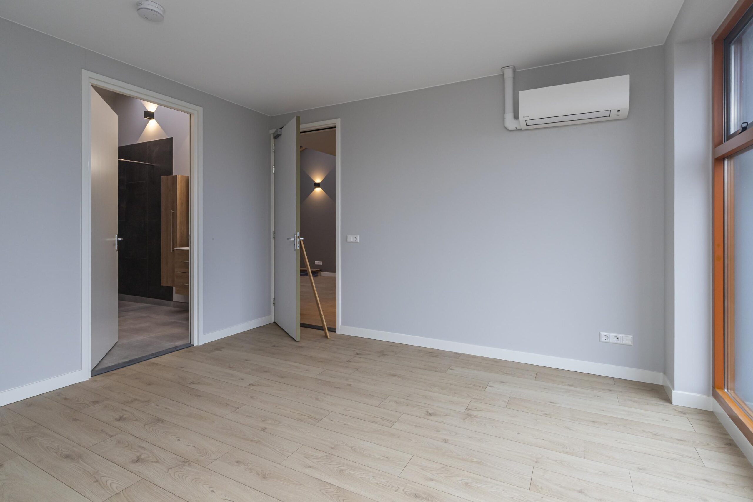 Op de eerste etage bevinden zich drie slaapkamers, elk met airconditioning, die tevens zorgt voor verwarming, en veel bergruimte. De master bedroom heeft een ruime inloopkast en toegang tot een dakterras. De badkamer is luxe afgewerkt en beschikt over een inloopdouche, met een infraroodfunctie voor verwarming en bruining, een ligbad, een brede wastafel en vloerverwarming.