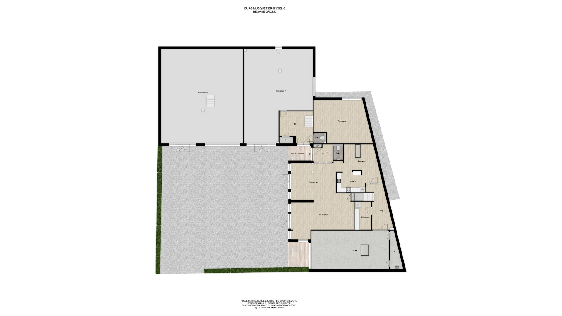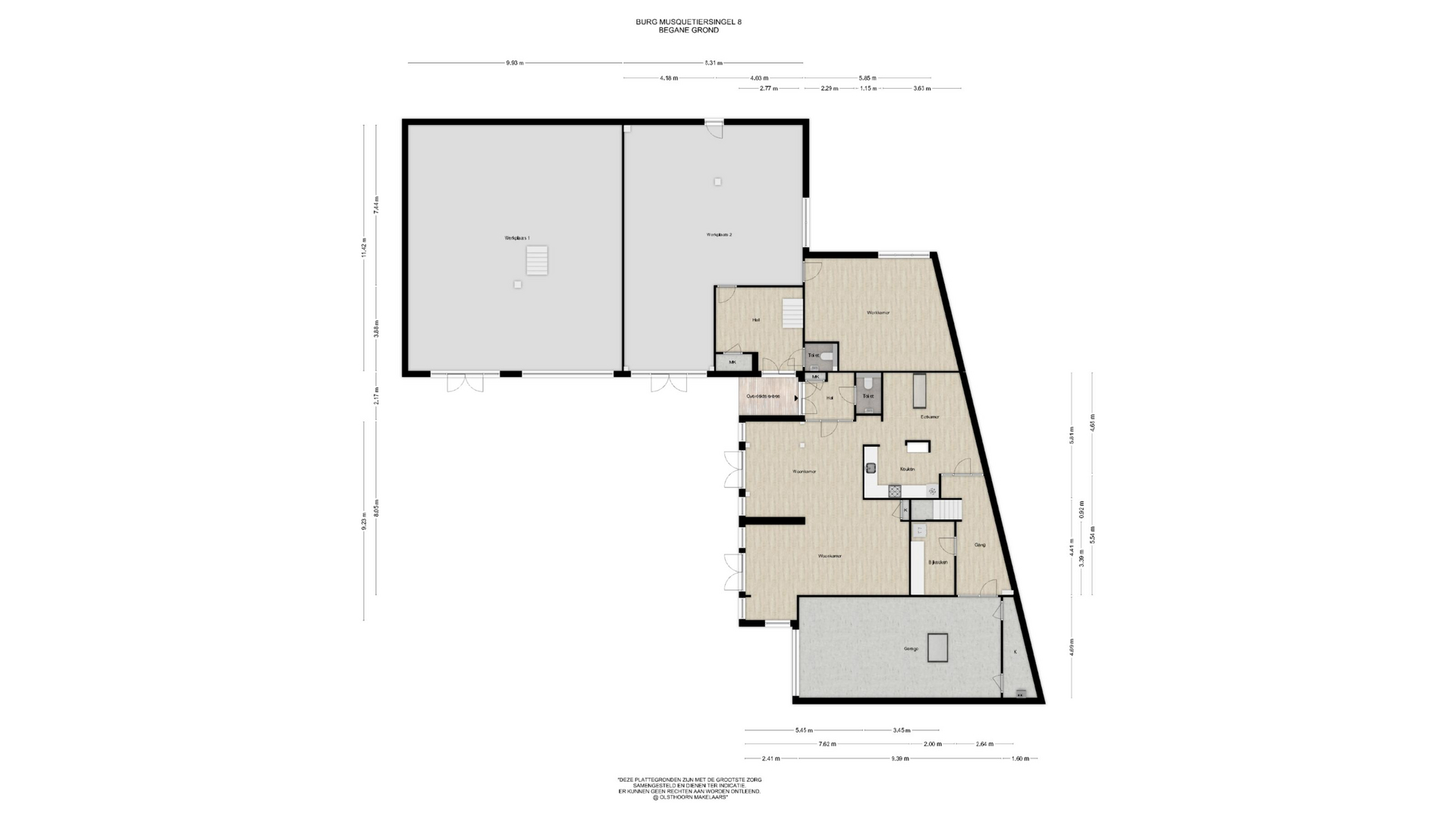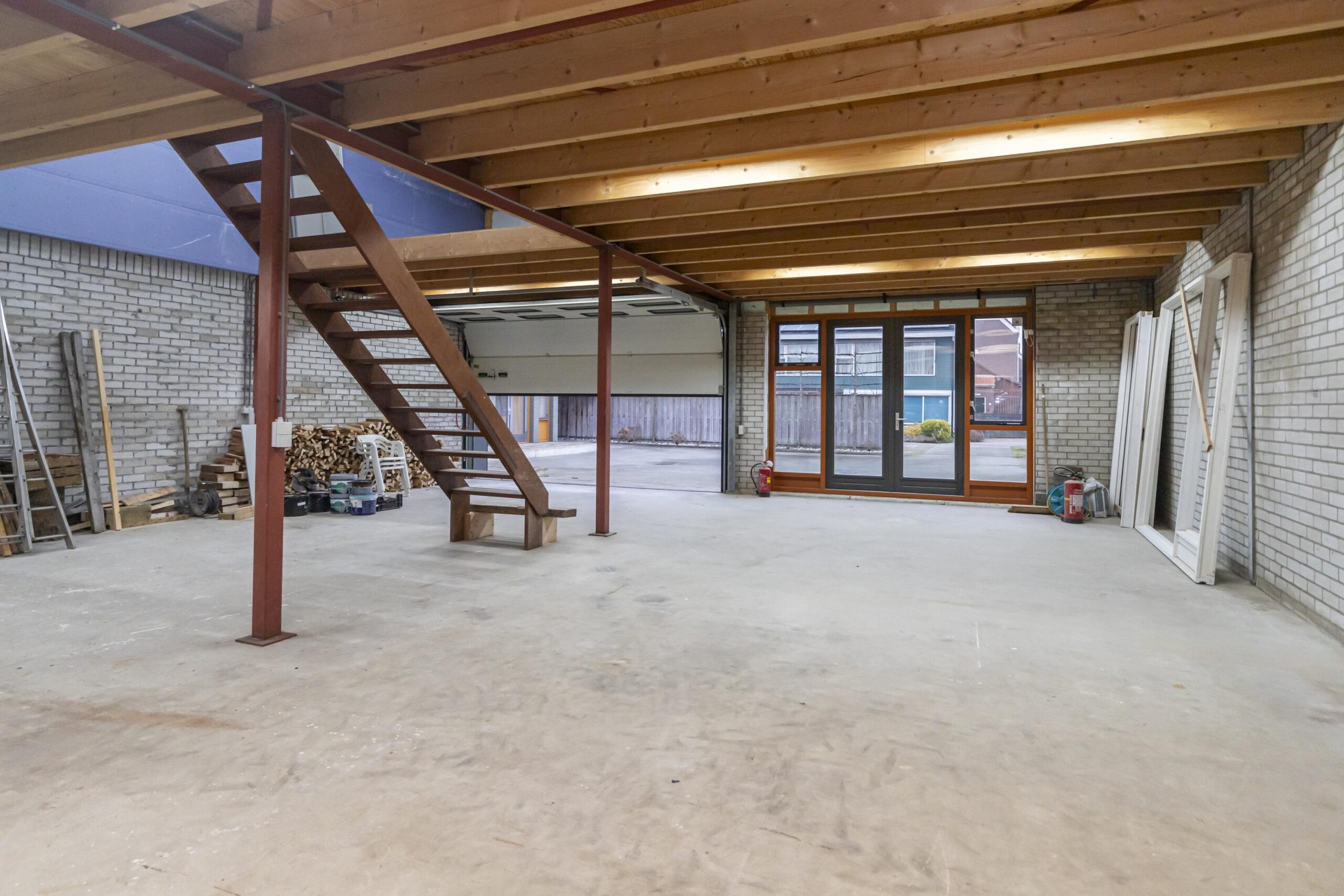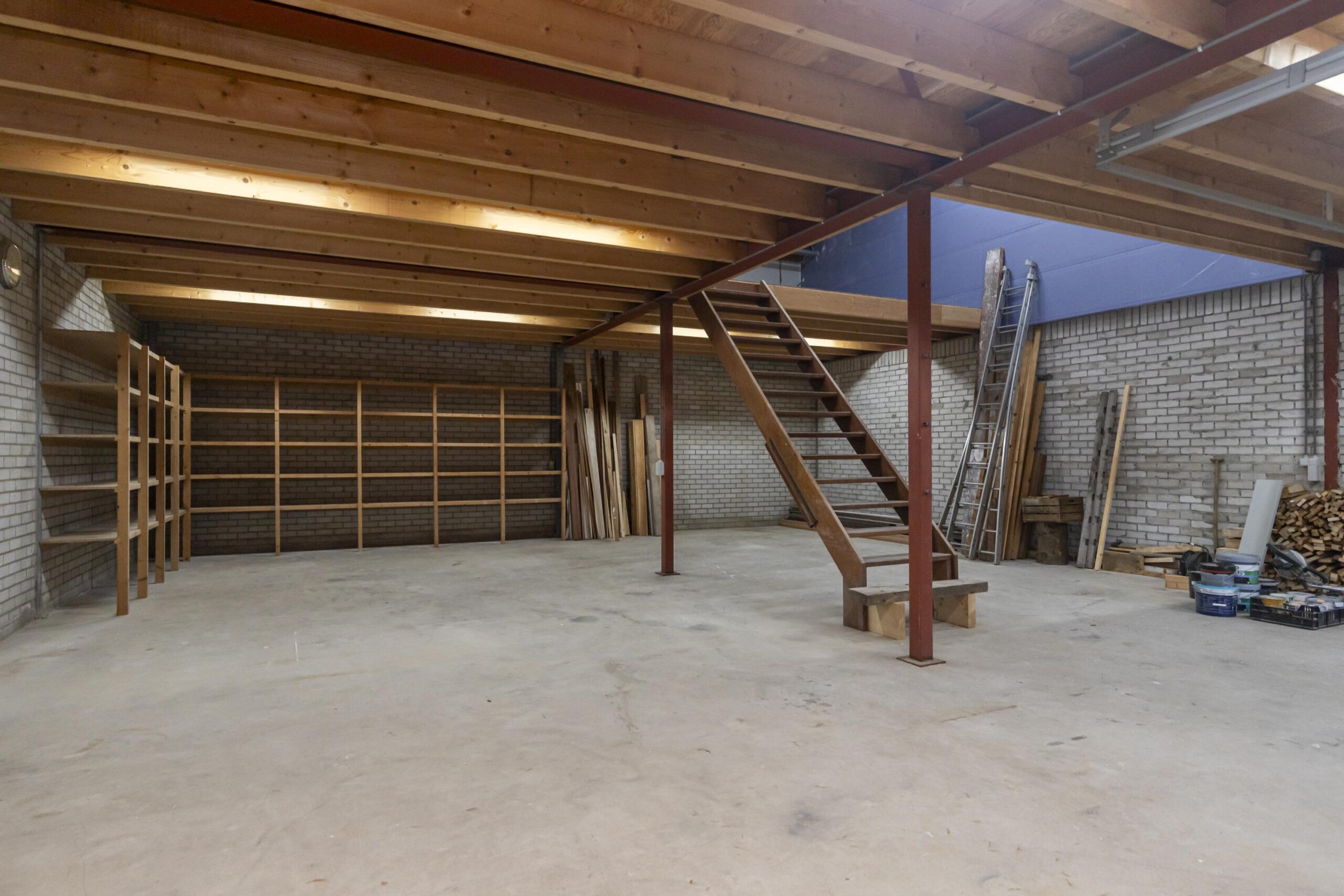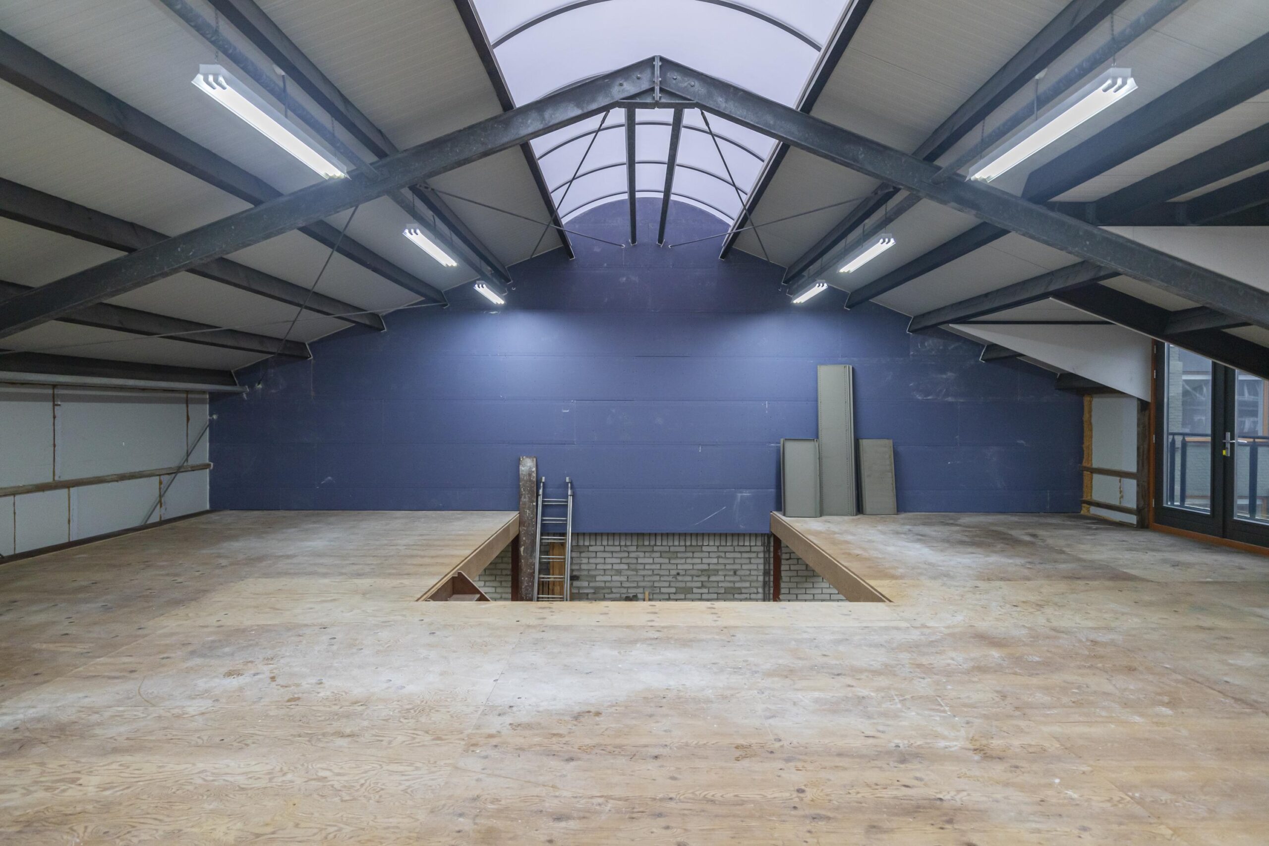 Daarnaast is er een tweede bedrijfsruimte met een overheaddeur, dubbele openslaande deuren, een lichte vide en een open trap naar boven. Beneden vinden we een enorme ruimte van maar liefst 113,4 m2 en de zolder heeft ook nog eens een vloeroppervlak van 100 m2. Beide ruimtes bieden talloze mogelijkheden, van kantoor tot werkplaats.