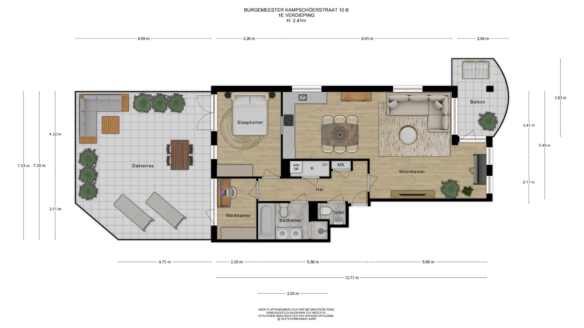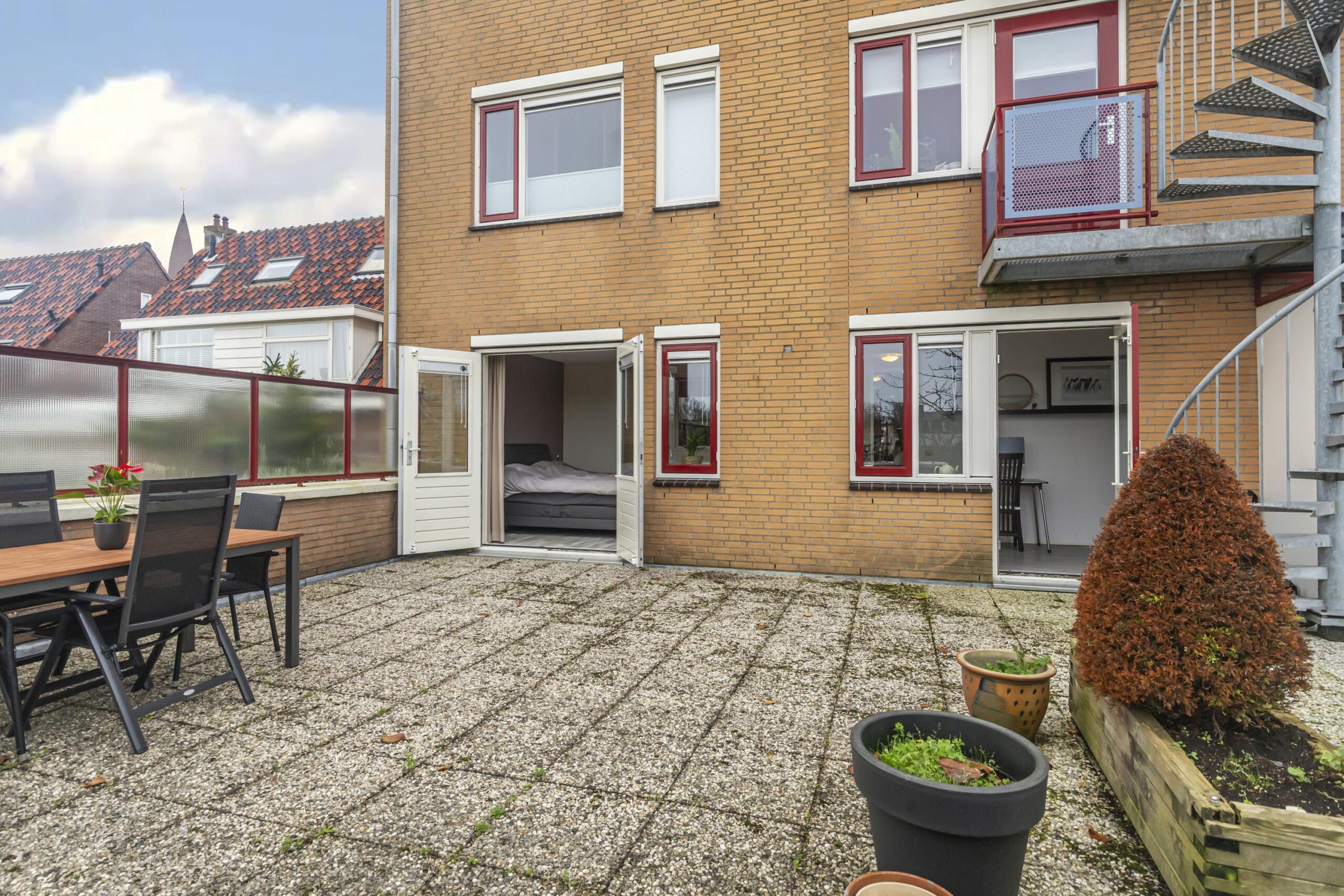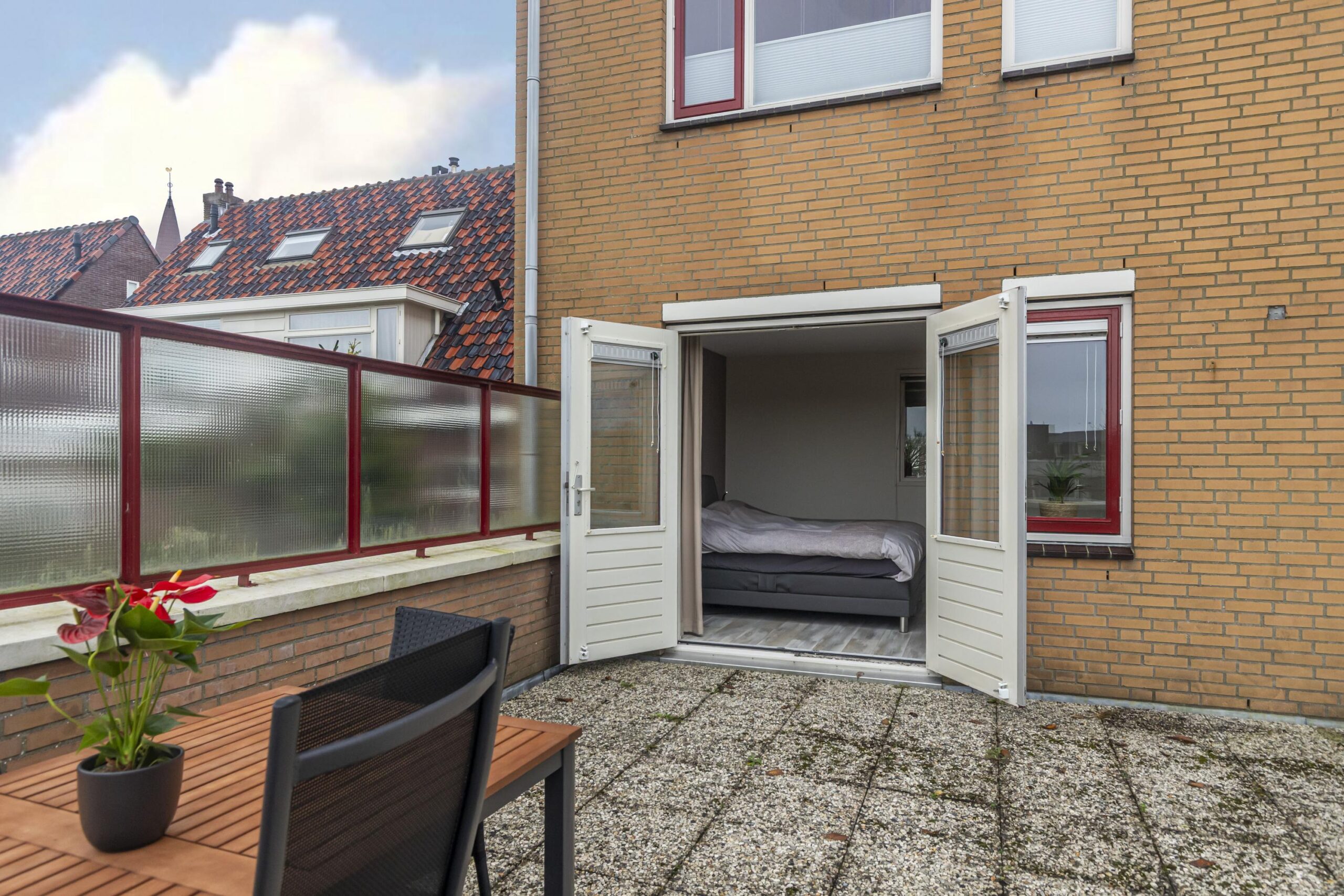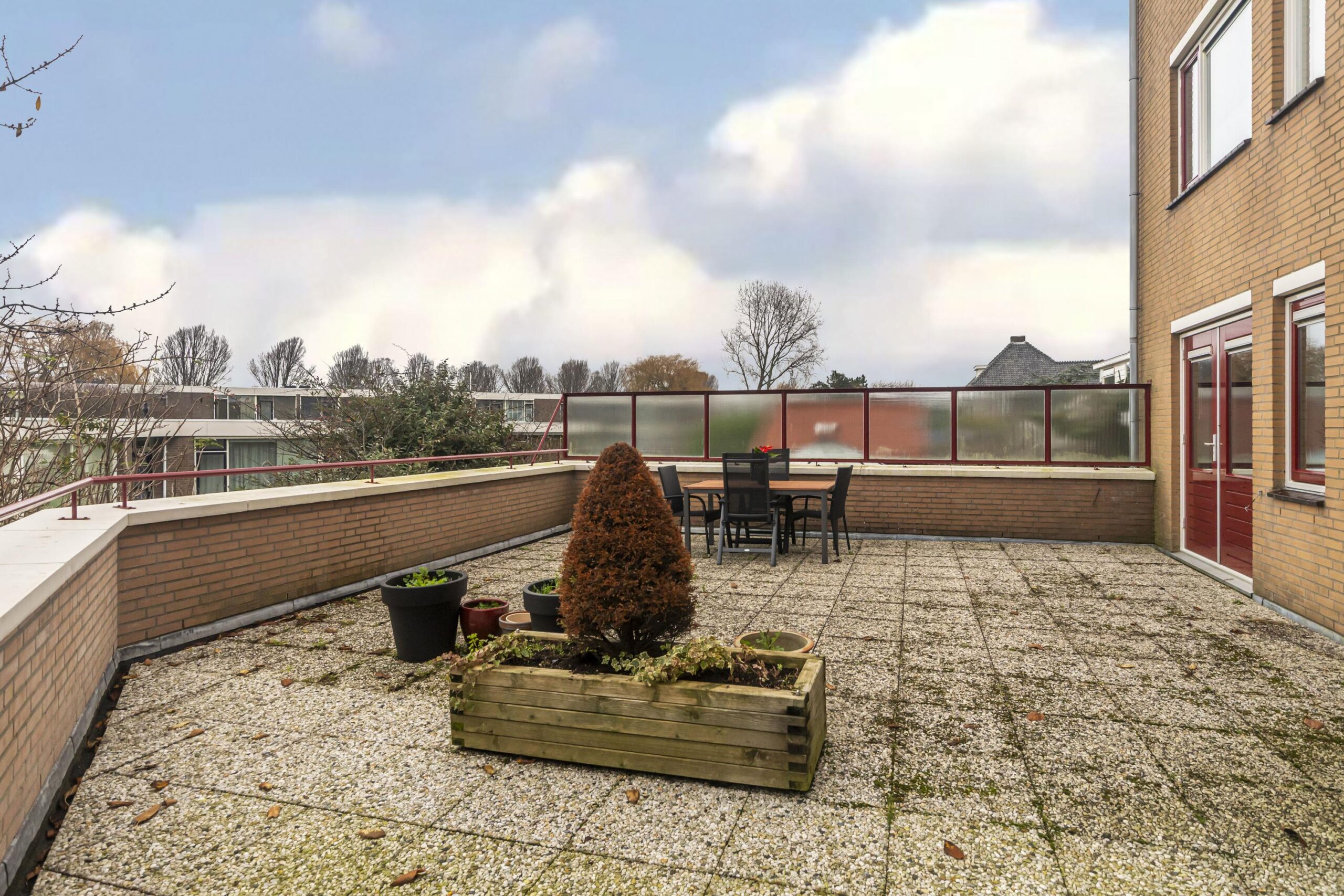 De buitenruimte is een sterk punt van dit appartement. Het balkon aan de voorzijde kijkt vrij weg over de straat, het dakterras aan de achterzijde is een heerlijke plek om buiten te leven in alle seizoenen. Dankzij de ligging in het dorpshart zijn dagelijkse voorzieningen en recreatie eenvoudig te bereiken.