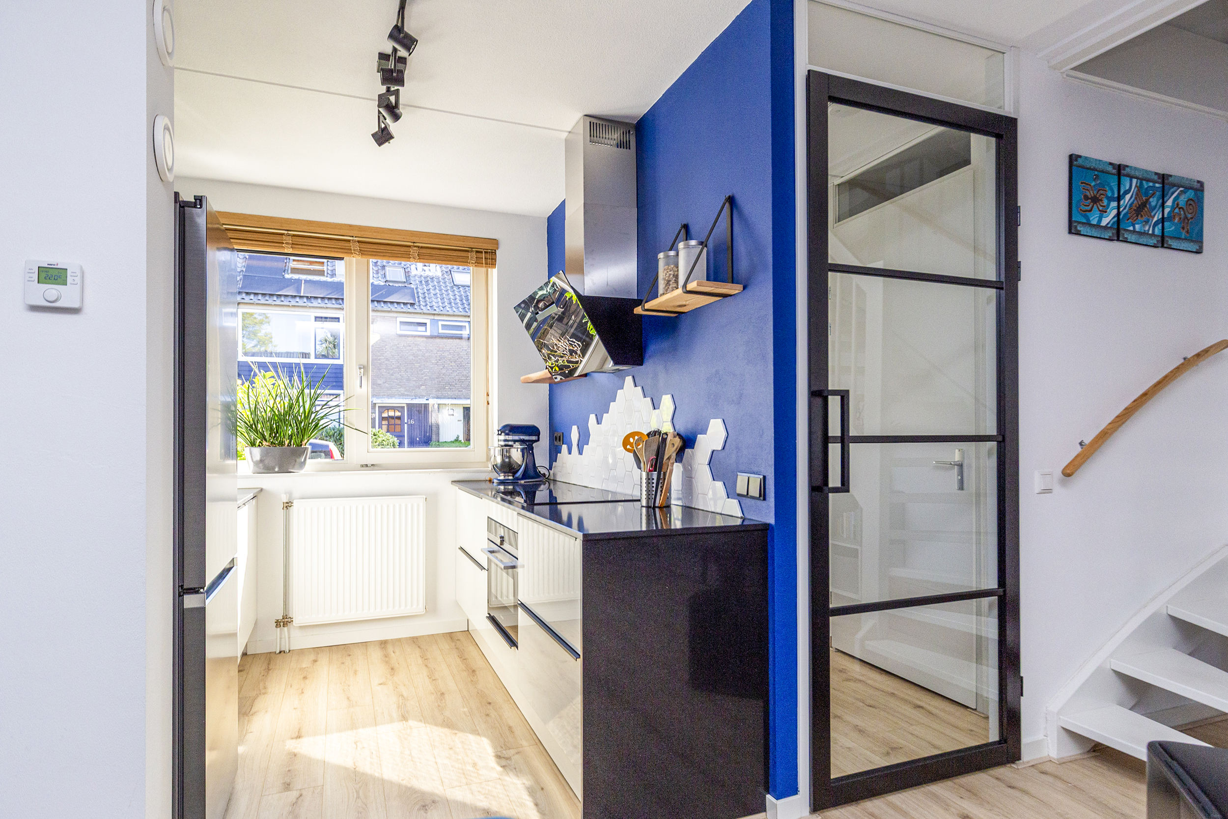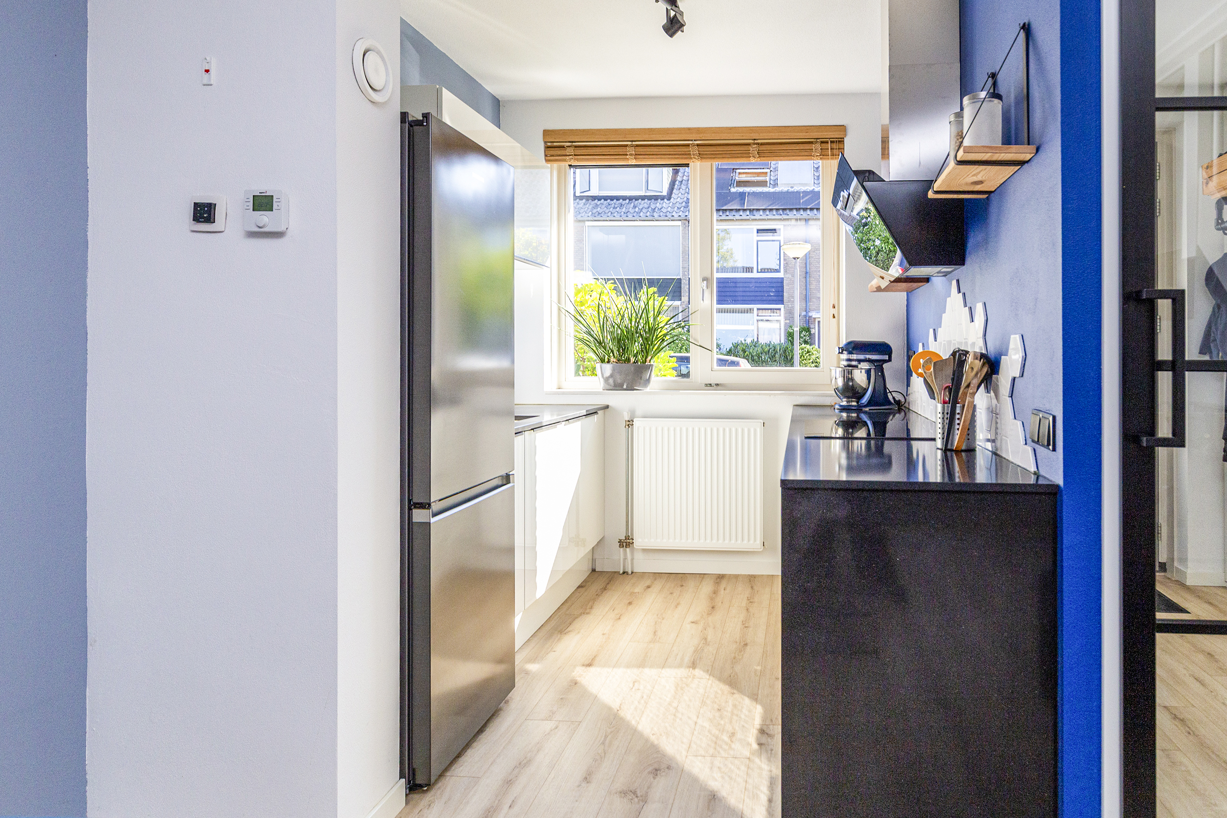 Via de voortuin bereikt u de entree. Hal met meterkast, modern toilet met fontein en een nette tochtdeur met glas, waardoor de hal licht en uitnodigend is. De woonkamer is tuingericht en heeft een brede trapopgang naar de eerste verdieping. Vanuit de woonkamer is er toegang tot de zonnige achtertuin op het westen, waar u vrijwel de hele middag en avond van de zon kunt genieten. De open keuken is aan de voorzijde gelegen en uitgerust met diverse inbouwapparatuur: een quooker, vaatwasser, 4-pits inductiekookplaat, afzuigkap, combimagnetron/-oven en koel-/vriescombinatie. De tuin beschikt over een achterom en een berging buiten de tuin, voorzien van elektra.