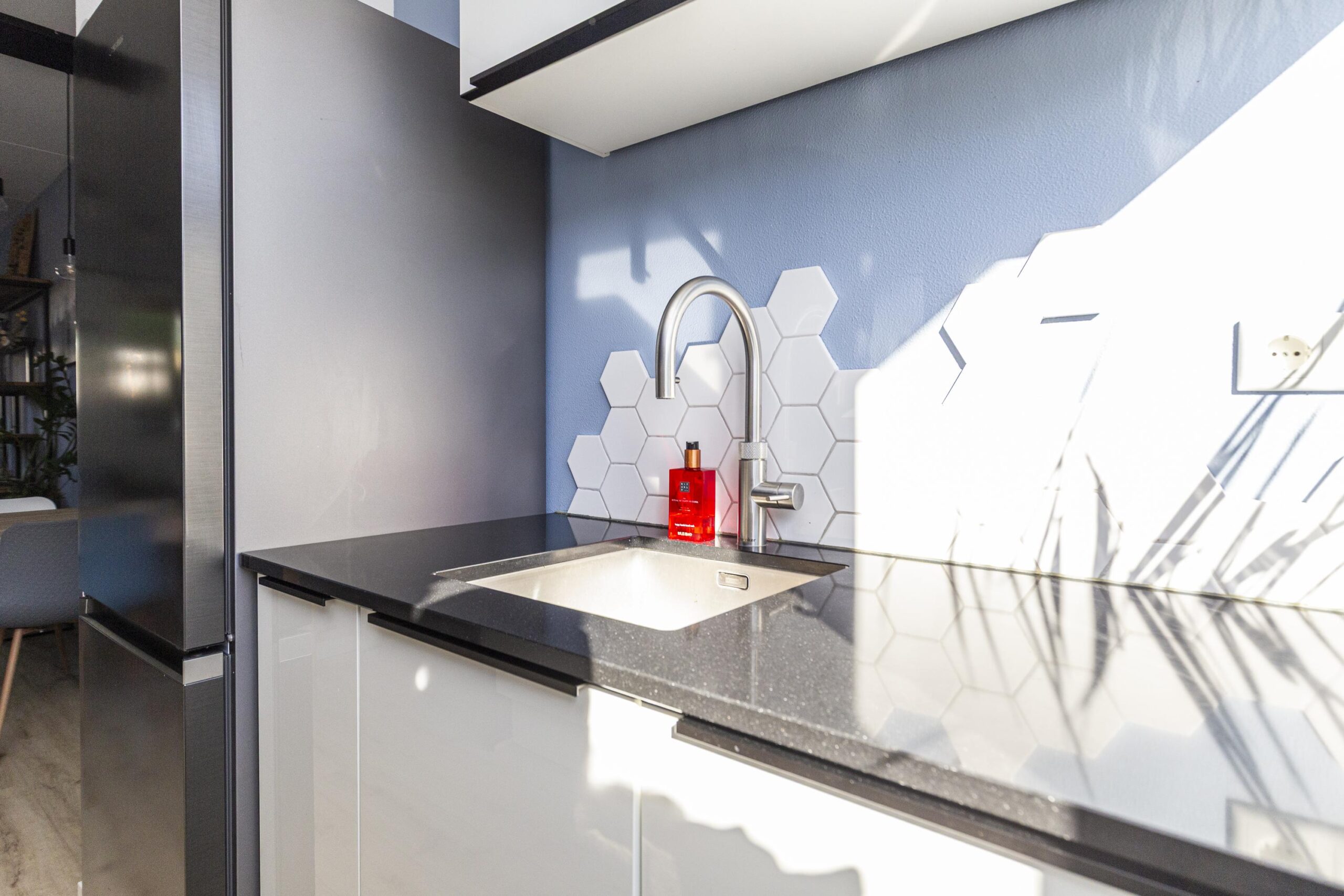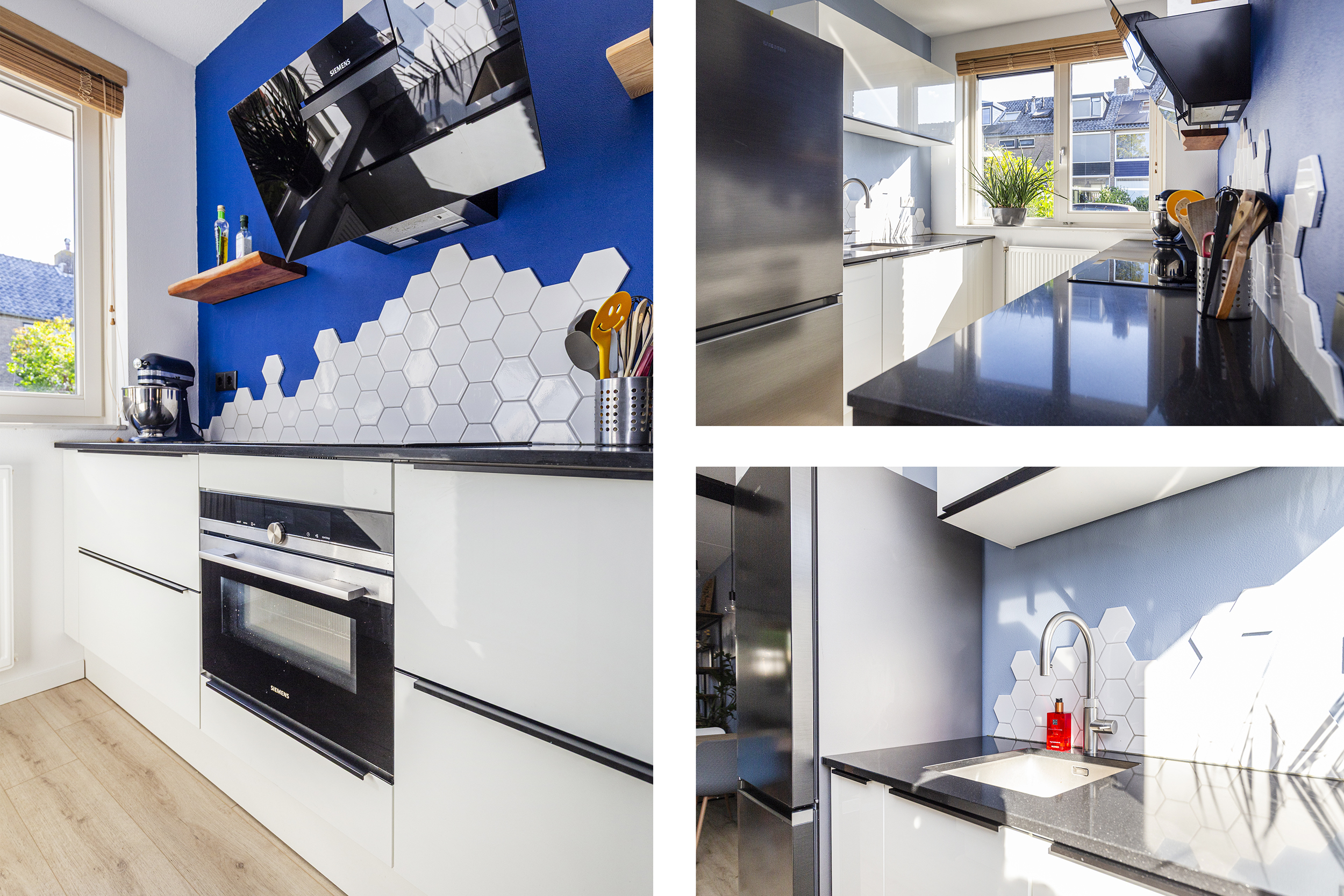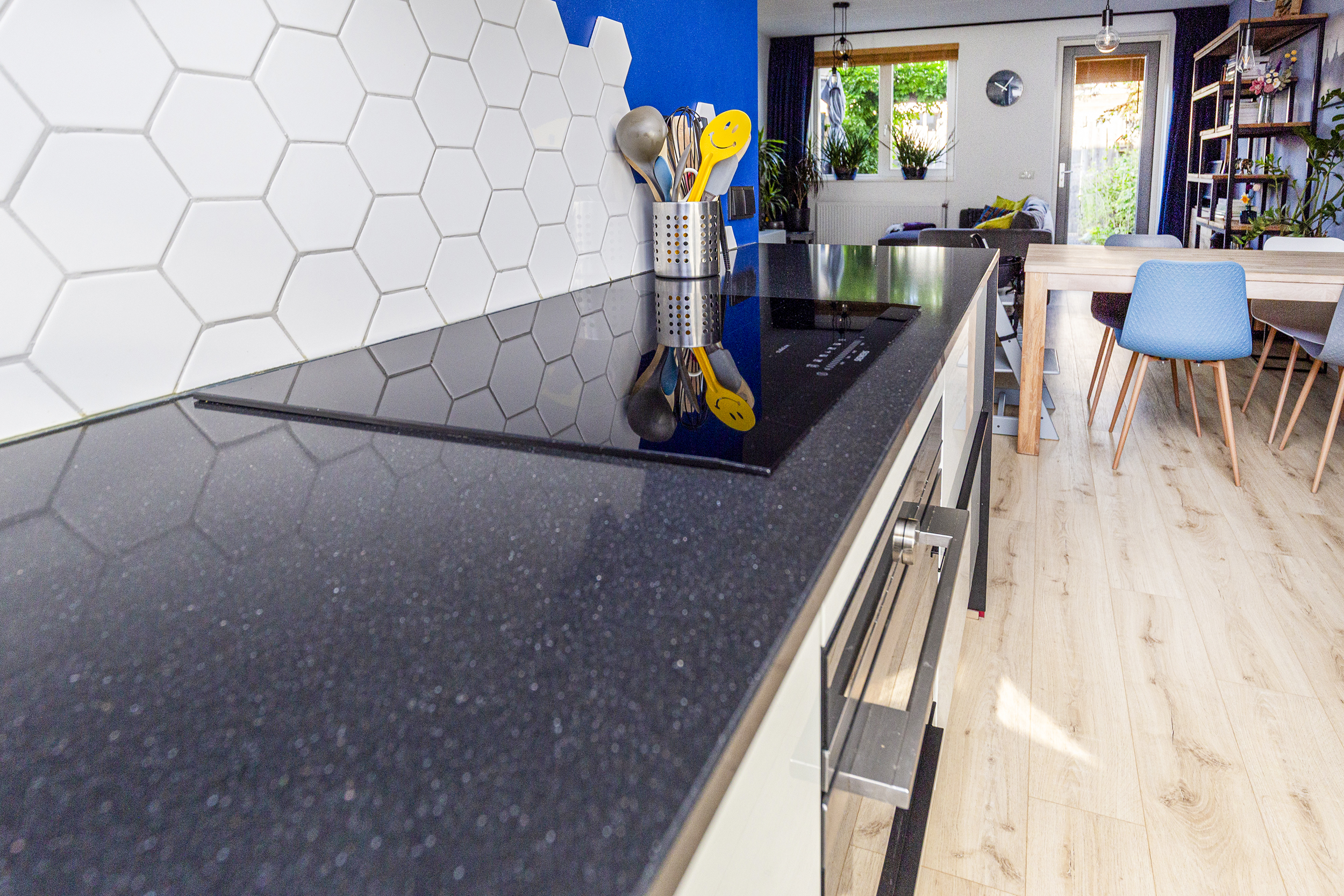 + Moderne open keuken met inbouwapparatuur, waaronder quooker en inductiekookplaat;