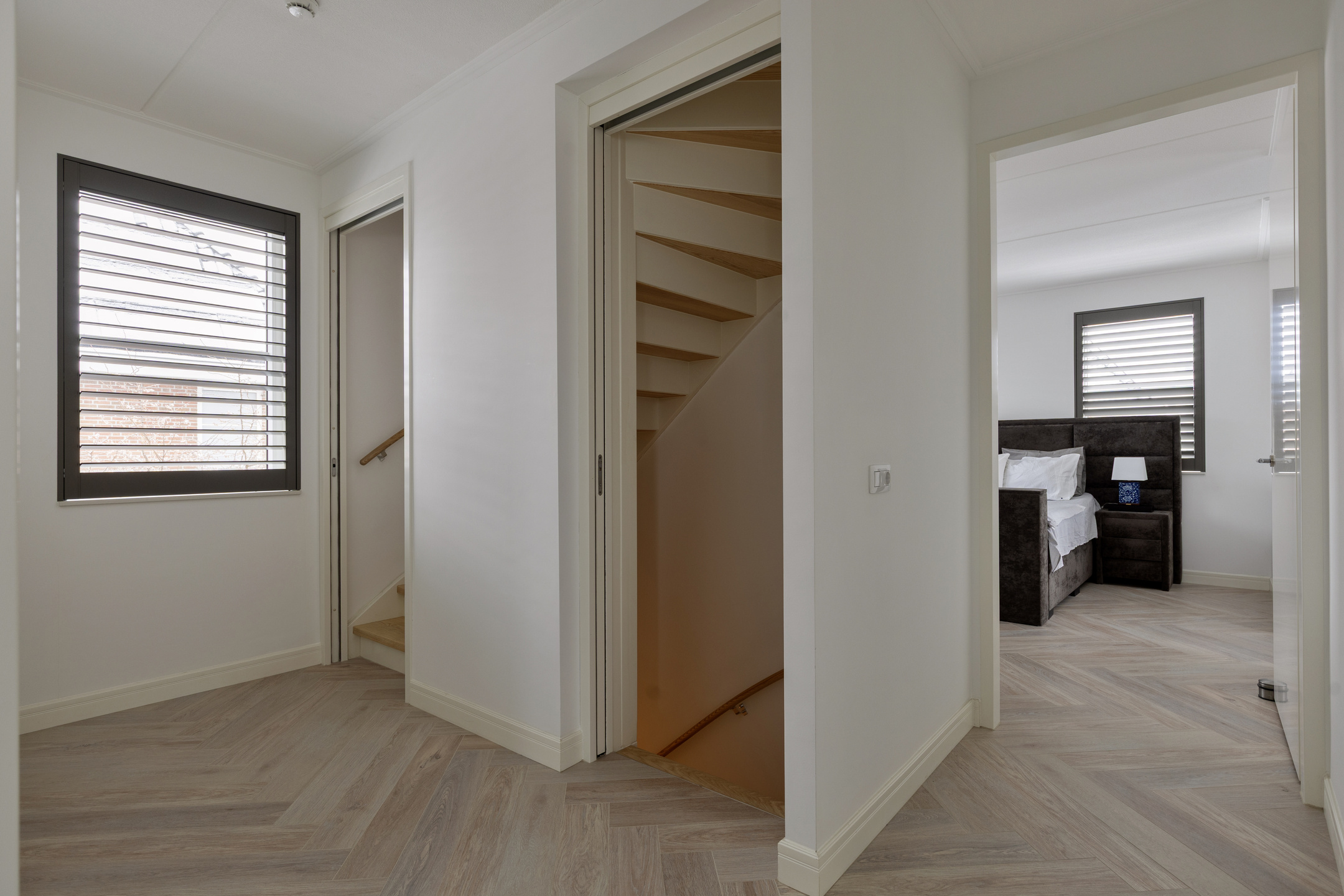 De eerste verdieping is goed ingedeeld en biedt drie ruime slaapkamers. De hoofdslaapkamer beschikt over een riante inloopkast – een comfortabele en praktische toevoeging voor wie graag alles overzichtelijk opbergt. De twee andere slaapkamers zijn eveneens ruim van formaat en goed te gebruiken als kinder-, werk- of logeerkamer.