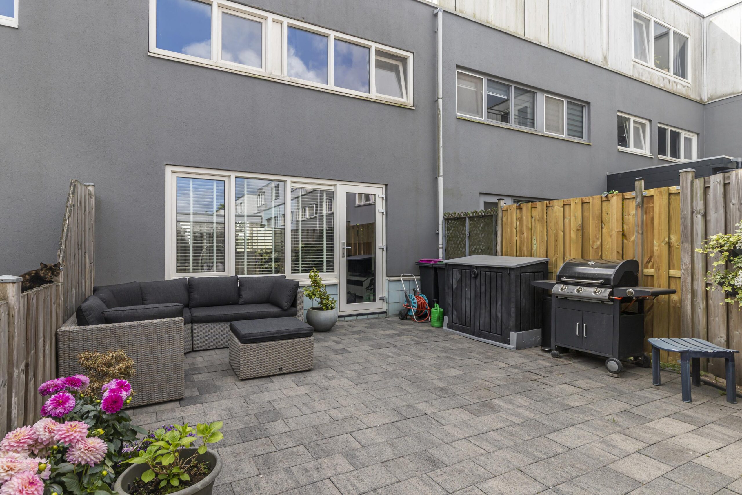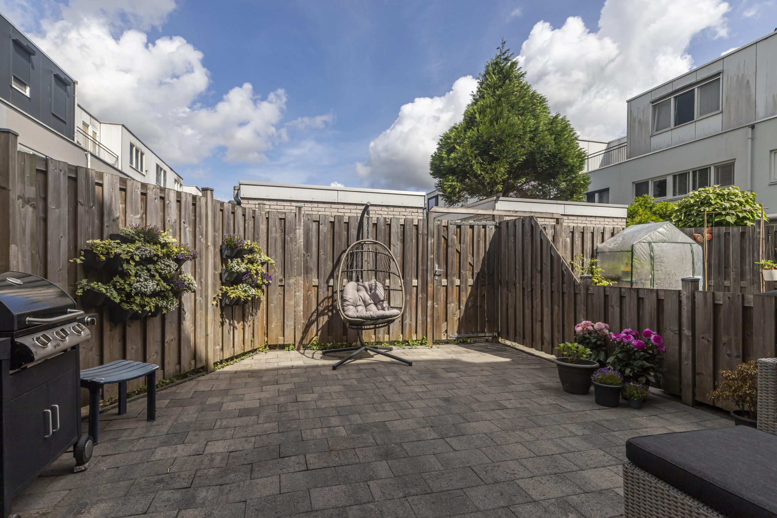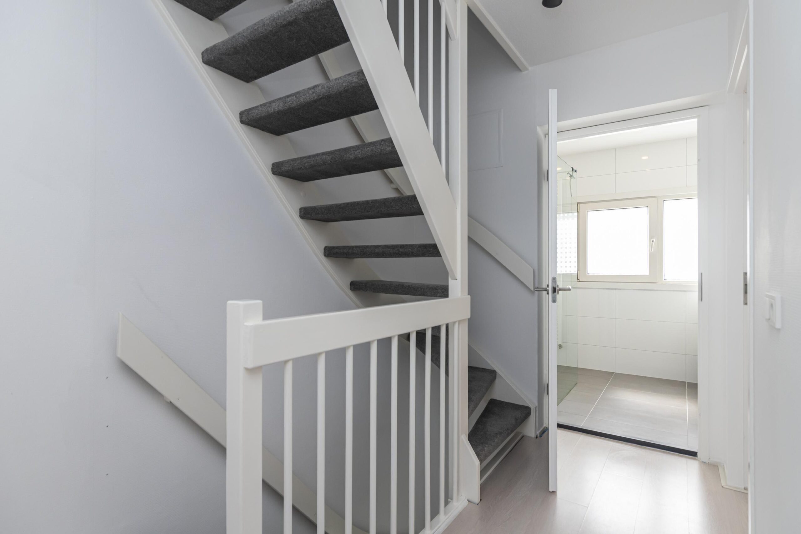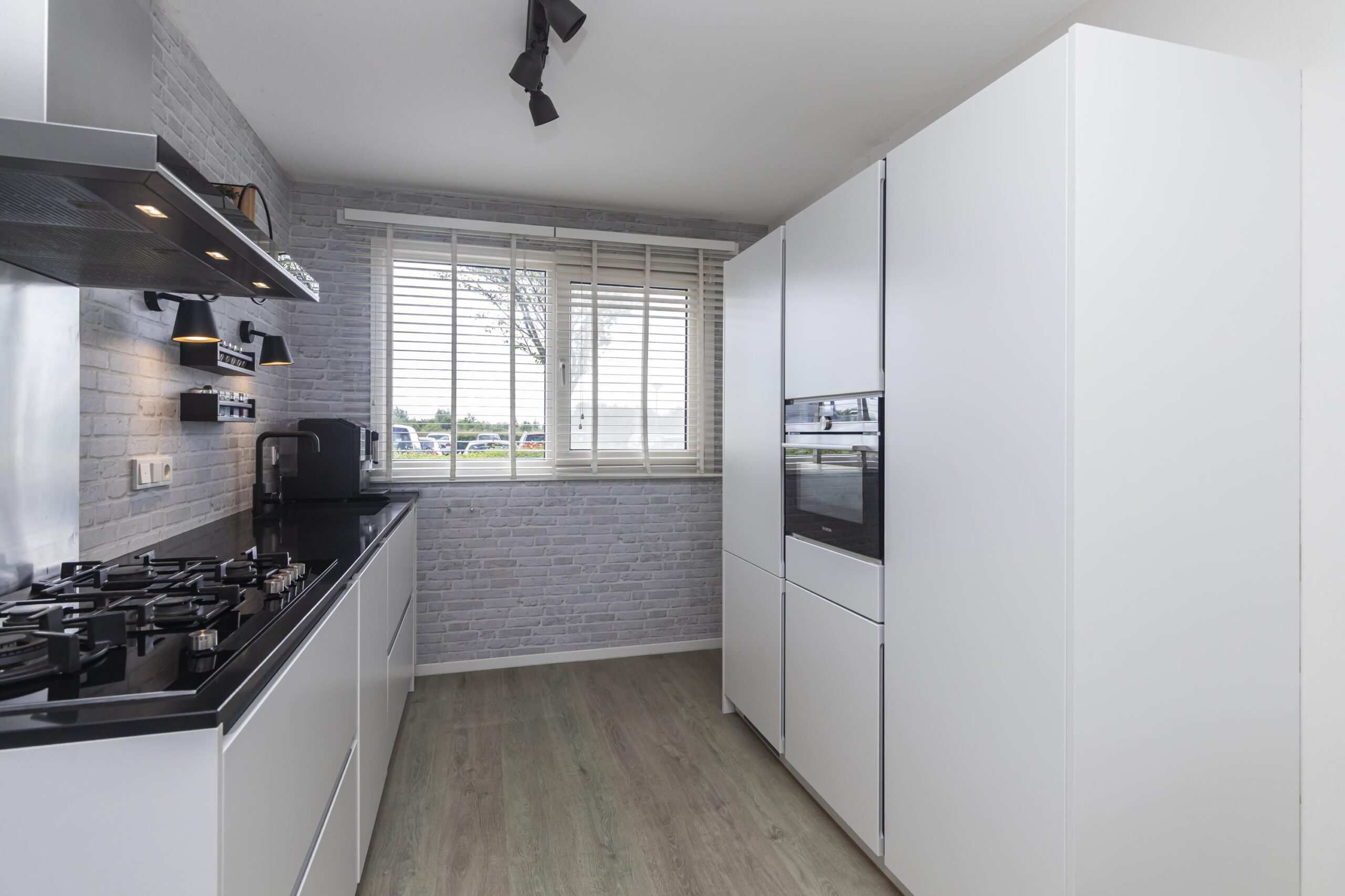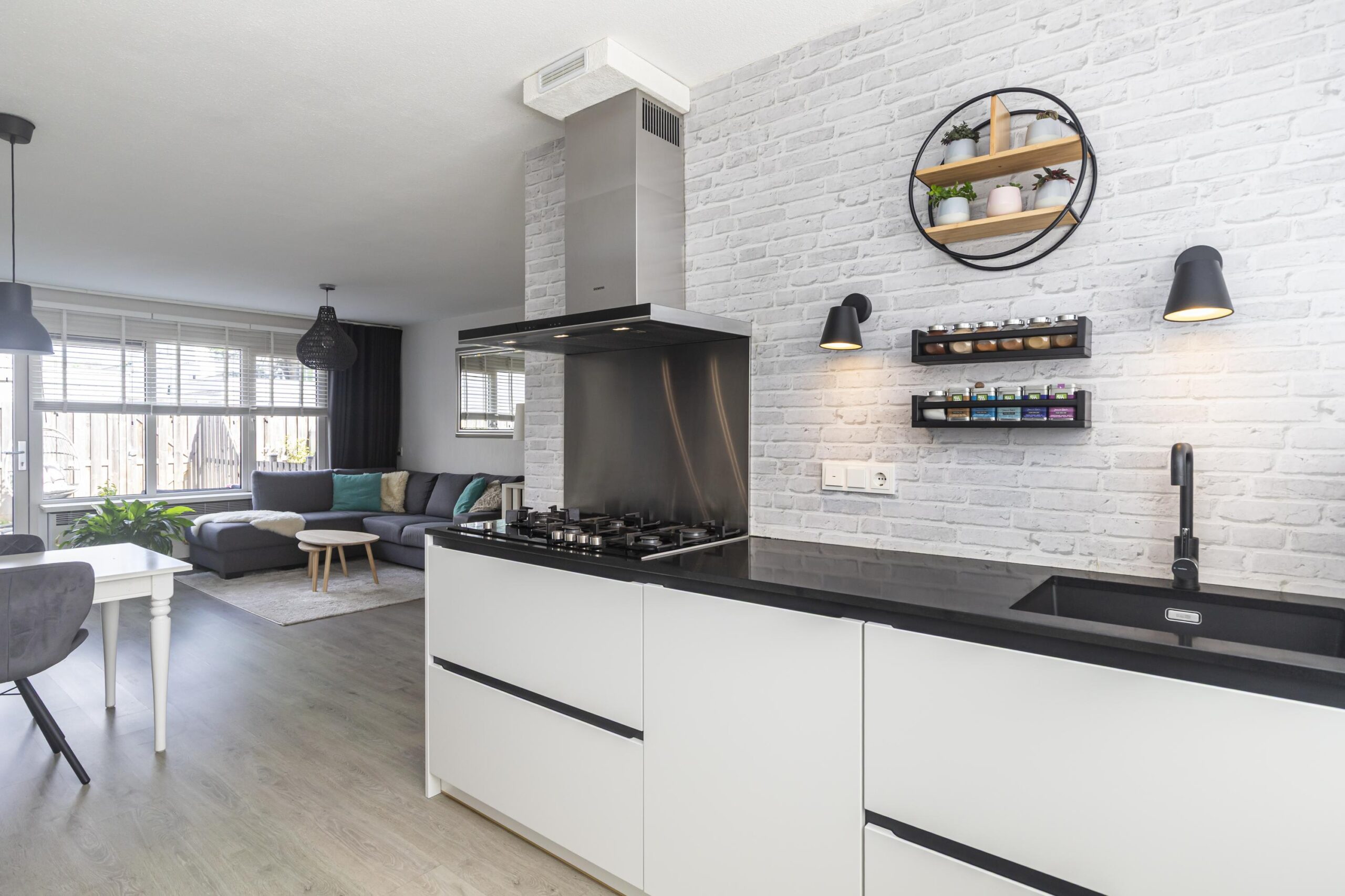 In de hal bevinden zich een zwevend toilet met fonteintje, meterkast en trap naar de eerste verdieping. De lichte en ruime woonkamer beschikt over een gemoderniseerde open keuken, uitgerust met luxe inbouwapparatuur, veel opbergruimte en een 5-pits gasfornuis. Door grote ramen is de zithoek aan de tuinzijde voorzien van veel natuurlijk licht. Vanuit de woonkamer heb je toegang tot de noordwest gelegen achtertuin, een fijne plek om buiten te zitten of te tuinieren.