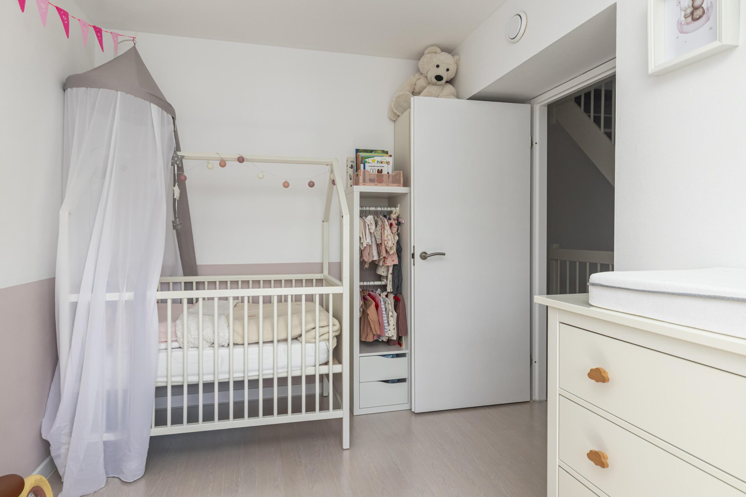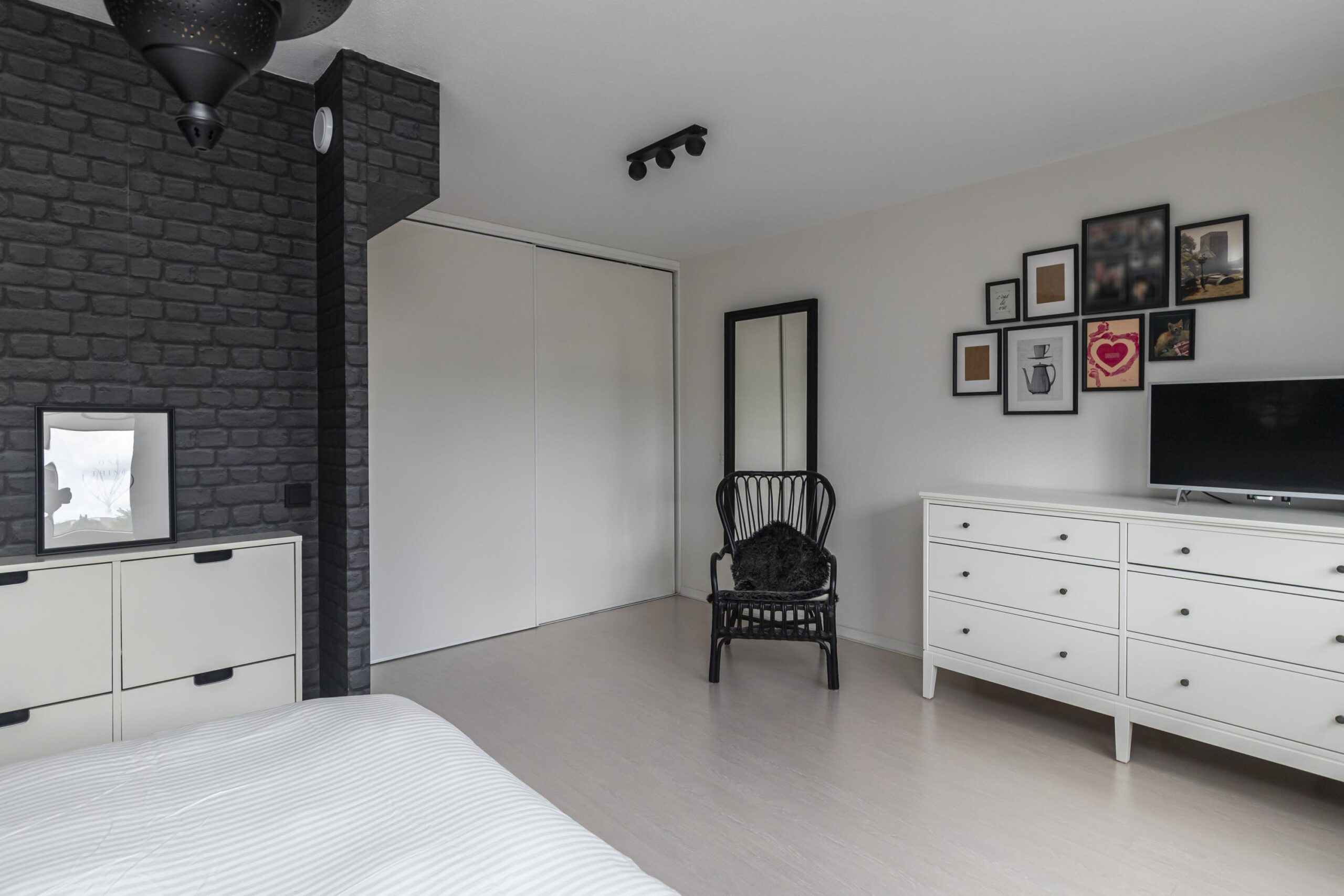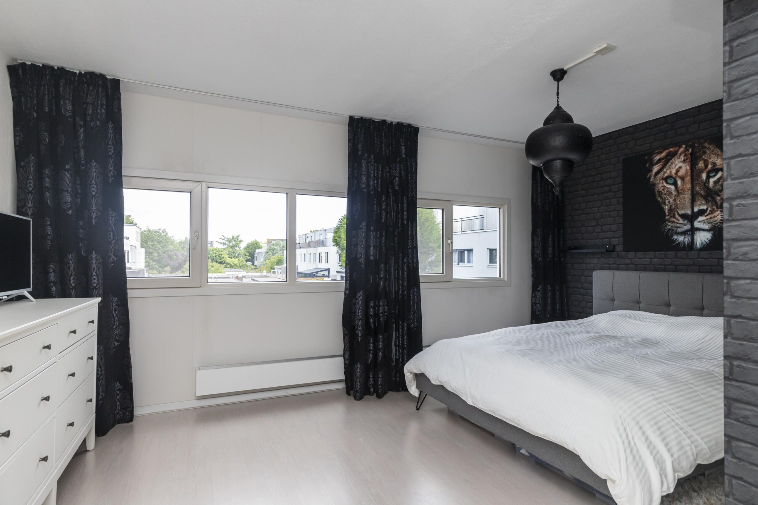 De oorspronkelijke drie slaapkamers zijn verbouwd tot twee ruime slaapkamers. De zeer ruime hoofdslaapkamer bevindt zich aan de achterzijde van de woning en is voorzien van een inbouwkast. De tweede slaapkamer aan de voorzijde is eveneens van goed formaat. De vernieuwde badkamer is met inloopdouche en wastafelmeubel strak en modern ingericht, wat de ruimte een frisse en royale uitstraling geeft.