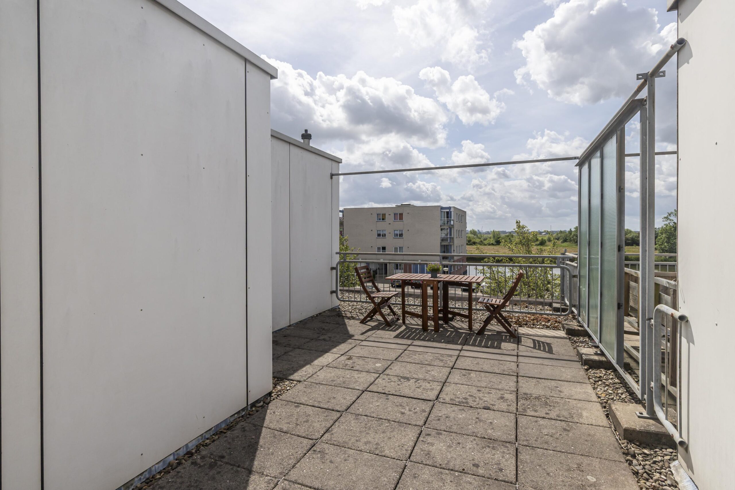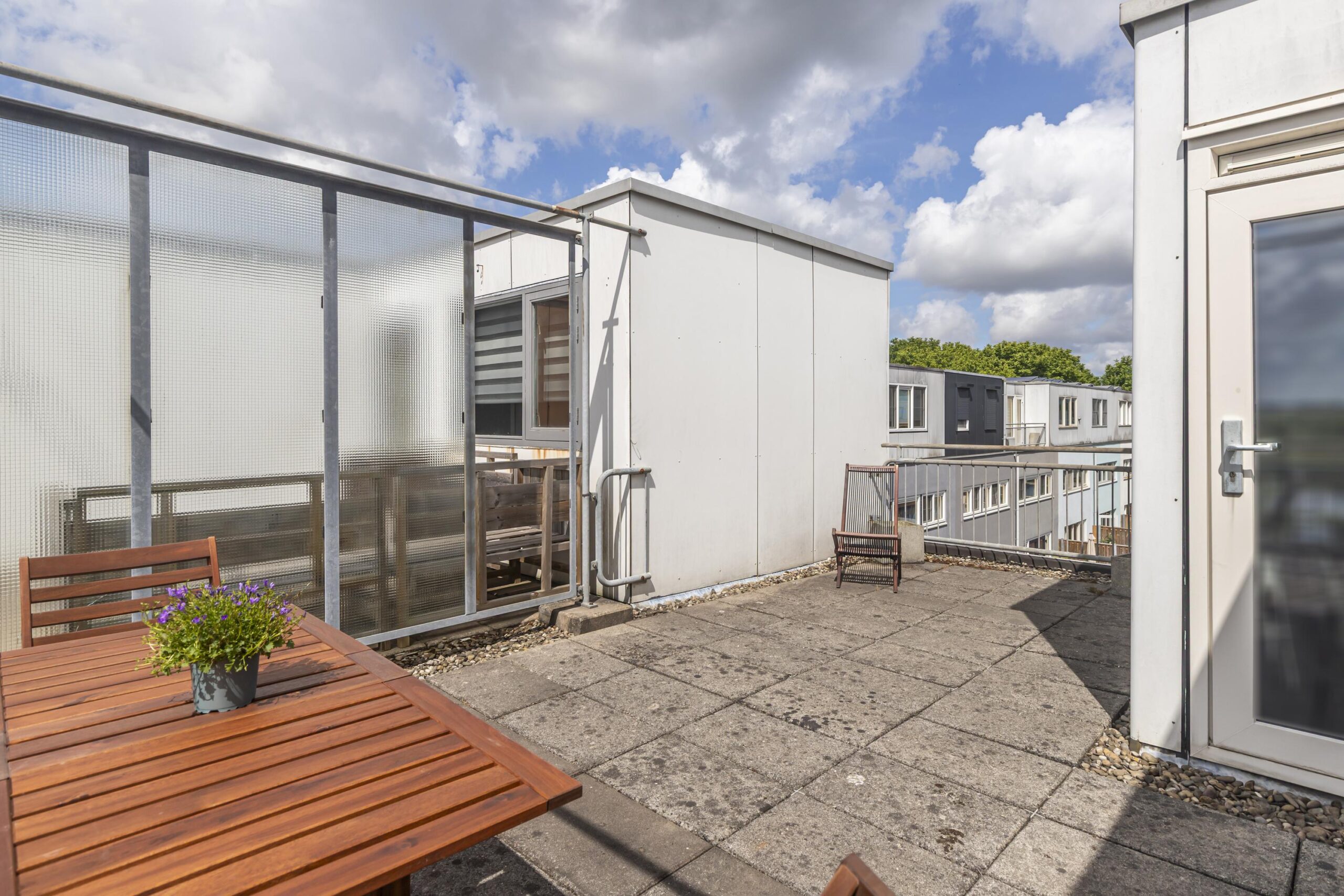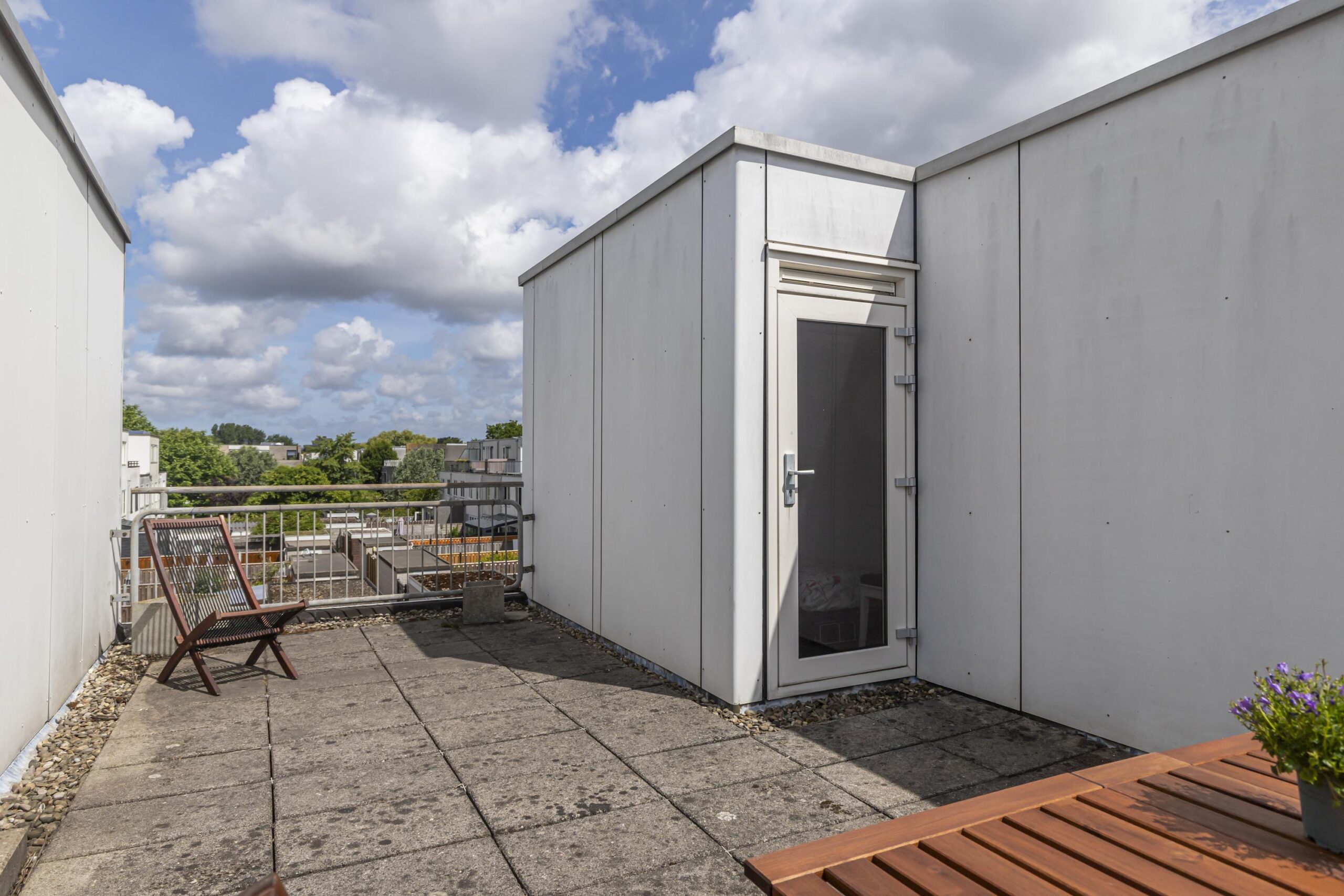Via een vaste trap is er op de tweede verdieping een kamer met wasmachineaansluiting. Deze ruimte is zeer geschikt als werk- of logeerkamer. Vanuit hier is er toegang tot het royale en zonnige dakterras, gelegen op het zuiden. Een ideale plek om te ontspannen en te genieten van het vrije uitzicht over het recreatiegebied Midden-Delfland.