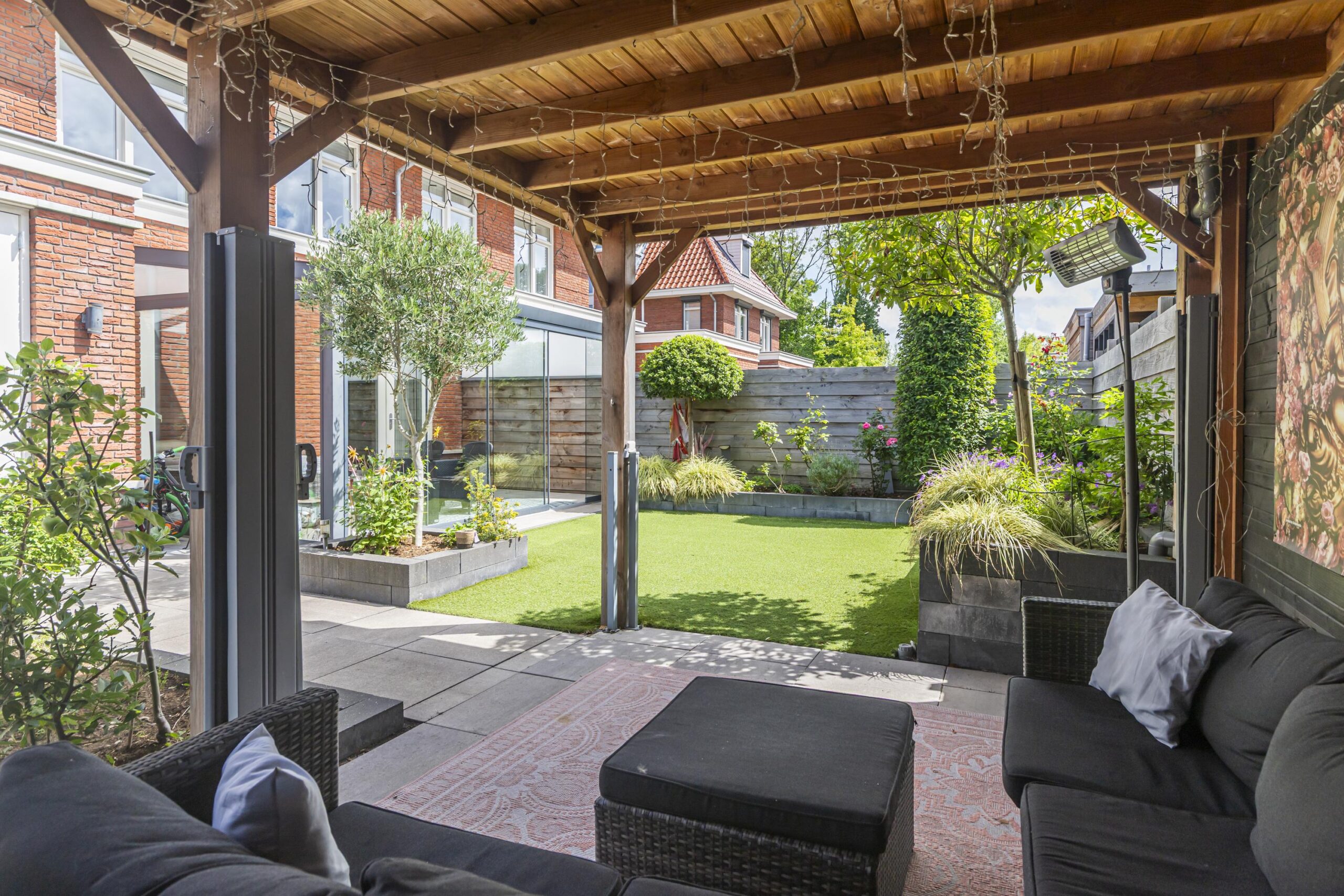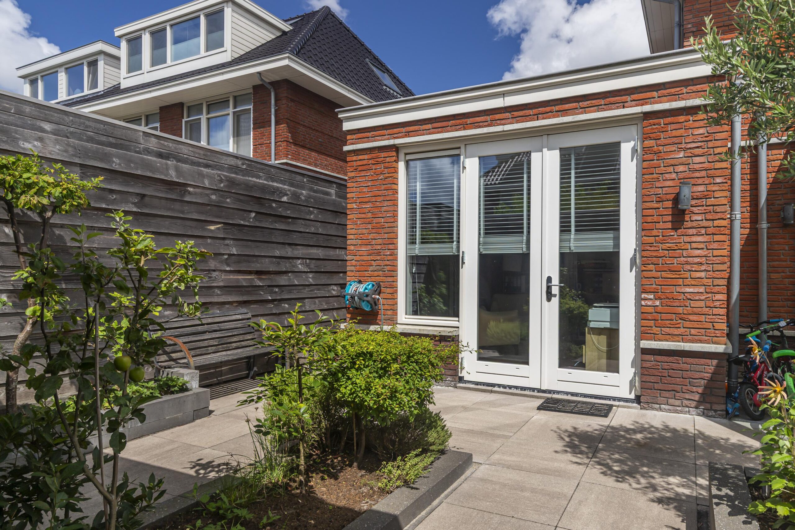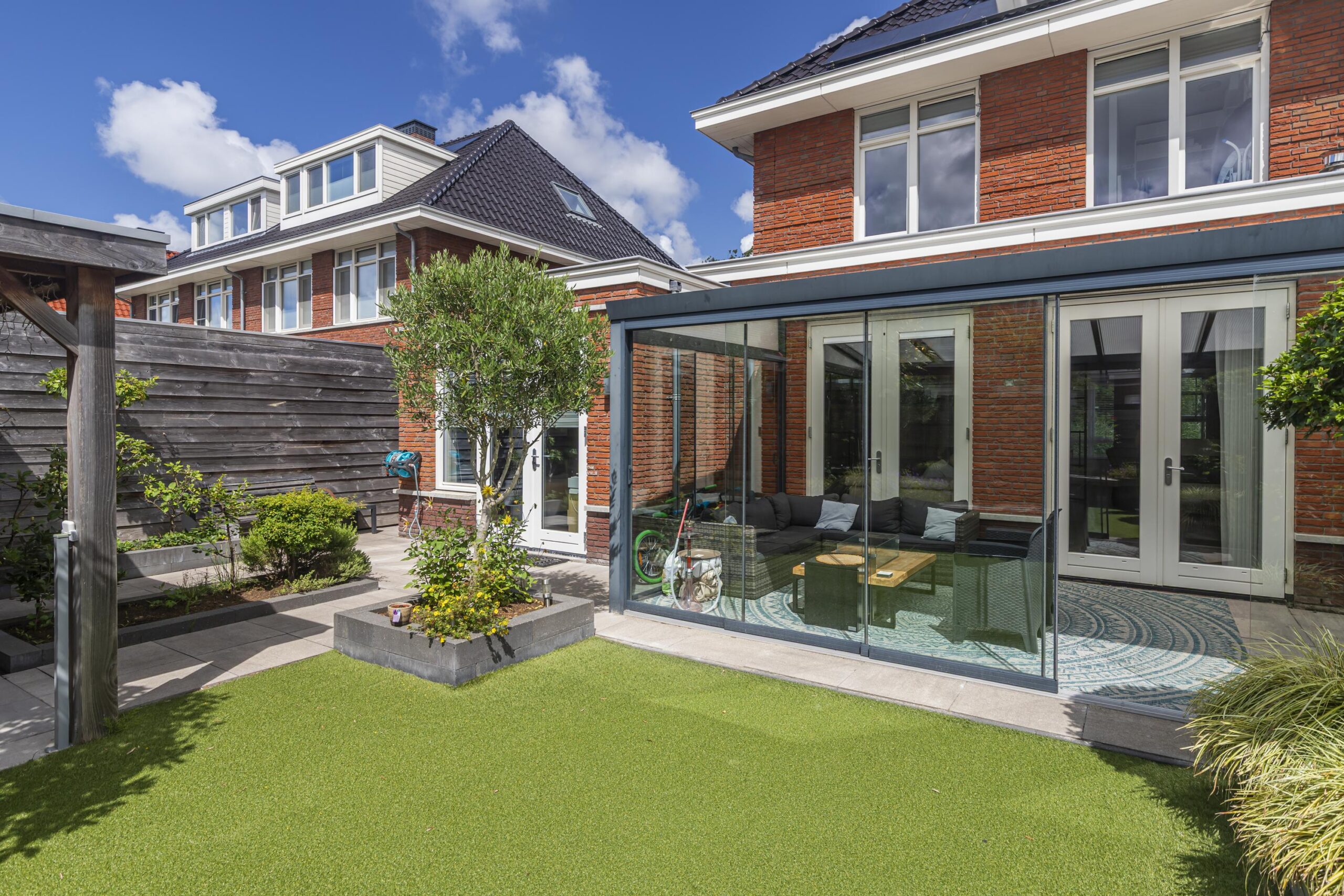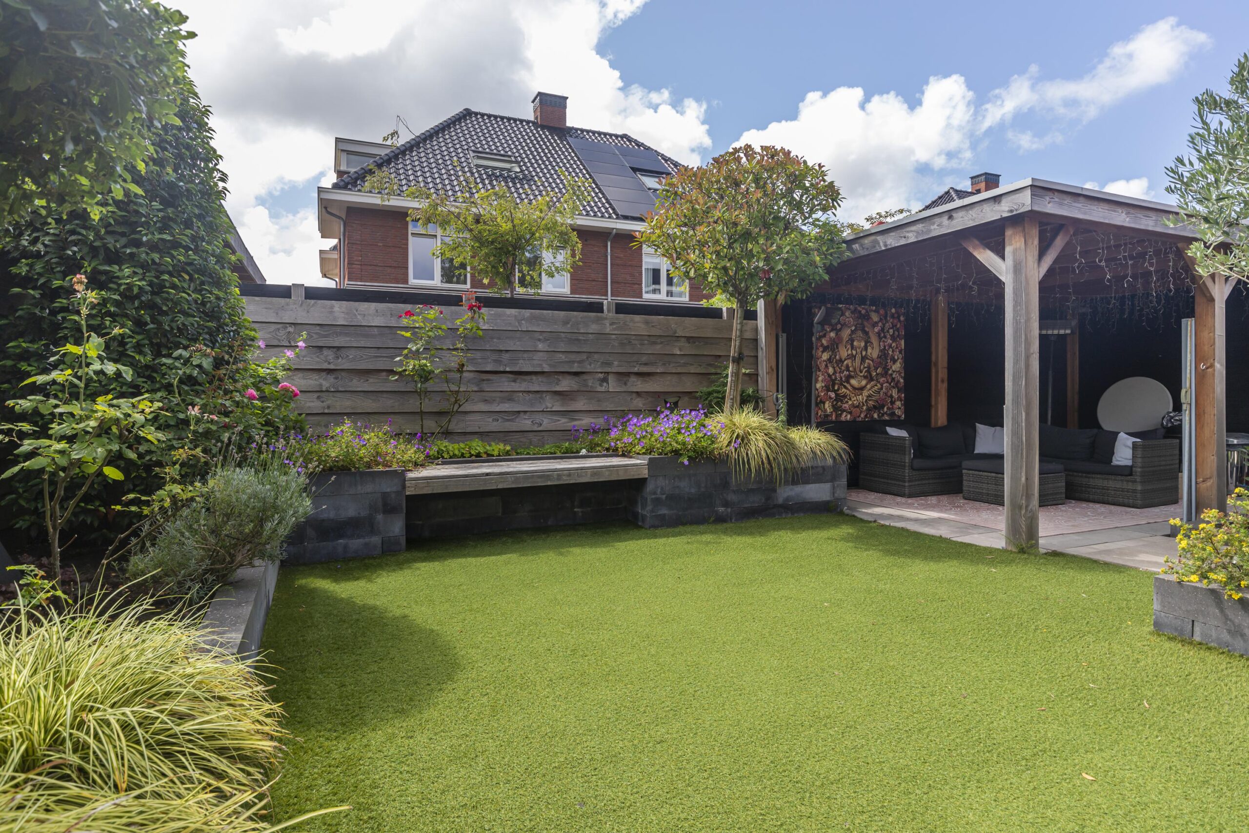 De achtertuin ligt op het zuidwesten, dus volop zon! U treft hier meerdere zitplekken aan, waaronder een overdekte veranda en een serre direct grenzend aan de woning. Er is een handige zij-ingang en voldoende ruimte voor fietsen of tuingereedschap. Aan de voorzijde is er ruimte om te parkeren op eigen terrein.