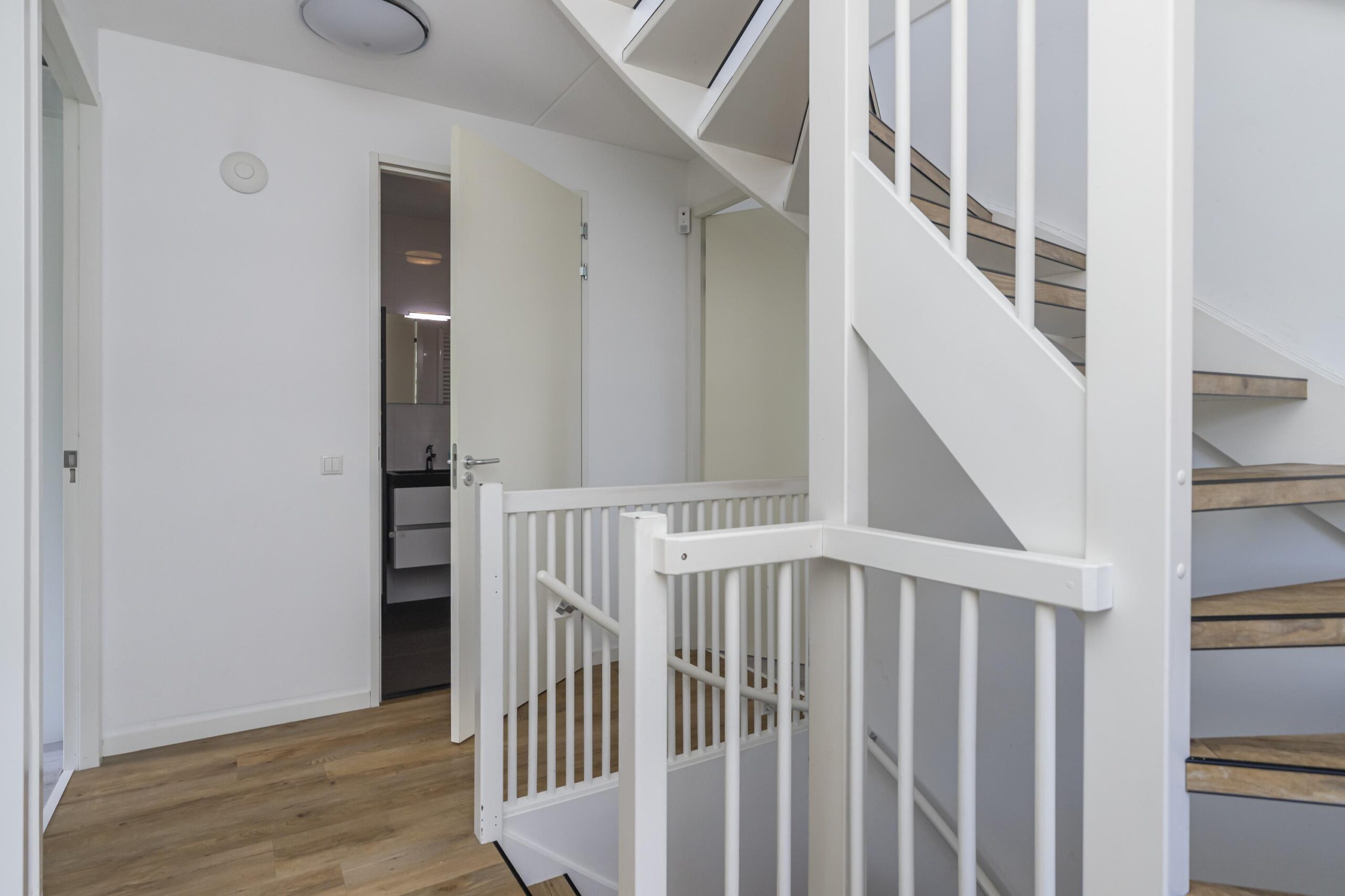 Op de eerste verdieping zijn drie goed bemeten slaapkamers aanwezig, waarvan twee aan de voorzijde en één aan de achterzijde. De slaapkamer aan de achterzijde is de masterbedroom en beschikt over een ‘walk in closet’. Daarnaast vindt u op deze verdieping een nette tussengelegen badkamer met ligbad, douche en wastafel. Op de overloop bevindt zich ook nog een separaat toilet met fonteintje.